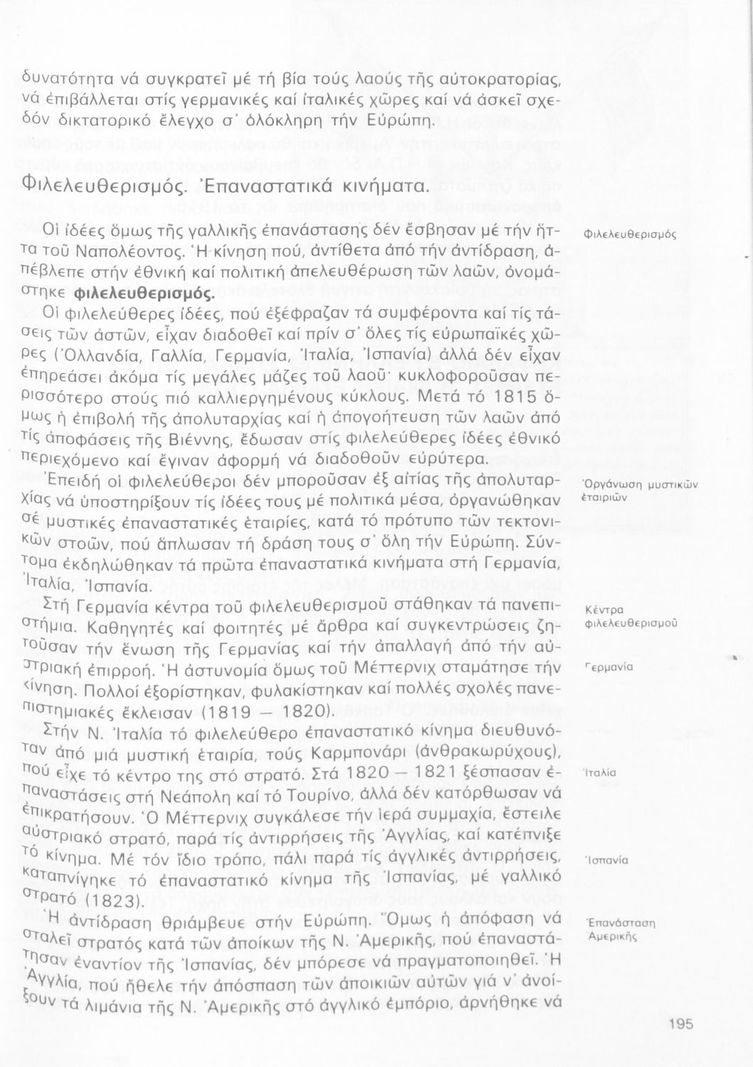 Σχολικό εγχειρίδιο της Γ΄ Γυμνασίου για το μάθημα της Ιστορίας. Καλύπτει την ευρωπαϊκή ιστορία από το Συνέδριο της Βιέννης, την περίοδο της Αναγέννησης του διαφωτισμού και τα επιτεύγματά τους. Συνεχίζει με την