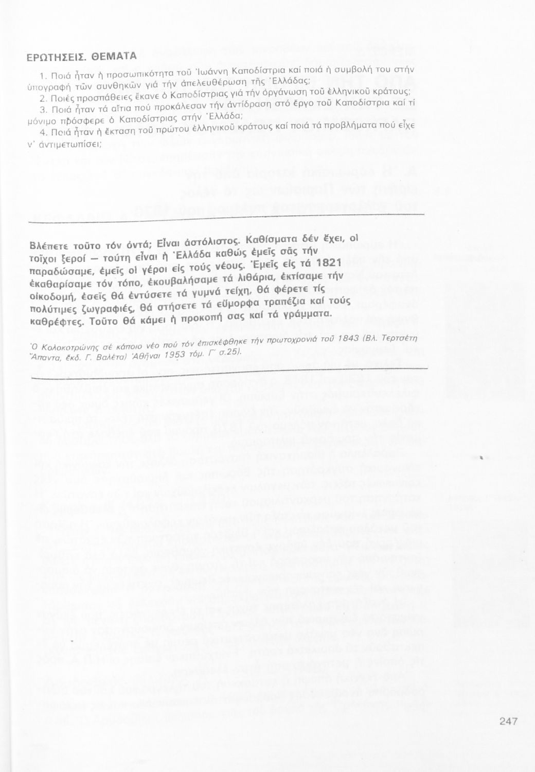 Σχολικό εγχειρίδιο Ιστορίας της Γ΄ Γυμνασίου. Το βιβλίο περιγράφει τη μετάβαση από την περίοδο των μοναρχιών και των αυτοκρατοριών στη δημιουργία των εθνών κρατών στην Ευρώπη. Εστιάζει στην Αναγέννηση και στον Διαφωτισμό και εξετάζει την εξέλιξη του αγγλικού κοινοβουλευτισμού. Τέλος, αναφέρεται στη ελληνική περίπτωση, την διάλυση της Οθωμανικής αυτοκρατορίας και τη δημιουργία του ελληνικού κράτους.
