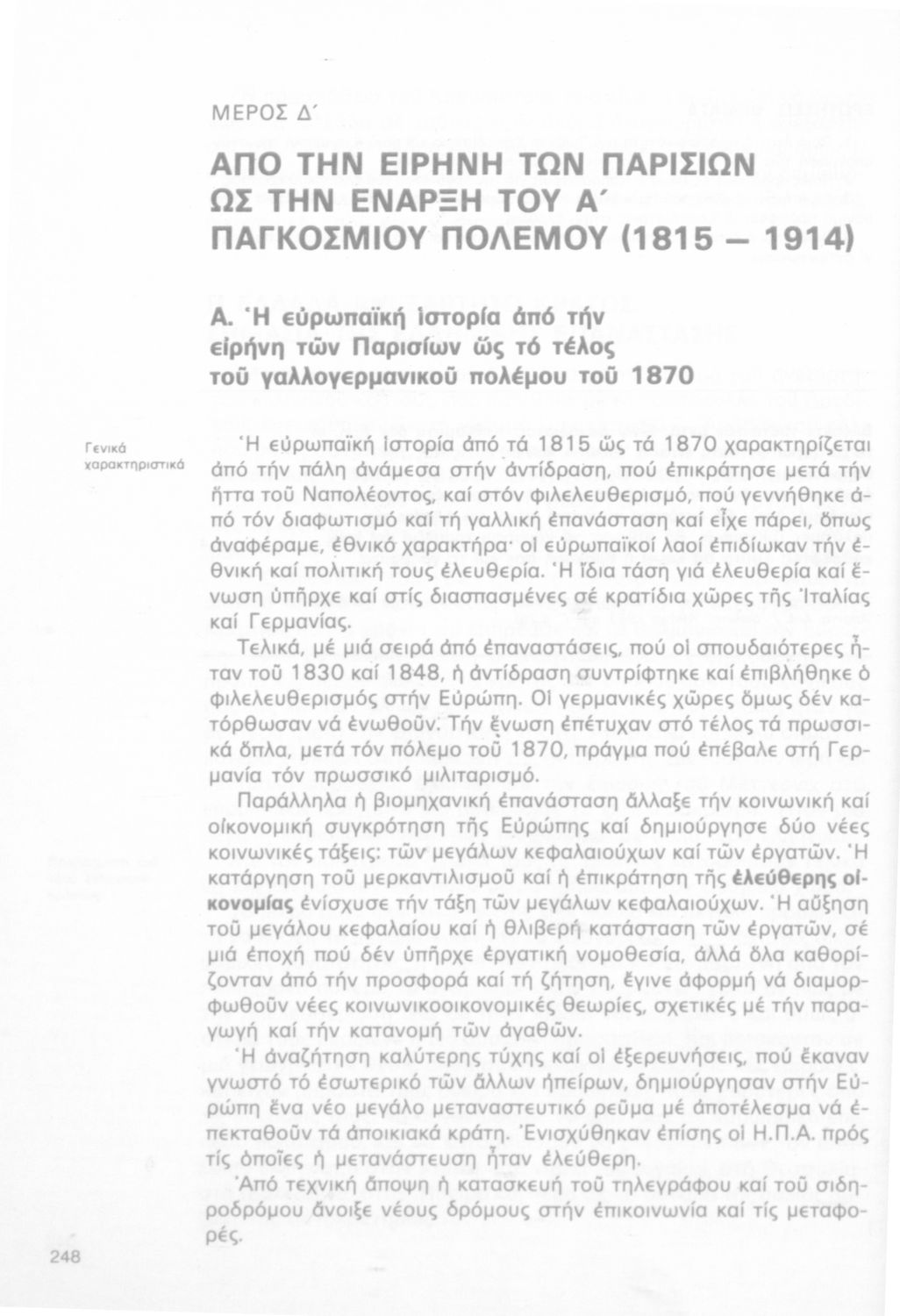 Νεώτερη Ευρωπαϊκή Ιστορία από τον 15ο αι. μ. Χ. ως σήμερα για την Γ' τάξη του Γυμνασίου