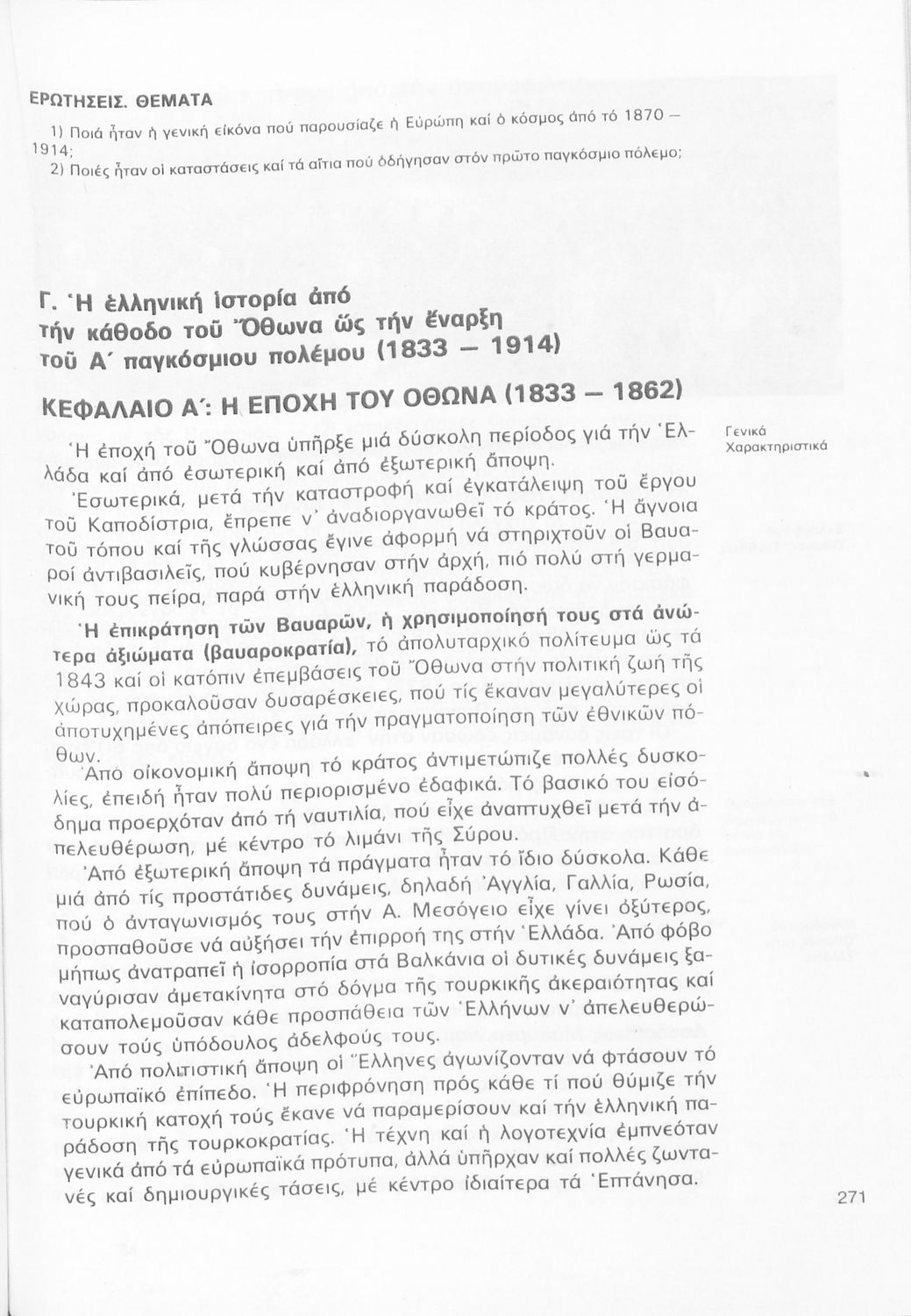 Σχολικό εγχειρίδιο Ιστορίας της Γ΄ Γυμνασίου. Το βιβλίο περιγράφει τη μετάβαση από την περίοδο των μοναρχιών και των αυτοκρατοριών στη δημιουργία των εθνών κρατών στην Ευρώπη. Εστιάζει στην Αναγέννηση και στον Διαφωτισμό και εξετάζει την εξέλιξη του αγγλικού κοινοβουλευτισμού. Τέλος, αναφέρεται στη ελληνική περίπτωση, την διάλυση της Οθωμανικής αυτοκρατορίας και τη δημιουργία του ελληνικού κράτους.