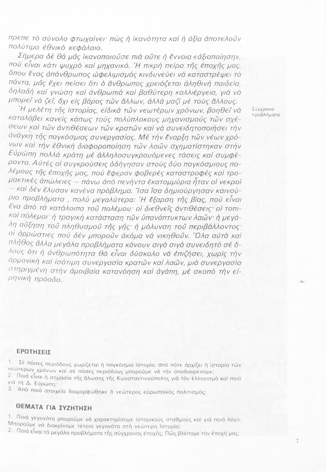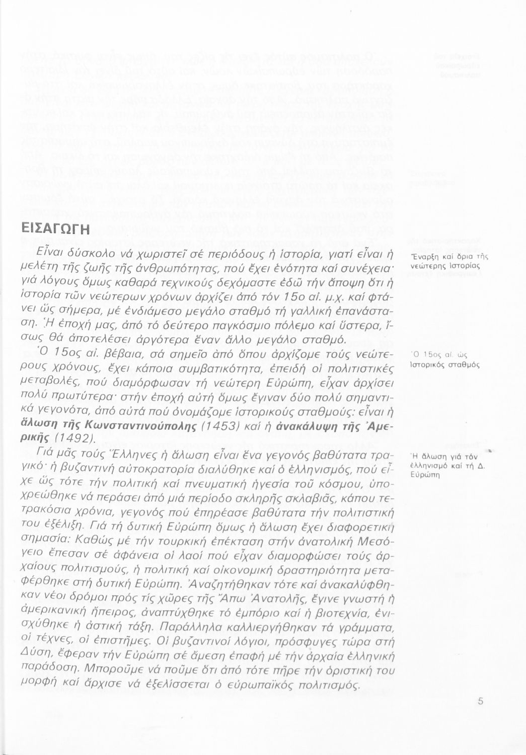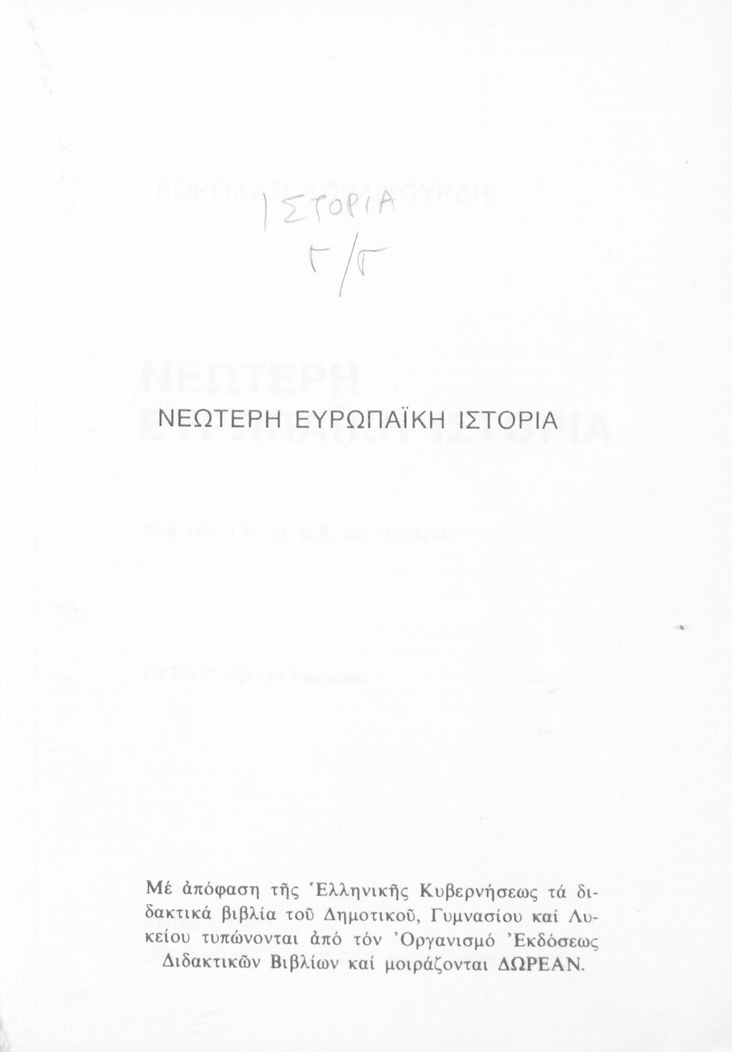 Σχολικό εγχειρίδιο Ιστορίας της Γ΄ Γυμνασίου. Το βιβλίο περιγράφει τη μετάβαση από την περίοδο των μοναρχιών και των αυτοκρατοριών στη δημιουργία των εθνών κρατών στην Ευρώπη. Εστιάζει στην Αναγέννηση και στον Διαφωτισμό και εξετάζει την εξέλιξη του αγγλικού κοινοβουλευτισμού. Τέλος, αναφέρεται στη ελληνική περίπτωση, την διάλυση της Οθωμανικής αυτοκρατορίας και τη δημιουργία του ελληνικού κράτους.