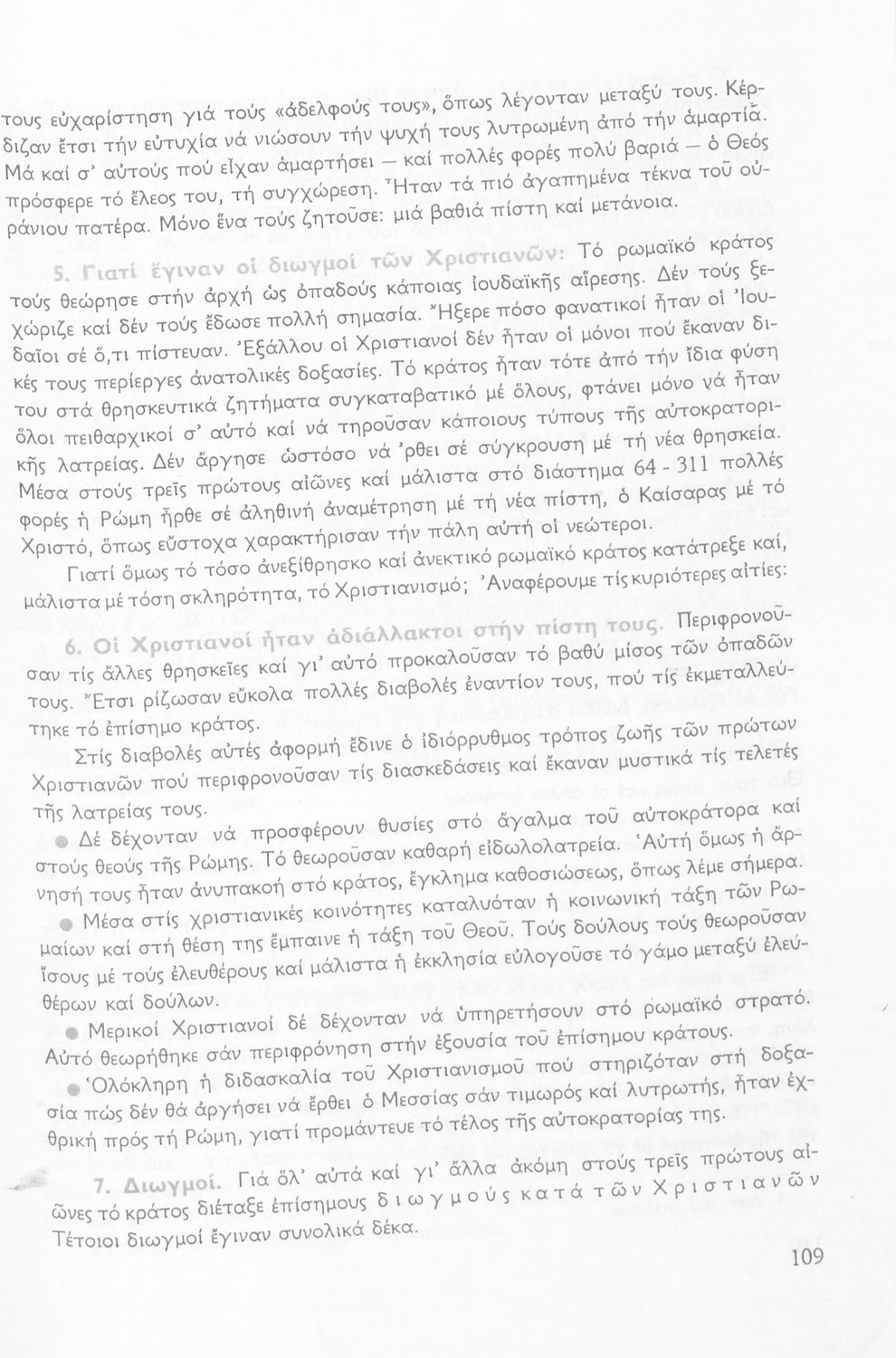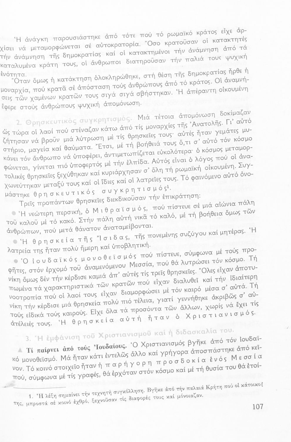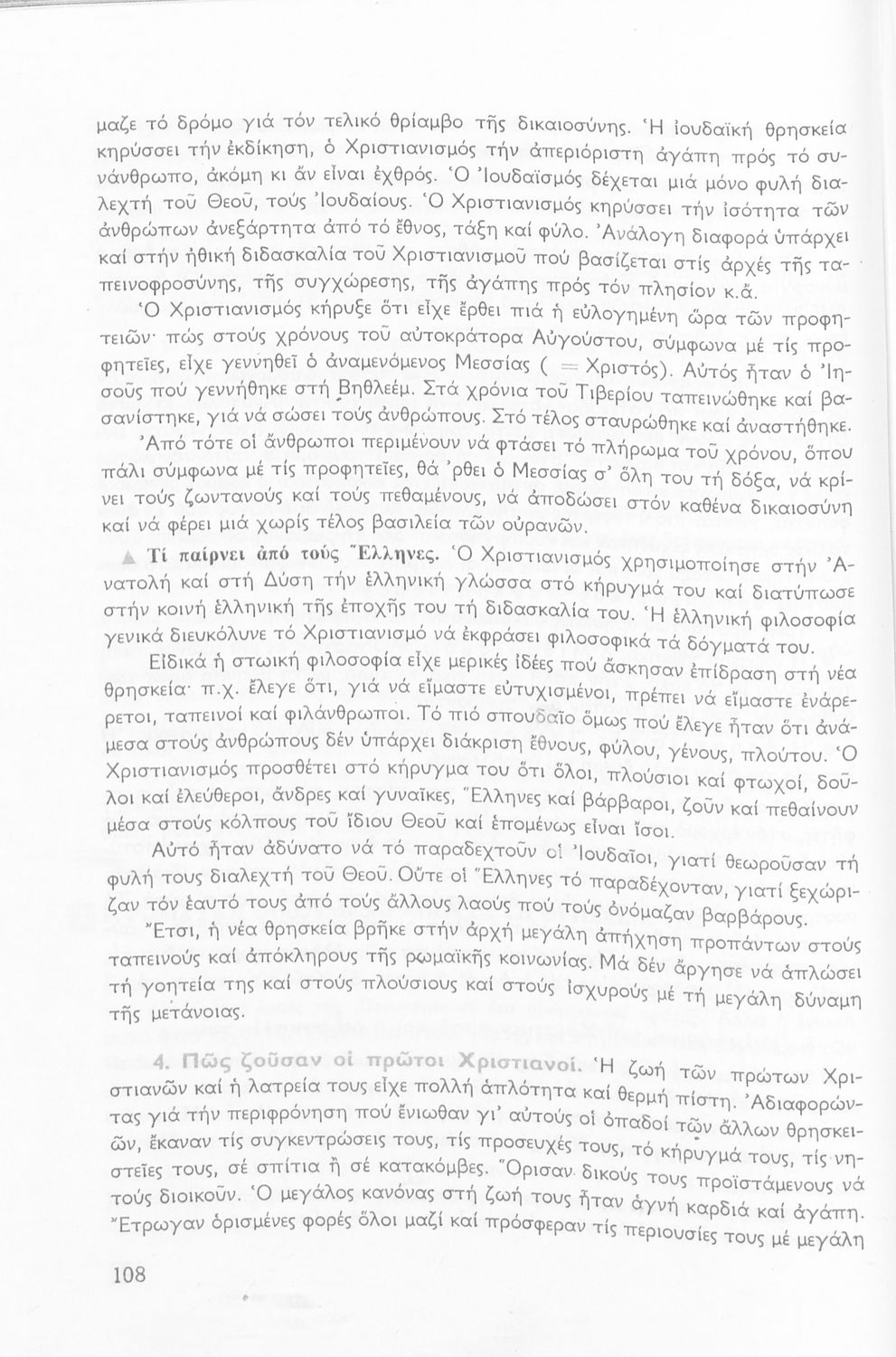 Σχολικό εγχειρίδιο Ιστορίας Β΄ Γυμνασίου που καλύπτει την περίοδο από την κατάληψη της Ελλάδας από τους Ρωμαίους ως την πτώση της Βυζαντινής Αυτοκρατορίας. Γίνεται ιδιαίτερη μνεία στο χριστιανικό και ελληνικό στοιχείο του Βυζαντίου. Προτείνει μια υλιστική ανάγνωση της Ιστορίας την οποία διαβάζει από την οπτική των κοινωνικών συγκρούσεων.
