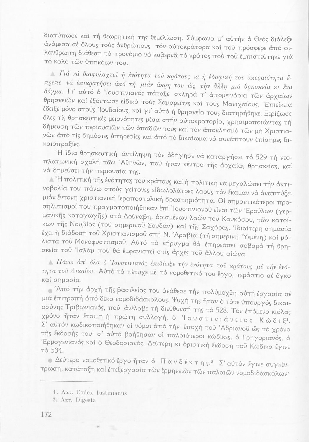 Σχολικό εγχειρίδιο Ιστορίας Β΄ Γυμνασίου που καλύπτει την περίοδο από την κατάληψη της Ελλάδας από τους Ρωμαίους ως την πτώση της Βυζαντινής Αυτοκρατορίας. Γίνεται ιδιαίτερη μνεία στο χριστιανικό και ελληνικό στοιχείο του Βυζαντίου. Προτείνει μια υλιστική ανάγνωση της Ιστορίας την οποία διαβάζει από την οπτική των κοινωνικών συγκρούσεων.