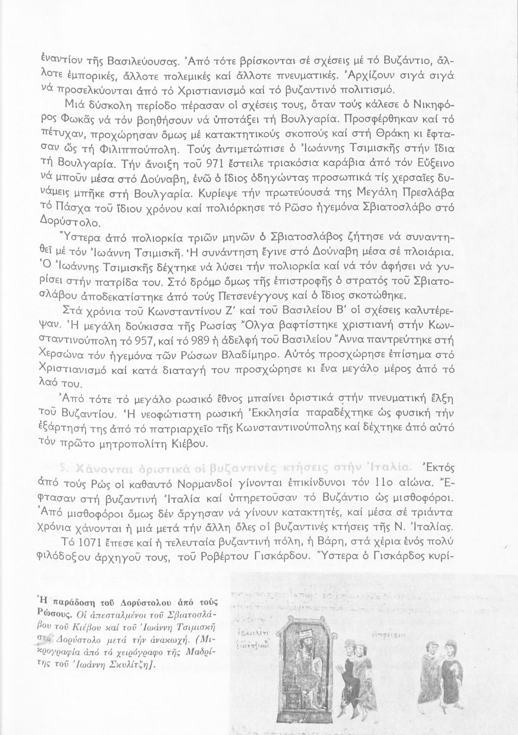 Σχολικό εγχειρίδιο Ιστορίας Β΄ και Ε΄ Γυμνασίου που καλύπτει την περίοδο από την άνοδο του Μ. Κωνσταντίνου στο θρόνο μέχρι και την άλωση της Κωνσταντινούπολης. Παρουσιάζει και τα πνευματικά και καλλιτεχνικά ...