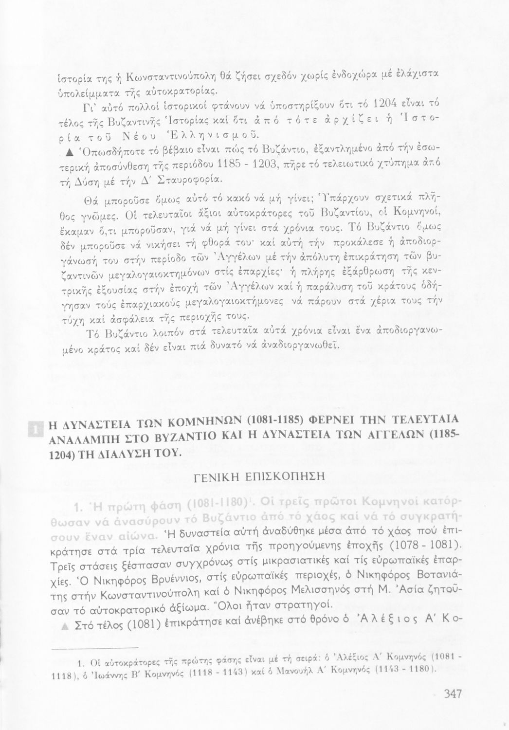 Σχολικό εγχειρίδιο Ιστορίας Β΄ και Ε΄ Γυμνασίου που καλύπτει την περίοδο από την άνοδο του Μ. Κωνσταντίνου στο θρόνο μέχρι και την άλωση της Κωνσταντινούπολης. Παρουσιάζει και τα πνευματικά και καλλιτεχνικά ...
