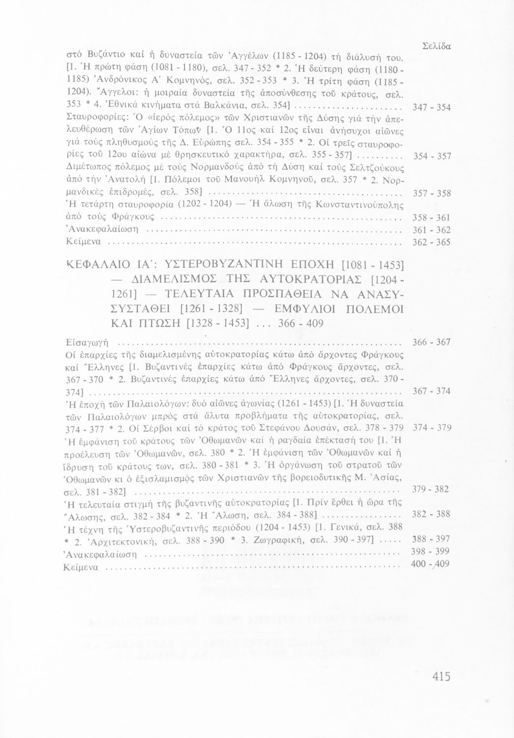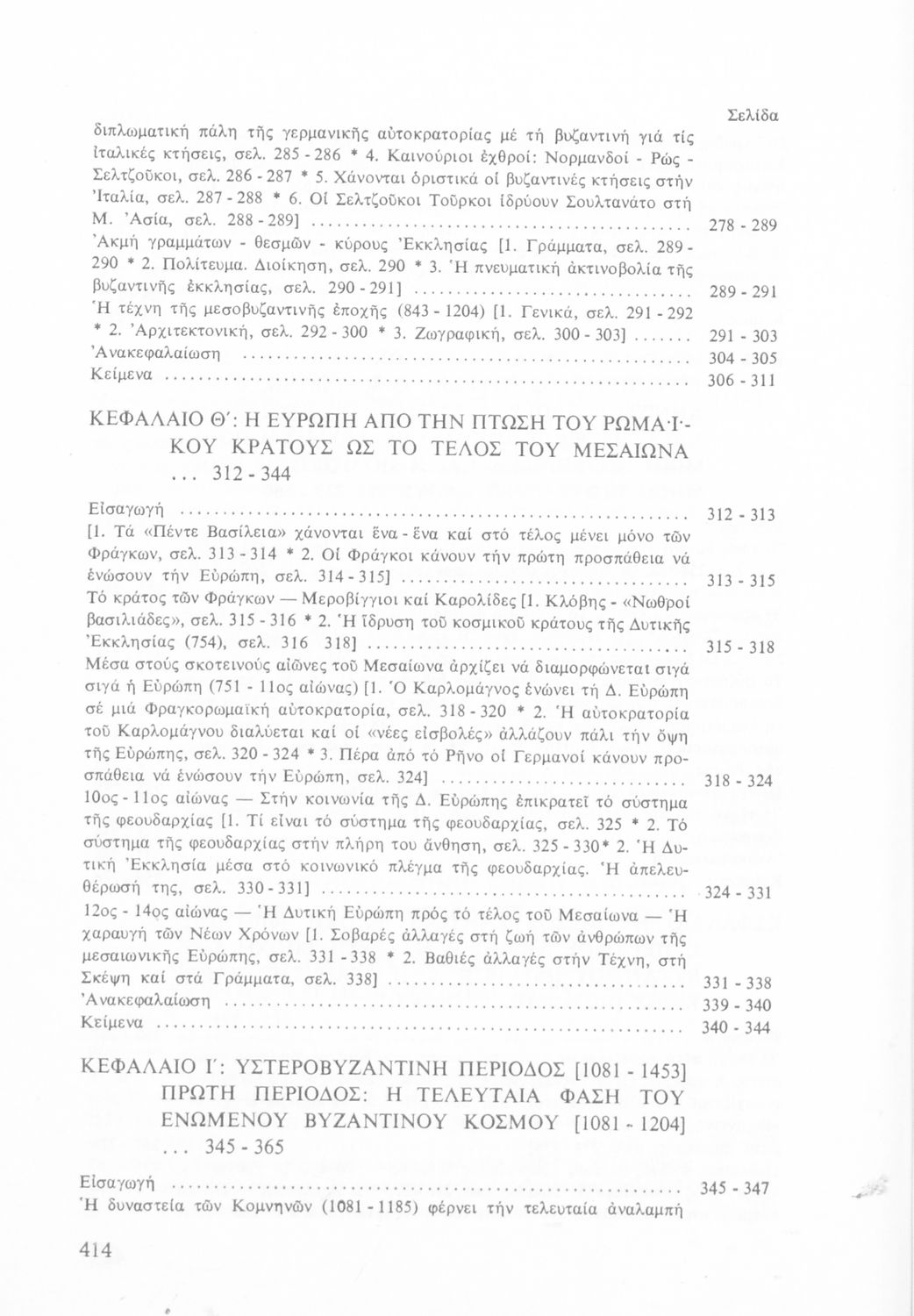Σχολικό εγχειρίδιο Ιστορίας Β΄ και Ε΄ Γυμνασίου που καλύπτει την περίοδο από την άνοδο του Μ. Κωνσταντίνου στο θρόνο μέχρι και την άλωση της Κωνσταντινούπολης. Παρουσιάζει και τα πνευματικά και καλλιτεχνικά ...
