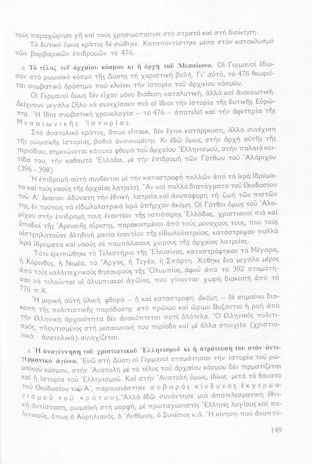 Σχολικό εγχειρίδιο Ιστορίας Β΄ Γυμνασίου που καλύπτει την περίοδο από την κατάληψη της Ελλάδας από τους Ρωμαίους ως την πτώση της Βυζαντινής Αυτοκρατορίας. Γίνεται ιδιαίτερη μνεία στο χριστιανικό και ελληνικό στοιχείο του Βυζαντίου. Προτείνει μια υλιστική ανάγνωση της Ιστορίας την οποία διαβάζει από την οπτική των κοινωνικών συγκρούσεων.