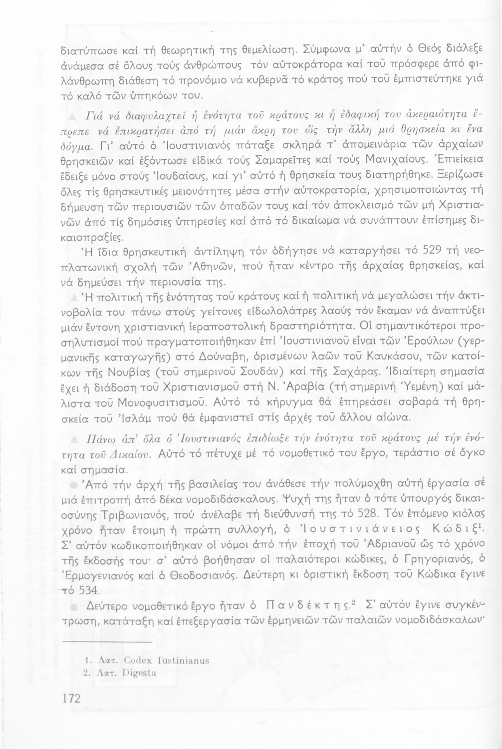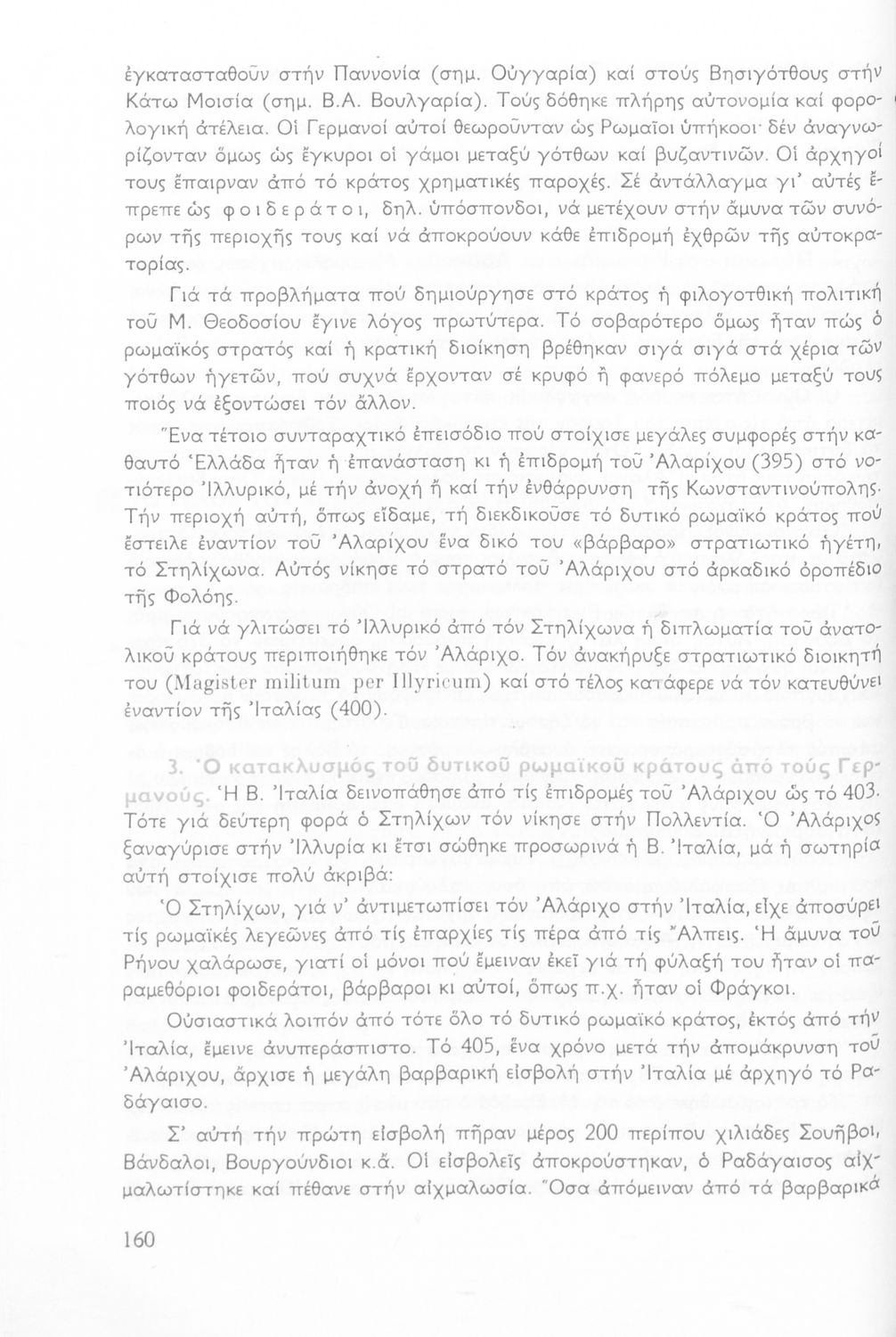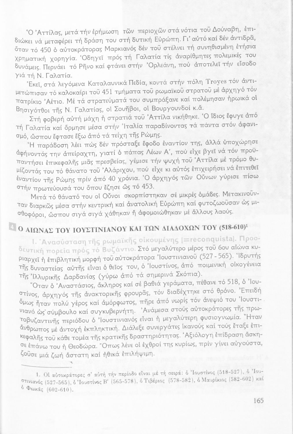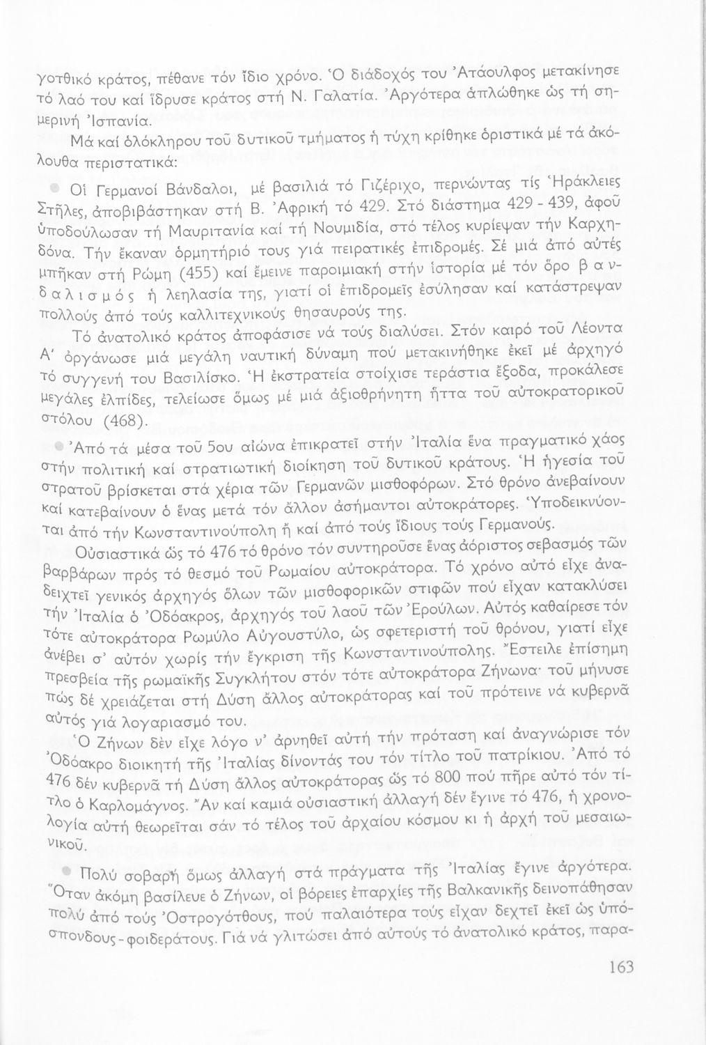 Σχολικό εγχειρίδιο Ιστορίας Β΄ Γυμνασίου που καλύπτει την περίοδο από την κατάληψη της Ελλάδας από τους Ρωμαίους ως την πτώση της Βυζαντινής Αυτοκρατορίας. Γίνεται ιδιαίτερη μνεία στο χριστιανικό και ελληνικό στοιχείο του Βυζαντίου. Προτείνει μια υλιστική ανάγνωση της Ιστορίας την οποία διαβάζει από την οπτική των κοινωνικών συγκρούσεων.