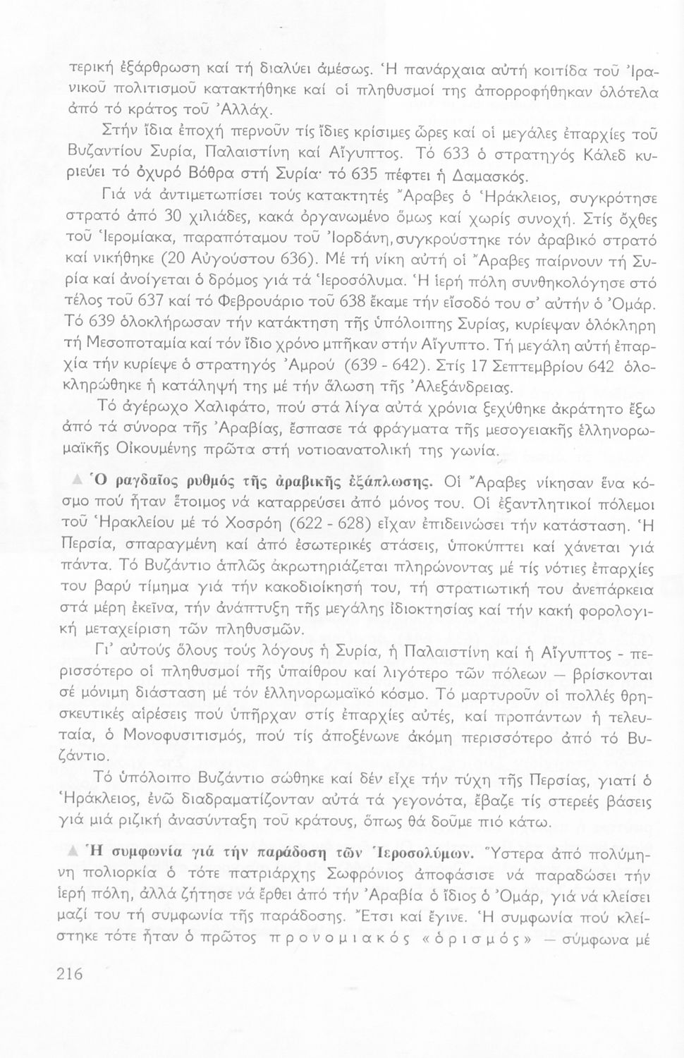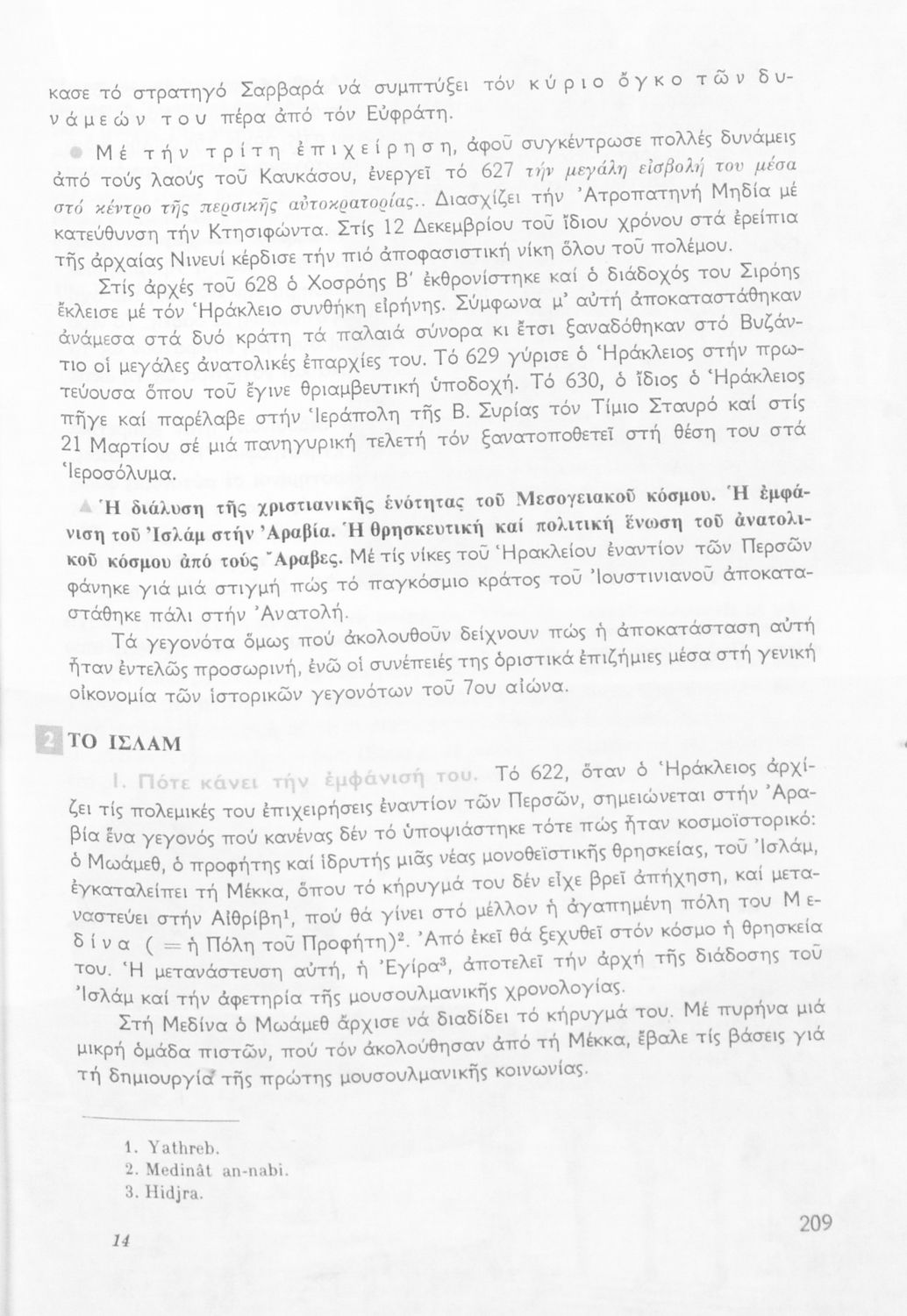 Σχολικό εγχειρίδιο Ιστορίας Β΄ Γυμνασίου που καλύπτει την περίοδο από την κατάληψη της Ελλάδας από τους Ρωμαίους ως την πτώση της Βυζαντινής Αυτοκρατορίας. Γίνεται ιδιαίτερη μνεία στο χριστιανικό και ελληνικό στοιχείο του Βυζαντίου. Προτείνει μια υλιστική ανάγνωση της Ιστορίας την οποία διαβάζει από την οπτική των κοινωνικών συγκρούσεων.