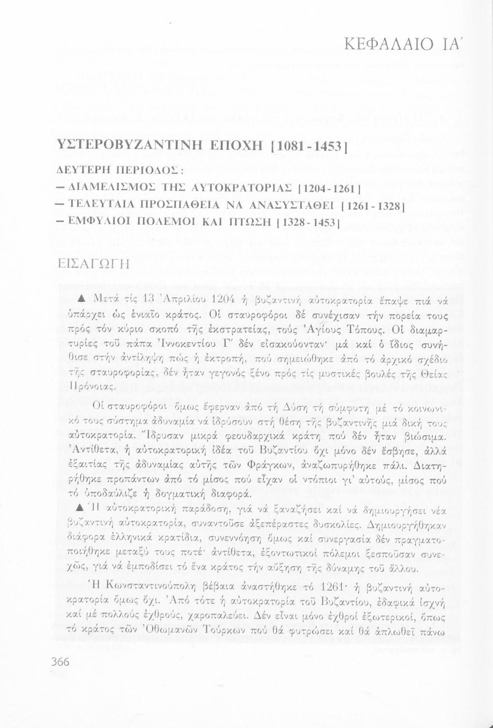 Σχολικό εγχειρίδιο Ιστορίας Β΄ Γυμνασίου που καλύπτει την περίοδο από την κατάληψη της Ελλάδας από τους Ρωμαίους ως την πτώση της Βυζαντινής Αυτοκρατορίας.