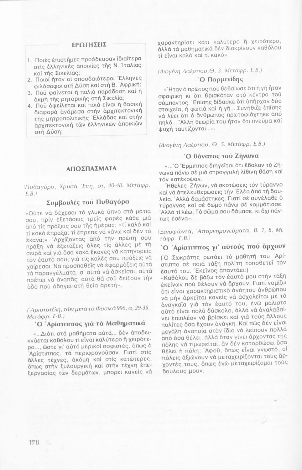 Σχολικό εγχειρίδιο Αρχαίων Ελληνικών Α΄ Γυμνασίου και Πρακτικού Λυκείου που περιλαμβάνει εισαγωγή στη ζωή και το έργο των Απολλόδωρου και Αιλιανού, αποσπάσματα από τη Βιβλιοθήκη του Απολλόδωρου και την Ποικίλη