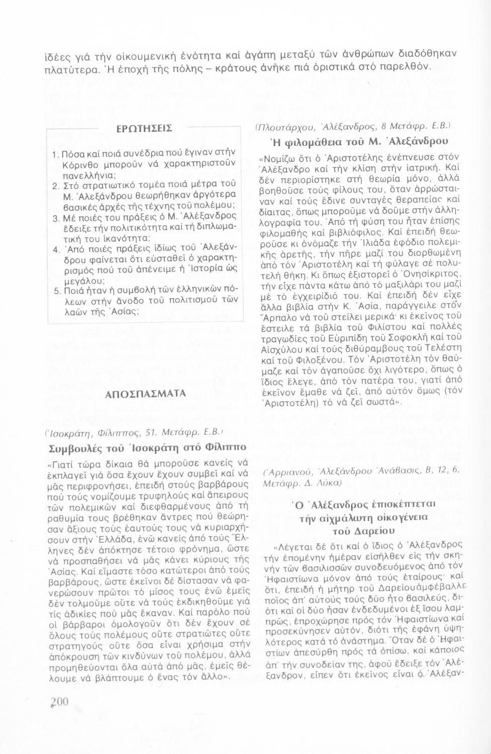 LDR 01229 2200217 4500 035 ## _a03-20557168 040 ## _aΒιβλιοθήκη της Βουλής των Ελλήνων 041 ## _ael 100 ## _aΕπαμεινώνδας Βρανόπουλος 110 ## _a20557168 245 0# _aΙστορία των αρχαίων χρόνων για την Α΄ Λυκείου 250 ## _a4η Έκδοση 260 ## _aΑθήνα _bΟργανισμός Εκδόσεως Διδακτικών Βιβλίων _c1982 300 ## _a244 _bΕικόνες, σκίτσα (έγχρωμα) 520 ## _aΣχολικό εγχειρίδιο Ιστορίας Α΄ Λυκείου που καλύπτει την περίοδο από την περίοδο από την εμφάνιση των πρώτων πολιτισμών μέχρι την παρακμή της Ρώμης. 521 ## _aΑ' Λυκείου 522 ## _aΕλλάδα 546 ## _aΔημοτική 563 ## _aΜαλακό Εξώφυλλο 583 ## _a3770/16-3-1982 _c1982 650 #4 _aΑιγύπτοι _aΑποικίες _aΜ Αλέξανδρος _aΜακεδονία _aΠελοποννησιακός _aΠερικλής _aΠέρσες _aΠολιτισμός _aΣουμμέριοι
