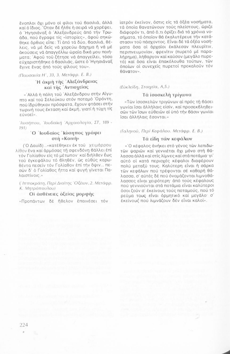 Σχολικό εγχειρίδιο Αρχαίων Ελληνικών Α΄ Γυμνασίου και Πρακτικού Λυκείου που περιλαμβάνει εισαγωγή στη ζωή και το έργο των Απολλόδωρου και Αιλιανού, αποσπάσματα από τη Βιβλιοθήκη του Απολλόδωρου και την Ποικίλη
