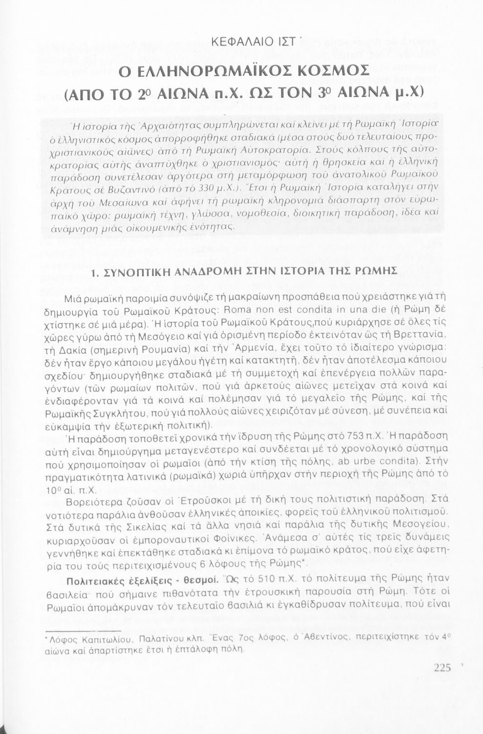Παρουσίαση περιεχομένου: Σχολικό εγχειρίδιο Ιστορίας Α΄ Λυκείου που καλύπτει την περίοδο από την περίοδο από την εμφάνιση των πρώτων πολιτισμών μέχρι την παρακμή της Ρώμης.