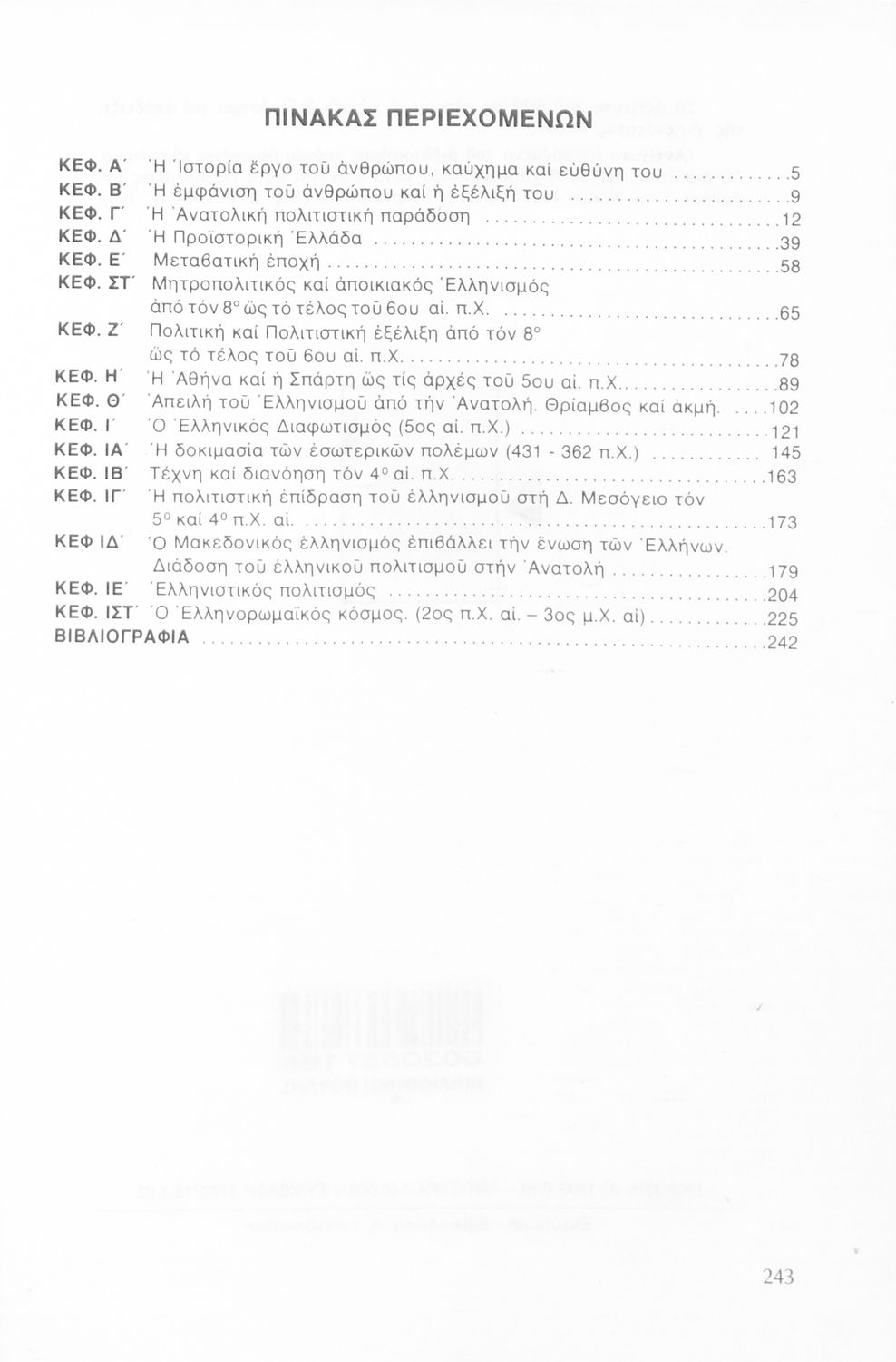 Σχολικό εγχειρίδιο Ιστορίας Α΄ Γυμνασίου και Α΄ Λυκείου που καλύπτει την περίοδο από την περίοδο από την εμφάνιση των πρώτων πολιτισμών μέχρι τους Καρχηδονικούς Πολέμους. Περιλαμβάνει χρονολόγιο και γλωσσάριο ...