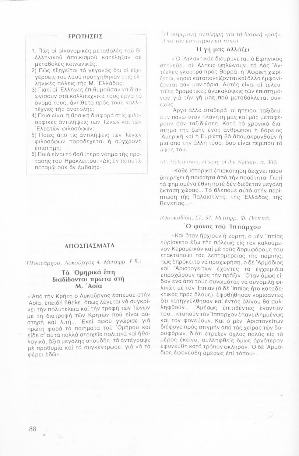 LDR 01229 2200217 4500 035 ## _a03-20557168 040 ## _aΒιβλιοθήκη της Βουλής των Ελλήνων 041 ## _ael 100 ## _aΕπαμεινώνδας Βρανόπουλος 110 ## _a20557168 245 0# _aΙστορία των αρχαίων χρόνων για την Α΄ Λυκείου 250 ## _a4η Έκδοση 260 ## _aΑθήνα _bΟργανισμός Εκδόσεως Διδακτικών Βιβλίων _c1982 300 ## _a244 _bΕικόνες, σκίτσα (έγχρωμα) 520 ## _aΣχολικό εγχειρίδιο Ιστορίας Α΄ Λυκείου που καλύπτει την περίοδο από την περίοδο από την εμφάνιση των πρώτων πολιτισμών μέχρι την παρακμή της Ρώμης. 521 ## _aΑ' Λυκείου 522 ## _aΕλλάδα 546 ## _aΔημοτική 563 ## _aΜαλακό Εξώφυλλο 583 ## _a3770/16-3-1982 _c1982 650 #4 _aΑιγύπτοι _aΑποικίες _aΜ Αλέξανδρος _aΜακεδονία _aΠελοποννησιακός _aΠερικλής _aΠέρσες _aΠολιτισμός _aΣουμμέριοι