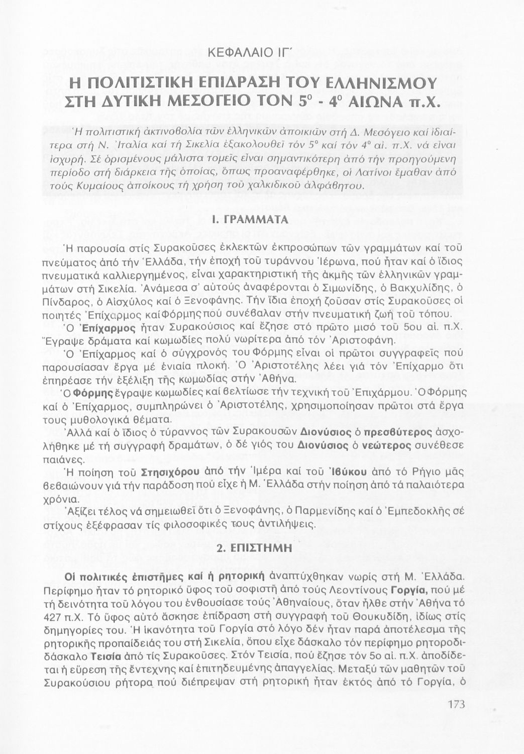Σχολικό εγχειρίδιο Ιστορίας Α΄ Γυμνασίου και Α΄ Λυκείου που καλύπτει την περίοδο από την περίοδο από την εμφάνιση των πρώτων πολιτισμών μέχρι τους Καρχηδονικούς Πολέμους. Περιλαμβάνει χρονολόγιο και γλωσσάριο ...