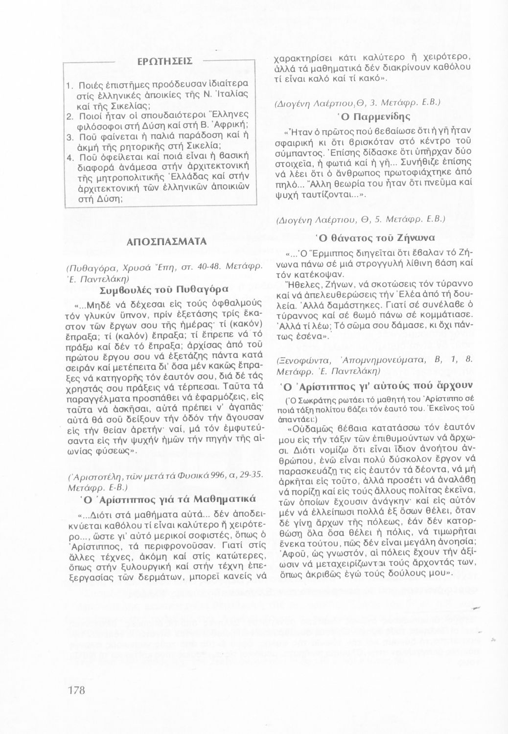 Σχολικό εγχειρίδιο Αρχαίων Ελληνικών Α΄ Γυμνασίου και Πρακτικού Λυκείου που περιλαμβάνει εισαγωγή στη ζωή και το έργο των Απολλόδωρου και Αιλιανού, αποσπάσματα από τη Βιβλιοθήκη του Απολλόδωρου και την Ποικίλη