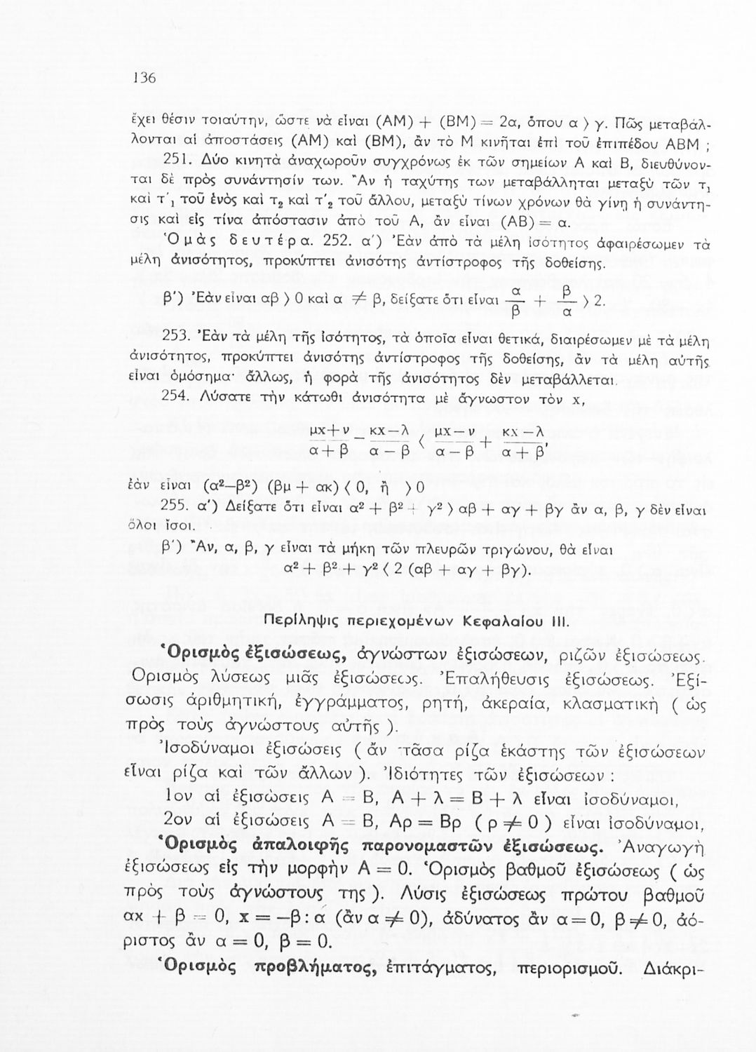 Άλγεβρα δια τας ανωτέρας τάξεις των Γυμνασίων