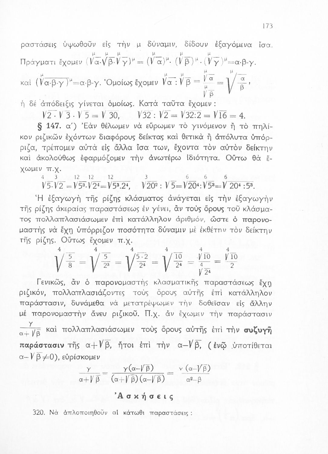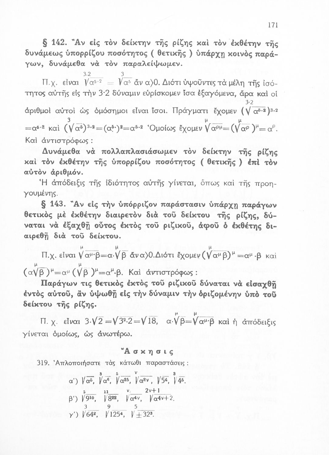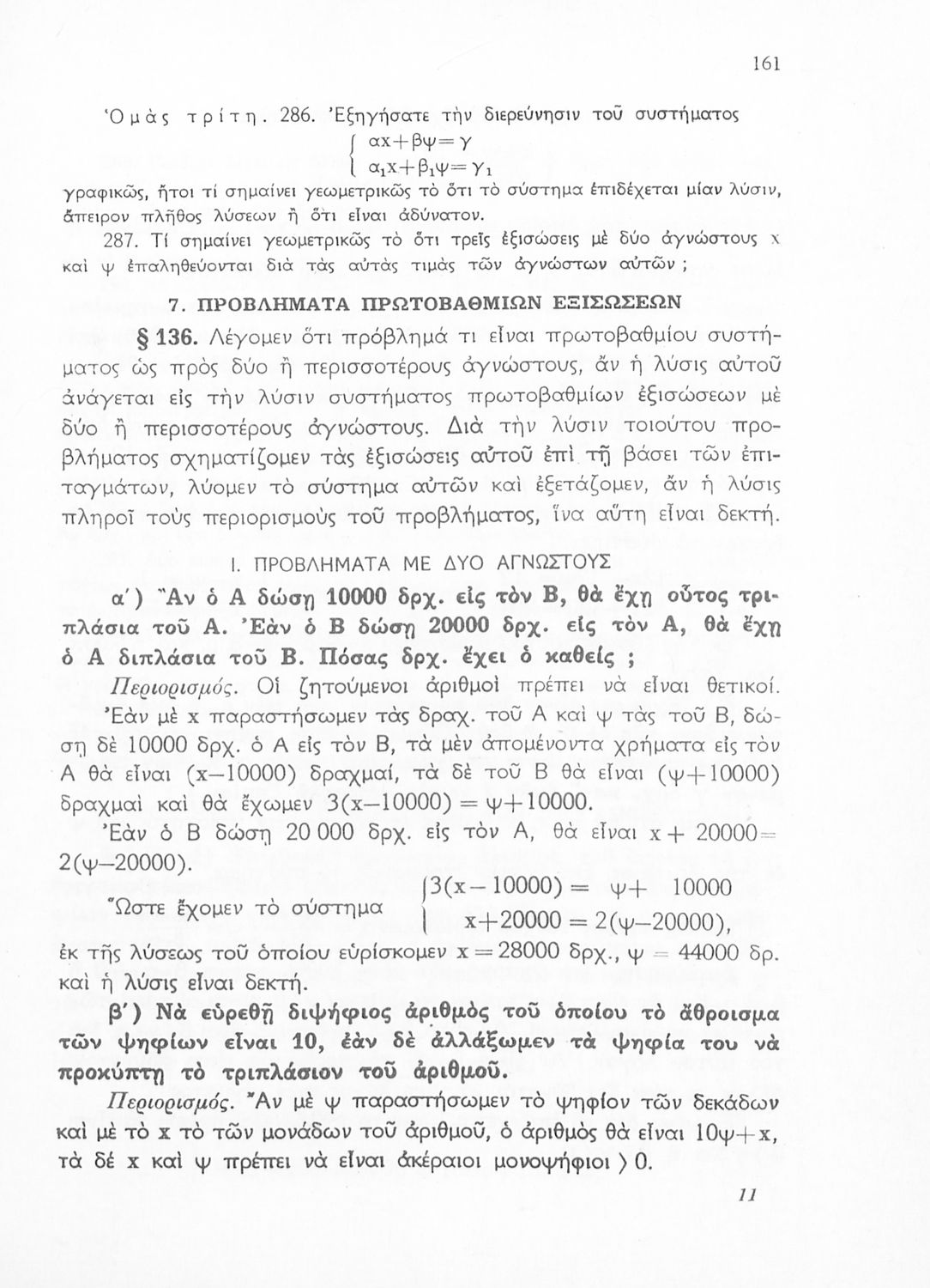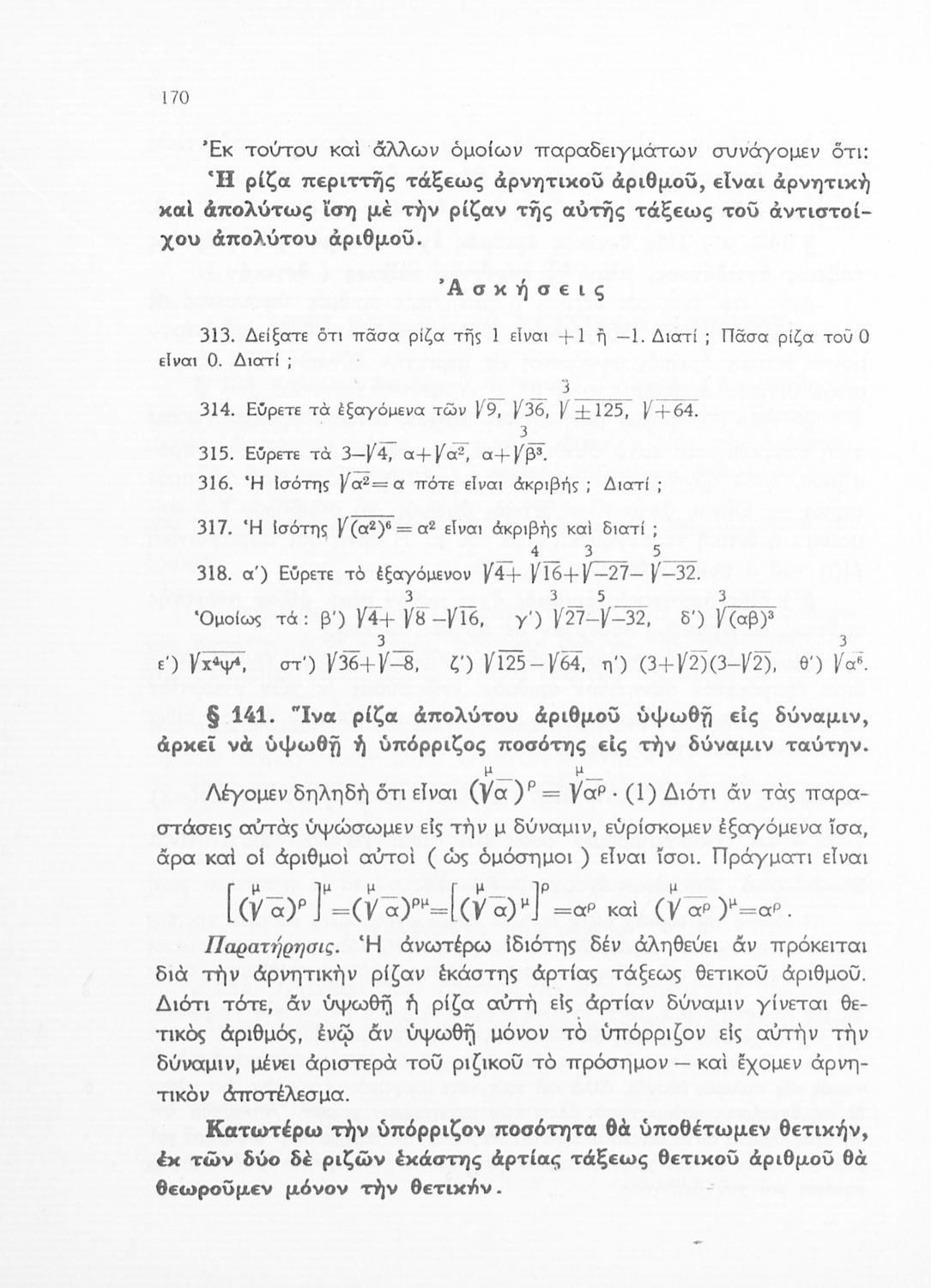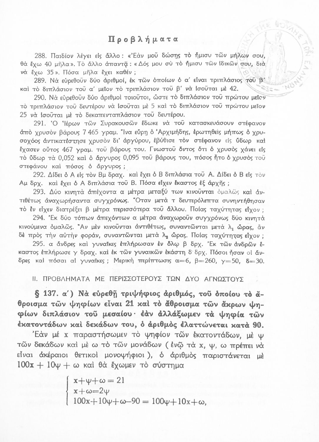 Άλγεβρα δια τας ανωτέρας τάξεις των Γυμνασίων