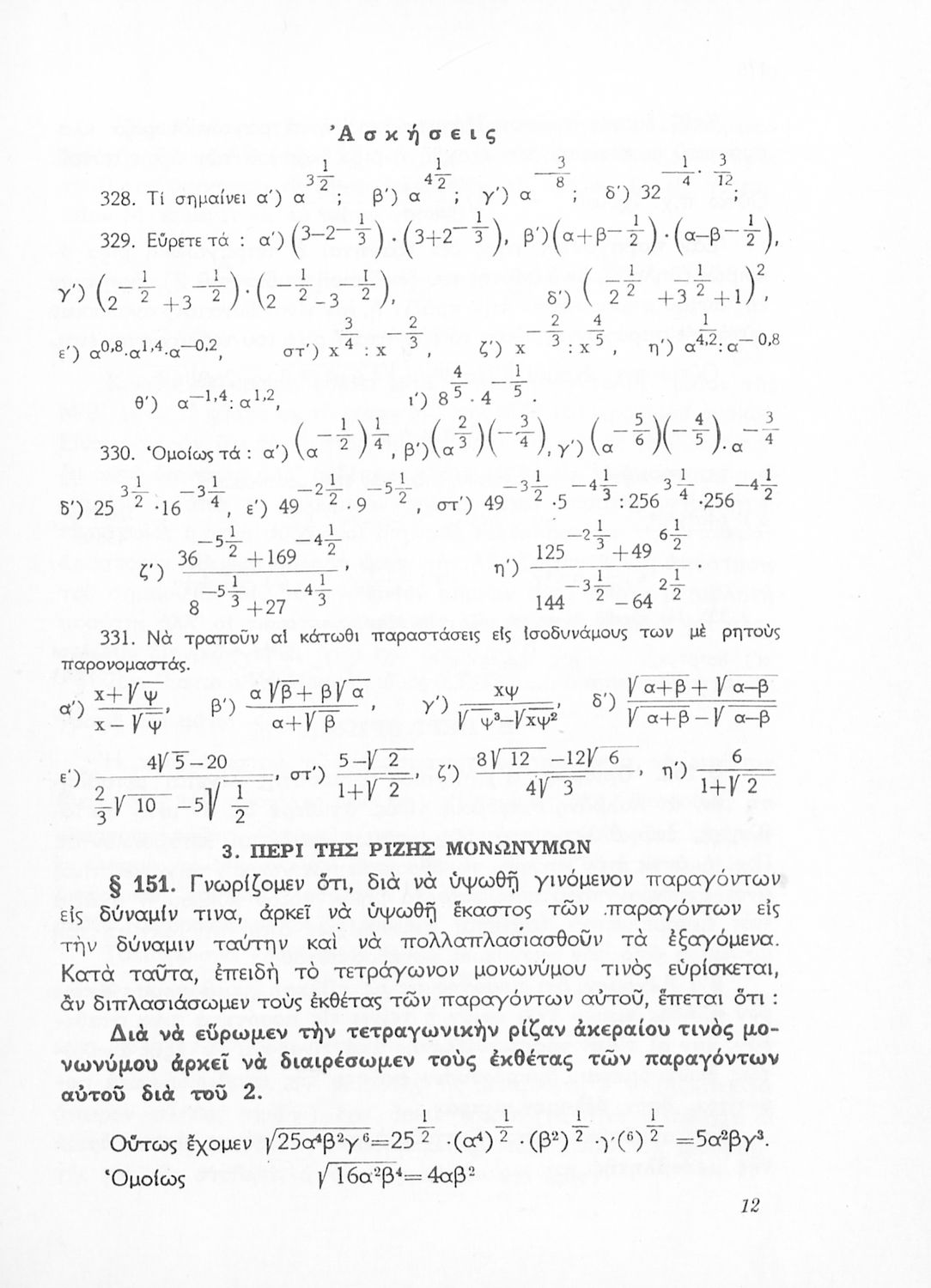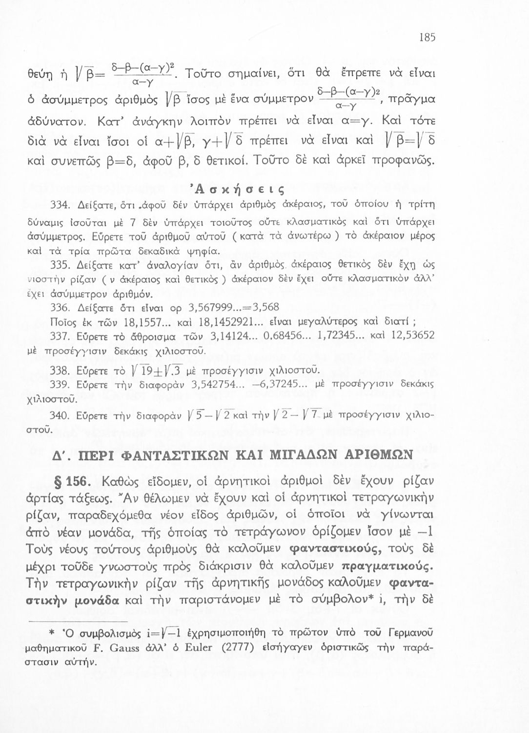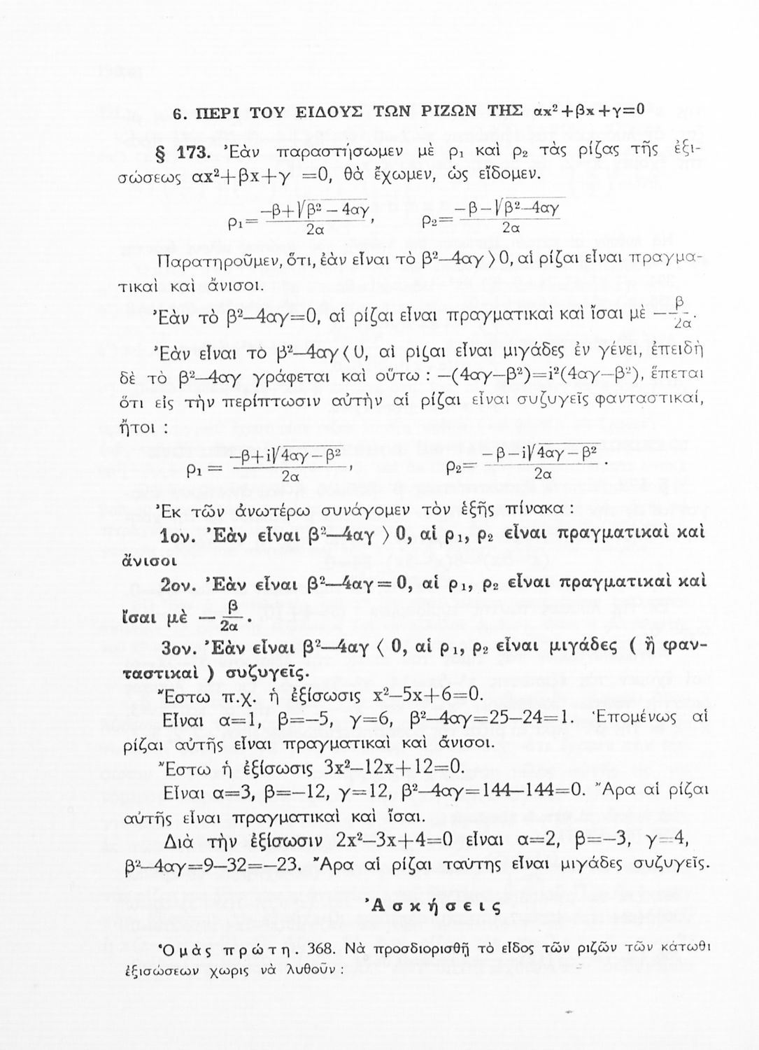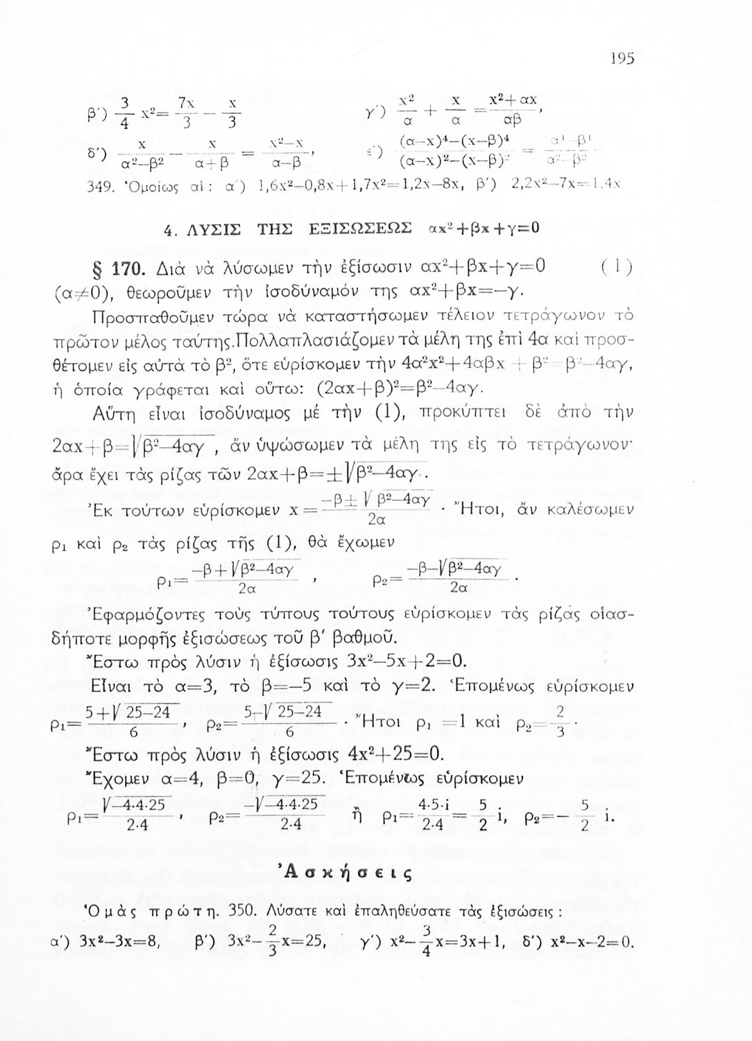 Άλγεβρα δια τας ανωτέρας τάξεις των Γυμνασίων