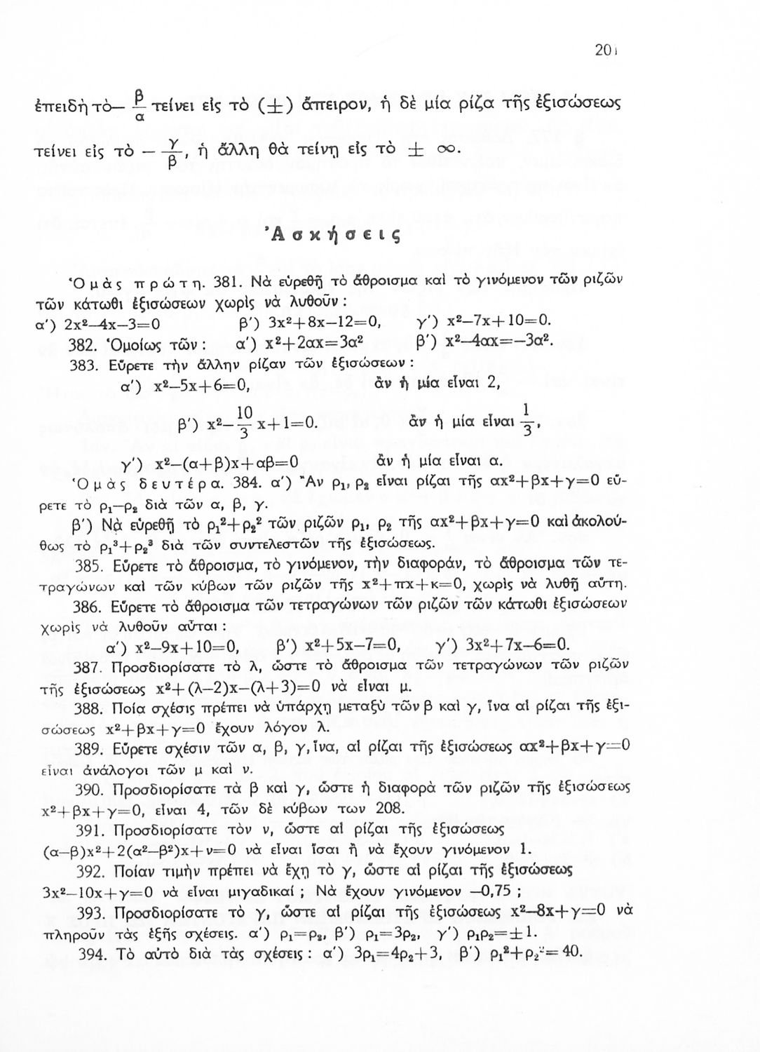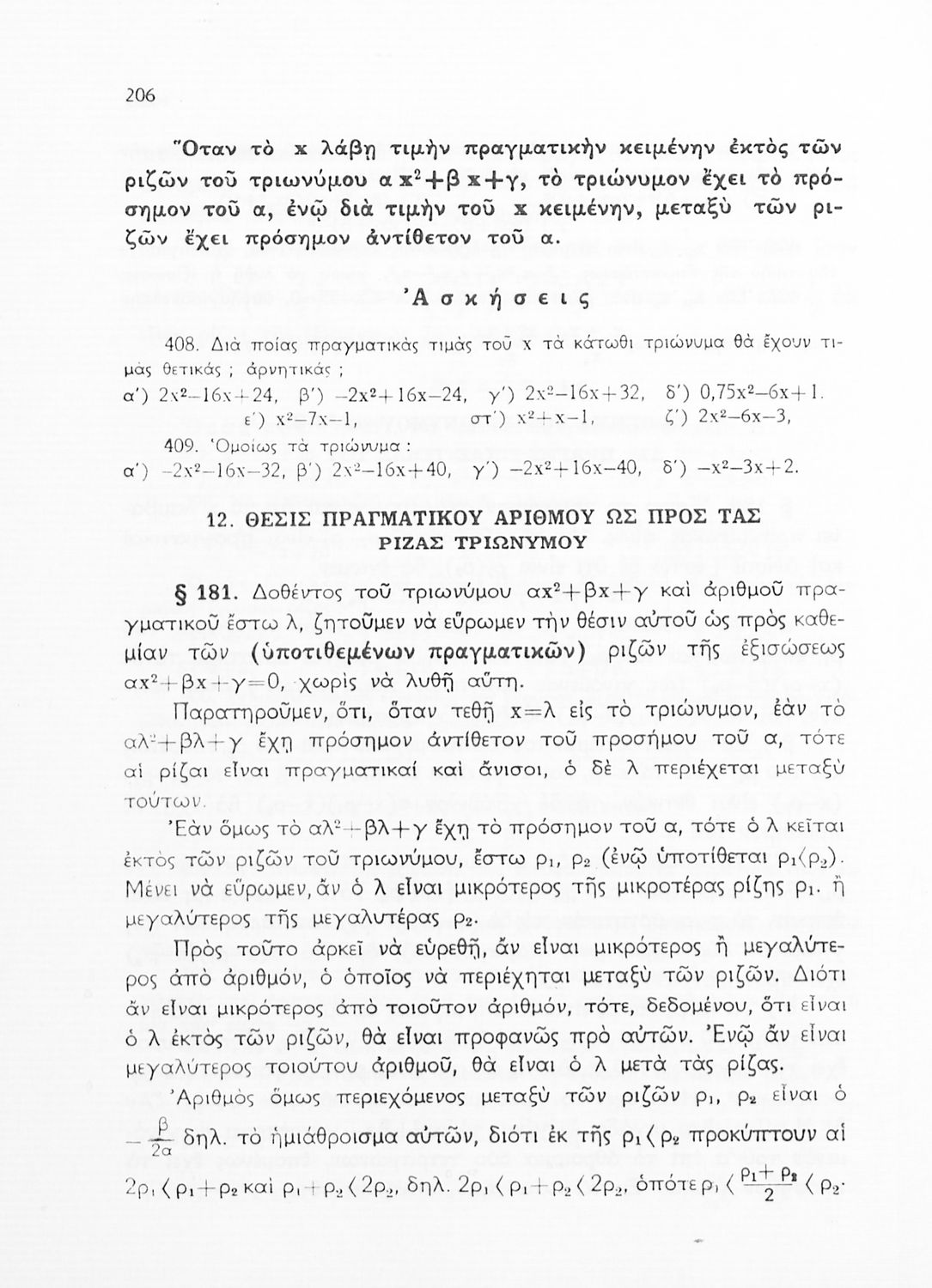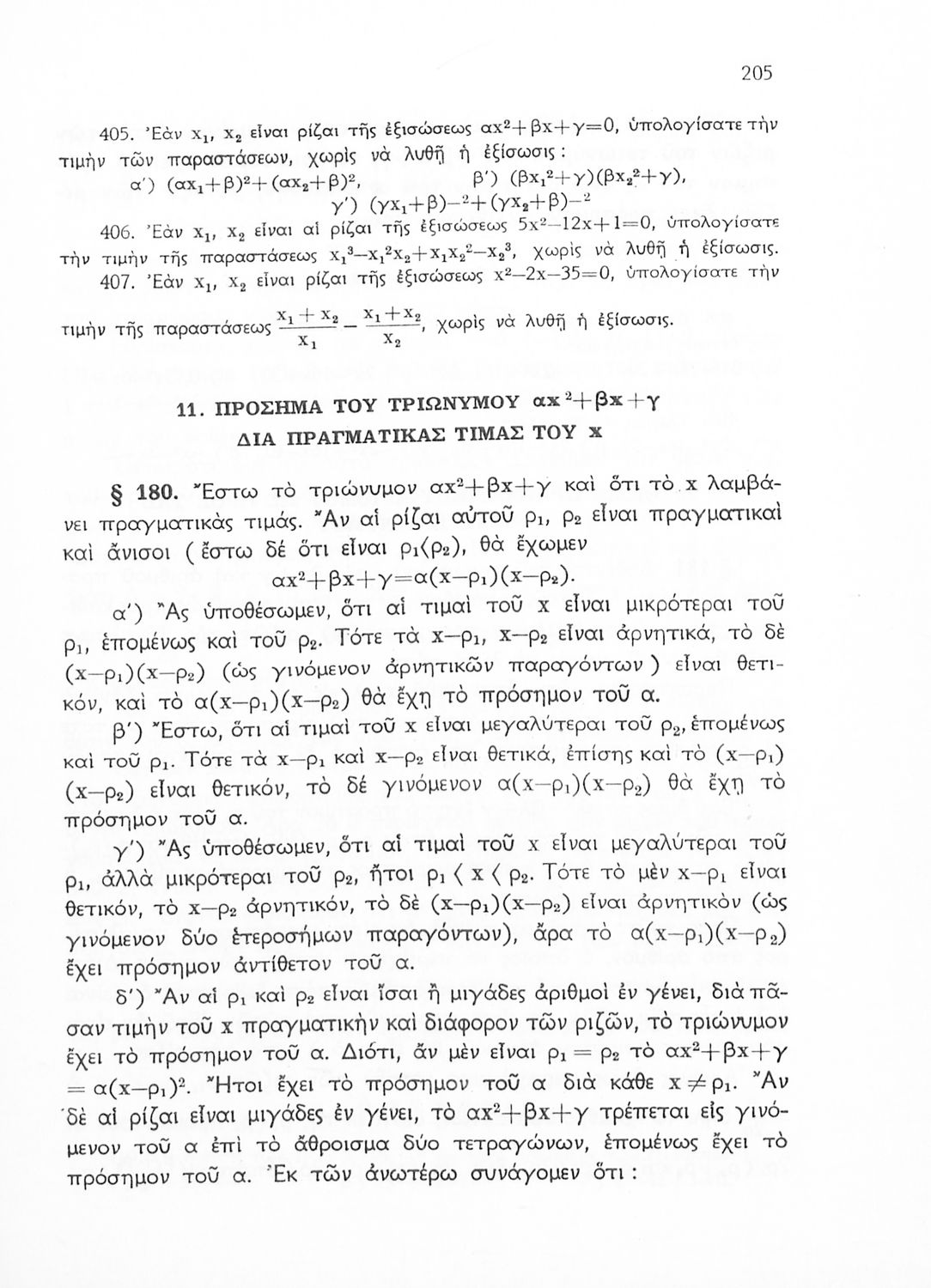 Άλγεβρα δια τας ανωτέρας τάξεις των Γυμνασίων