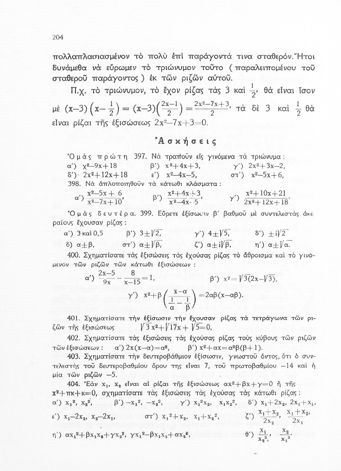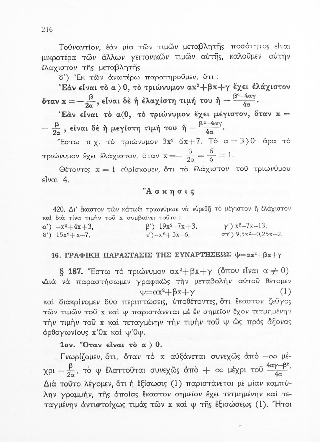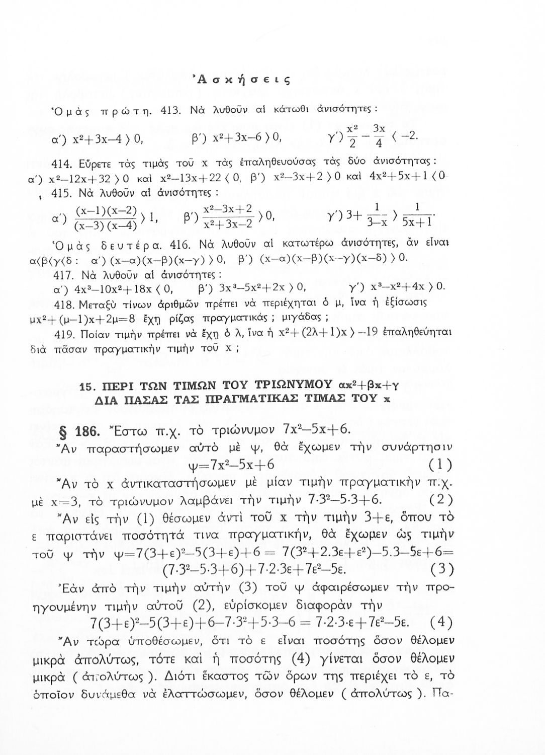 Άλγεβρα δια τας ανωτέρας τάξεις των Γυμνασίων