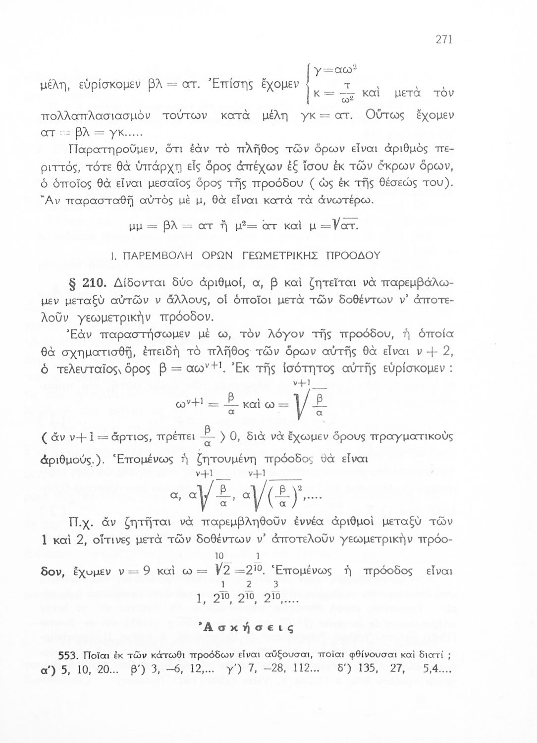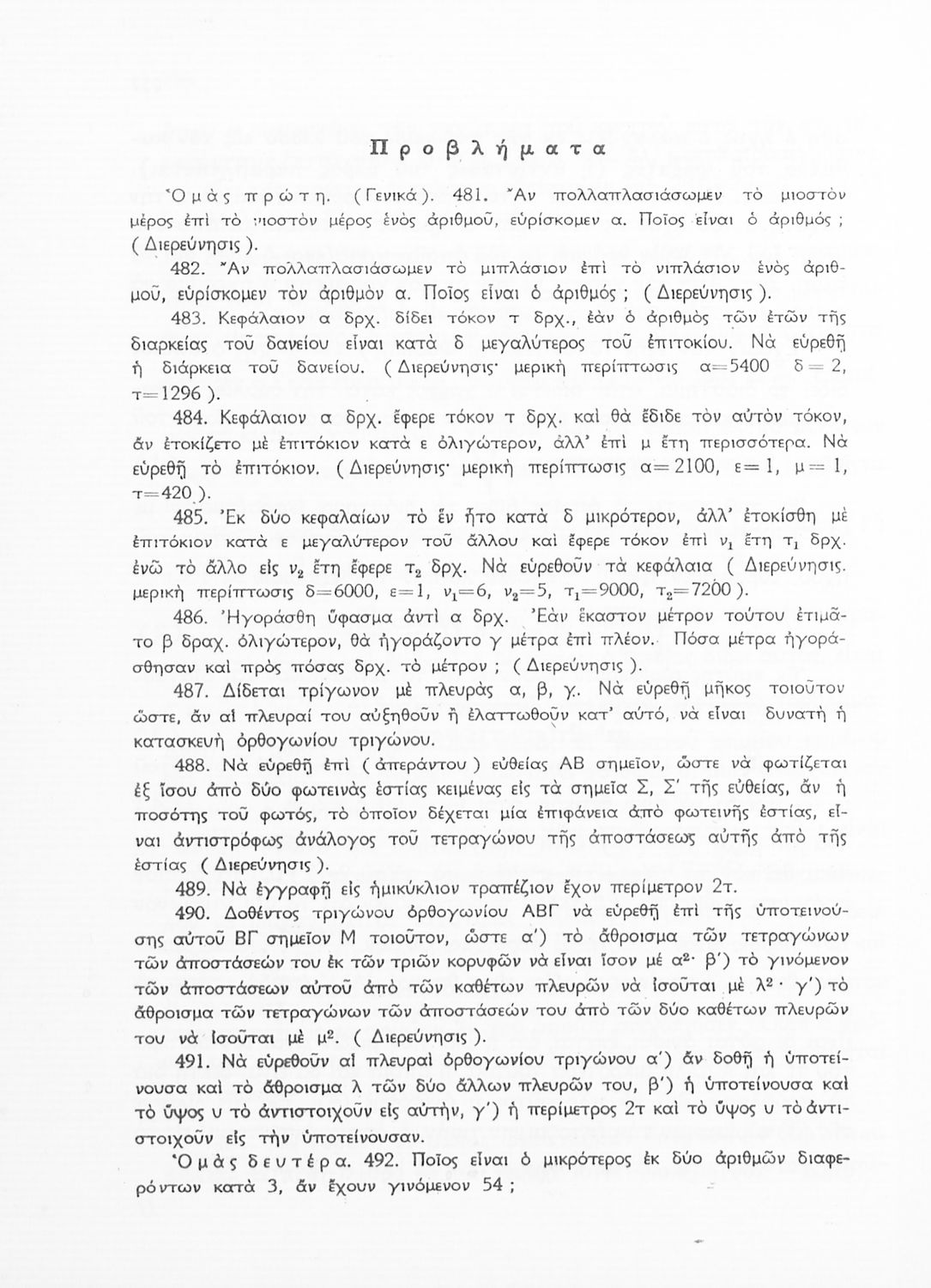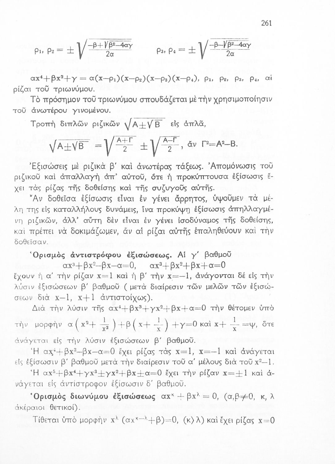Άλγεβρα δια τας ανωτέρας τάξεις των Γυμνασίων