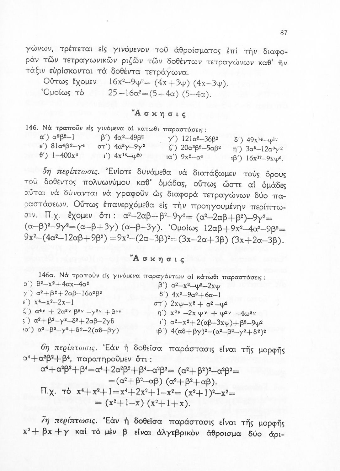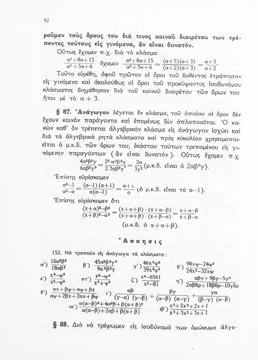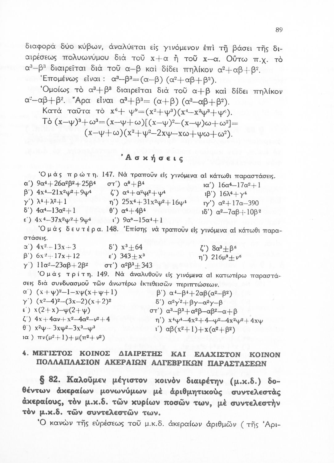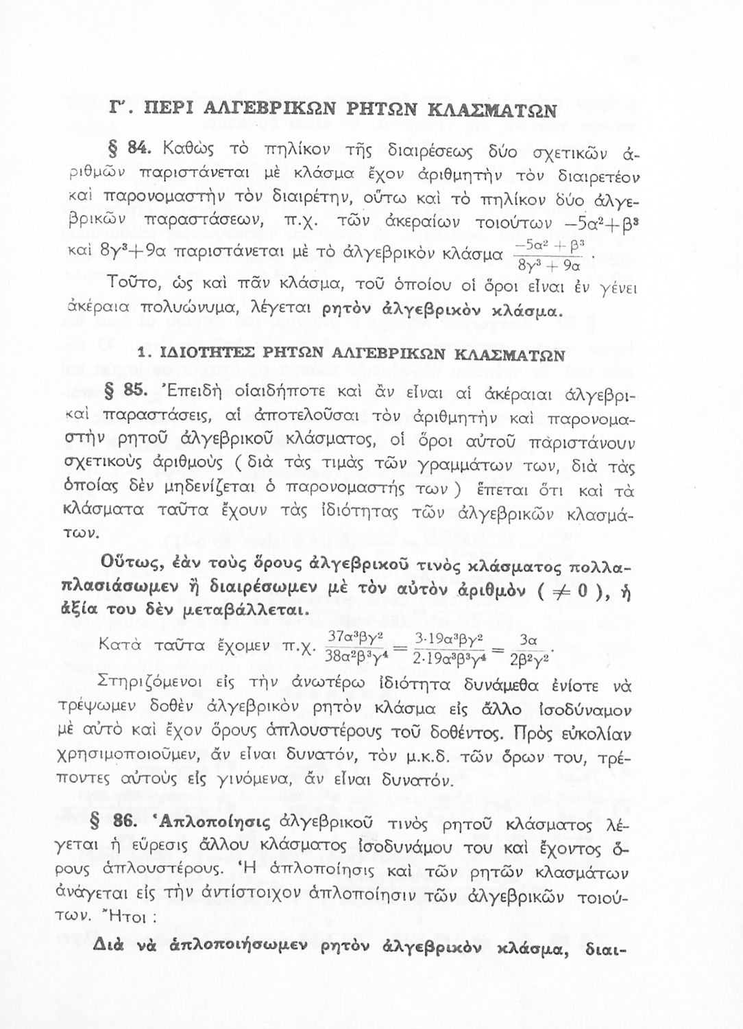 Άλγεβρα δια τας ανωτέρας τάξεις των Γυμνασίων