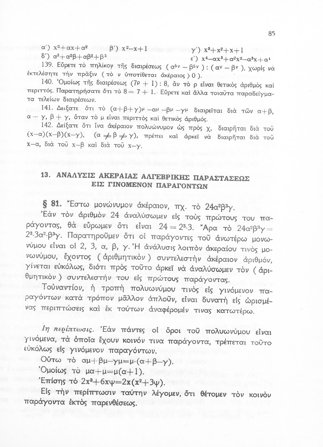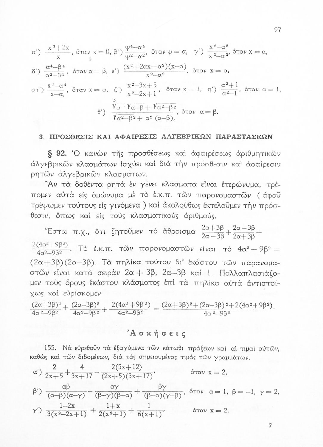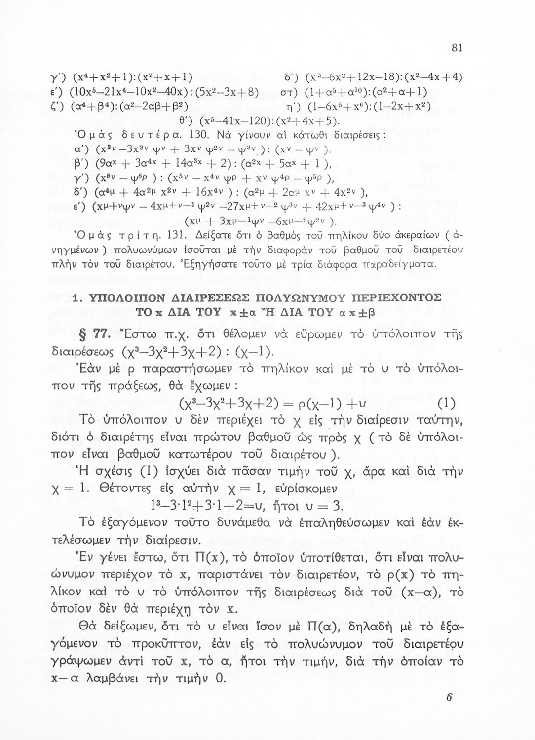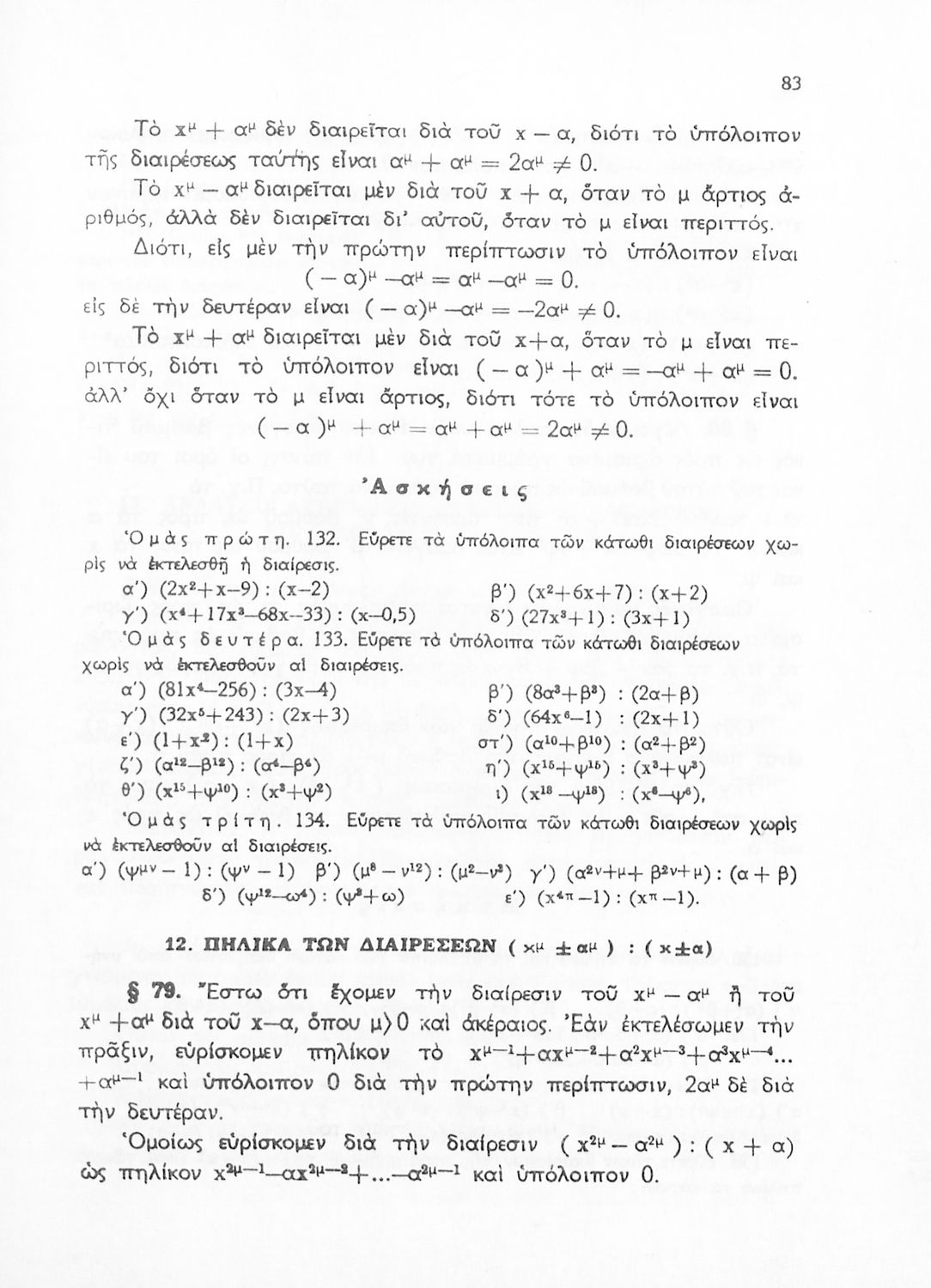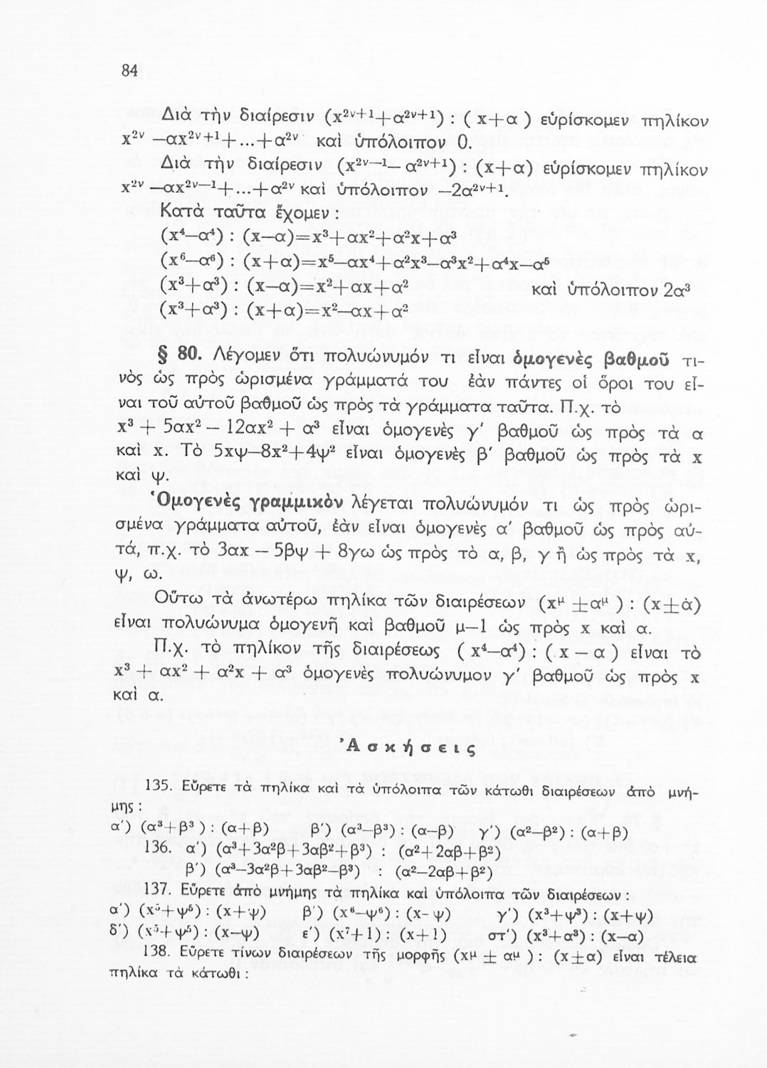 Άλγεβρα δια τας ανωτέρας τάξεις των Γυμνασίων