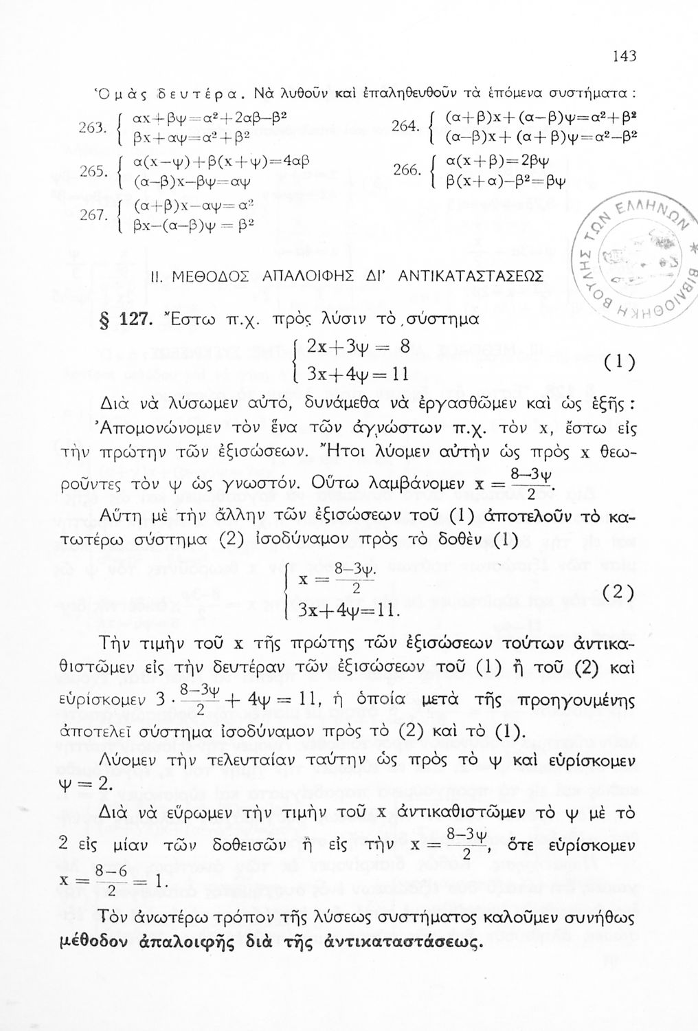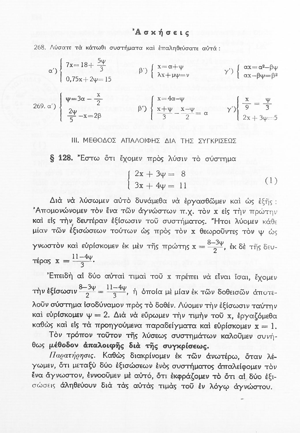 Άλγεβρα Δ΄ Γυμνασίου   [1969, 11η Έκδοση]