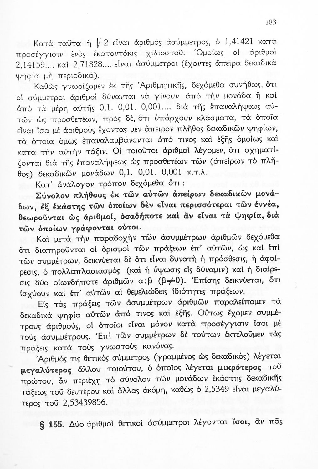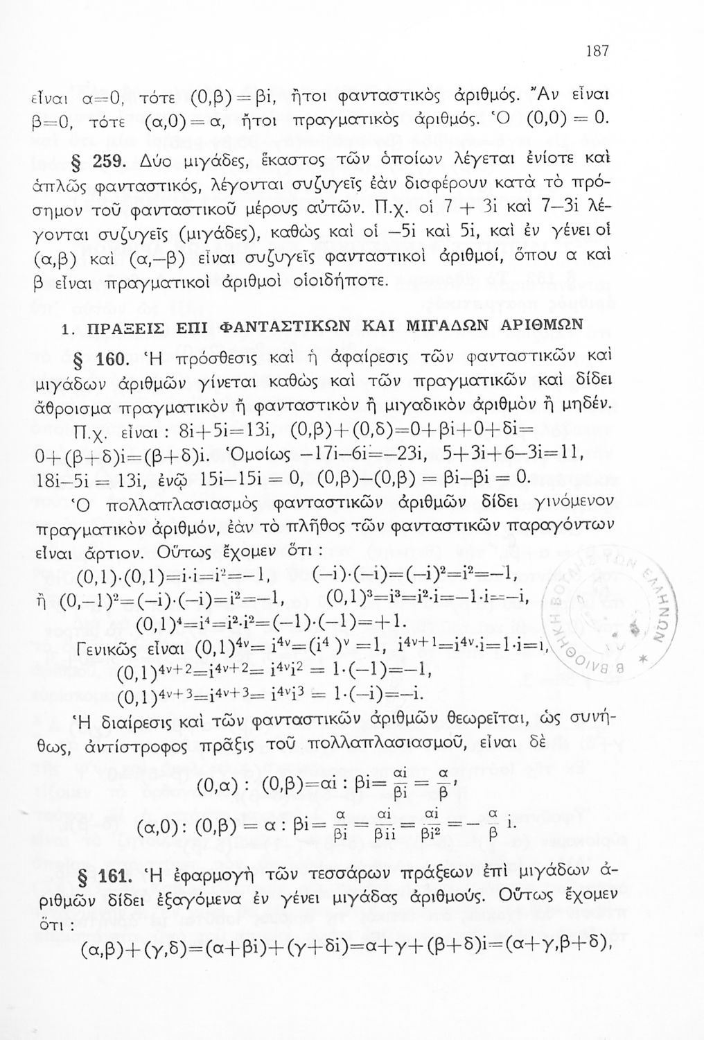 Σχολικό εγχειρίδιο Άλγεβρας Δ΄ Γυμνασίου που εστιάζει στις ιδιότητες των αριθμών, στις εξισώσεις, στους λογάριθμους και στις παραγώγους. Ο συγγραφέας ήταν καθηγητής στο Πανεπιστήμιο. Φέρει το σύμβολο της ...