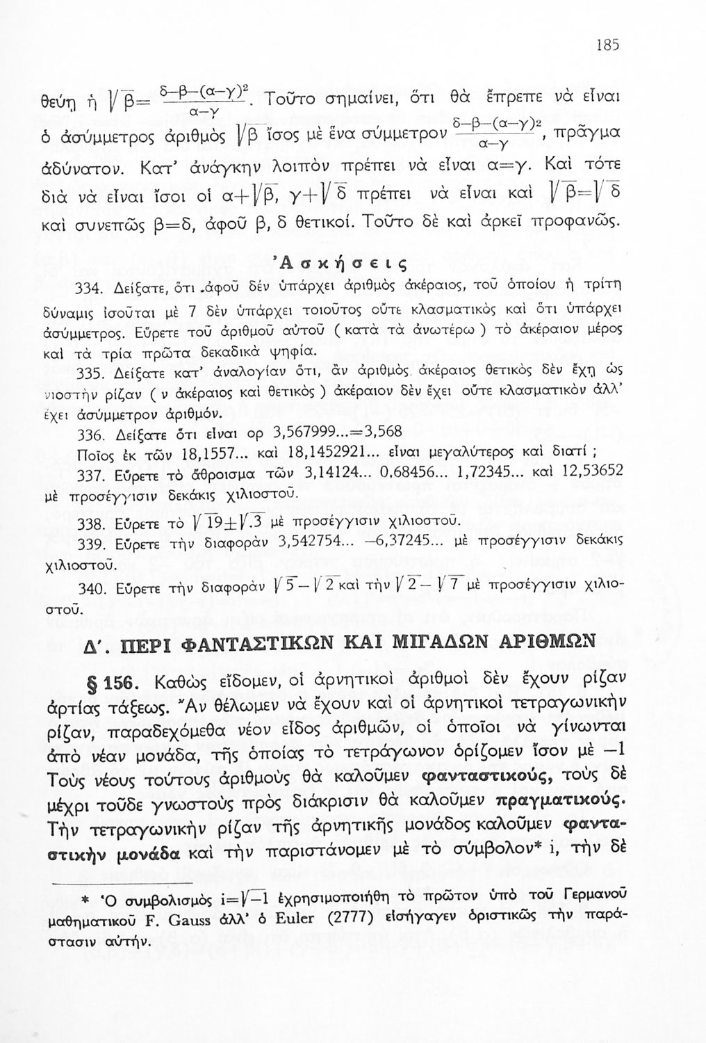 Άλγεβρα Δ΄ Γυμνασίου   [1969, 11η Έκδοση]