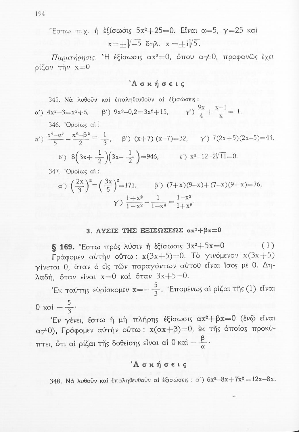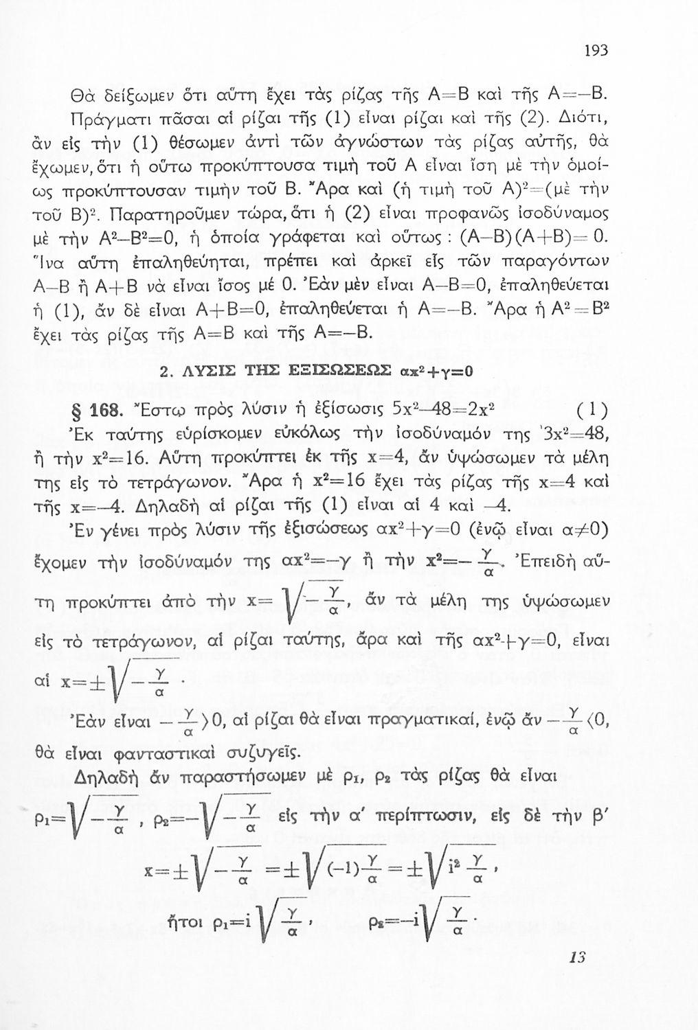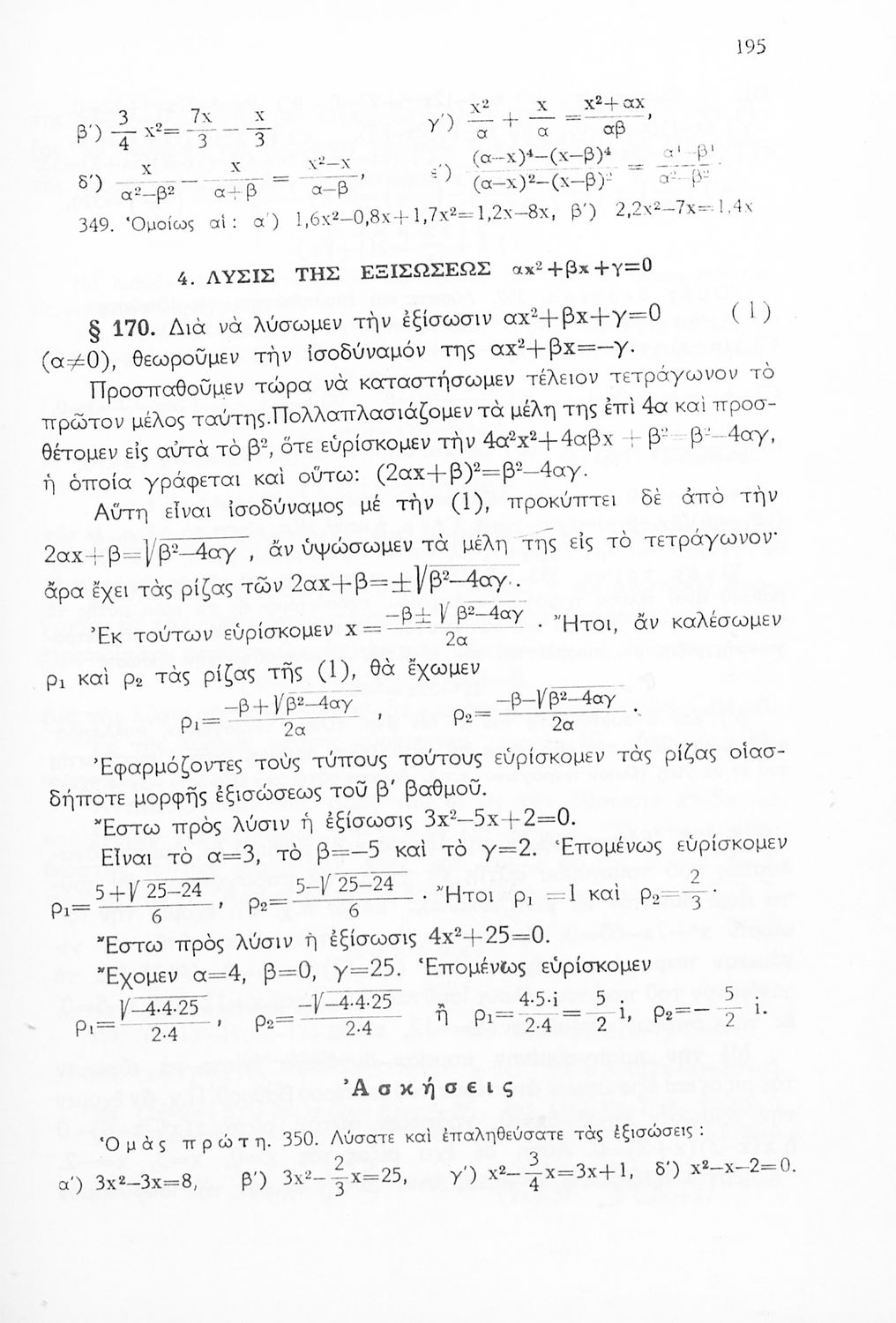 Άλγεβρα Δ΄ Γυμνασίου   [1971, 13η Έκδοση]