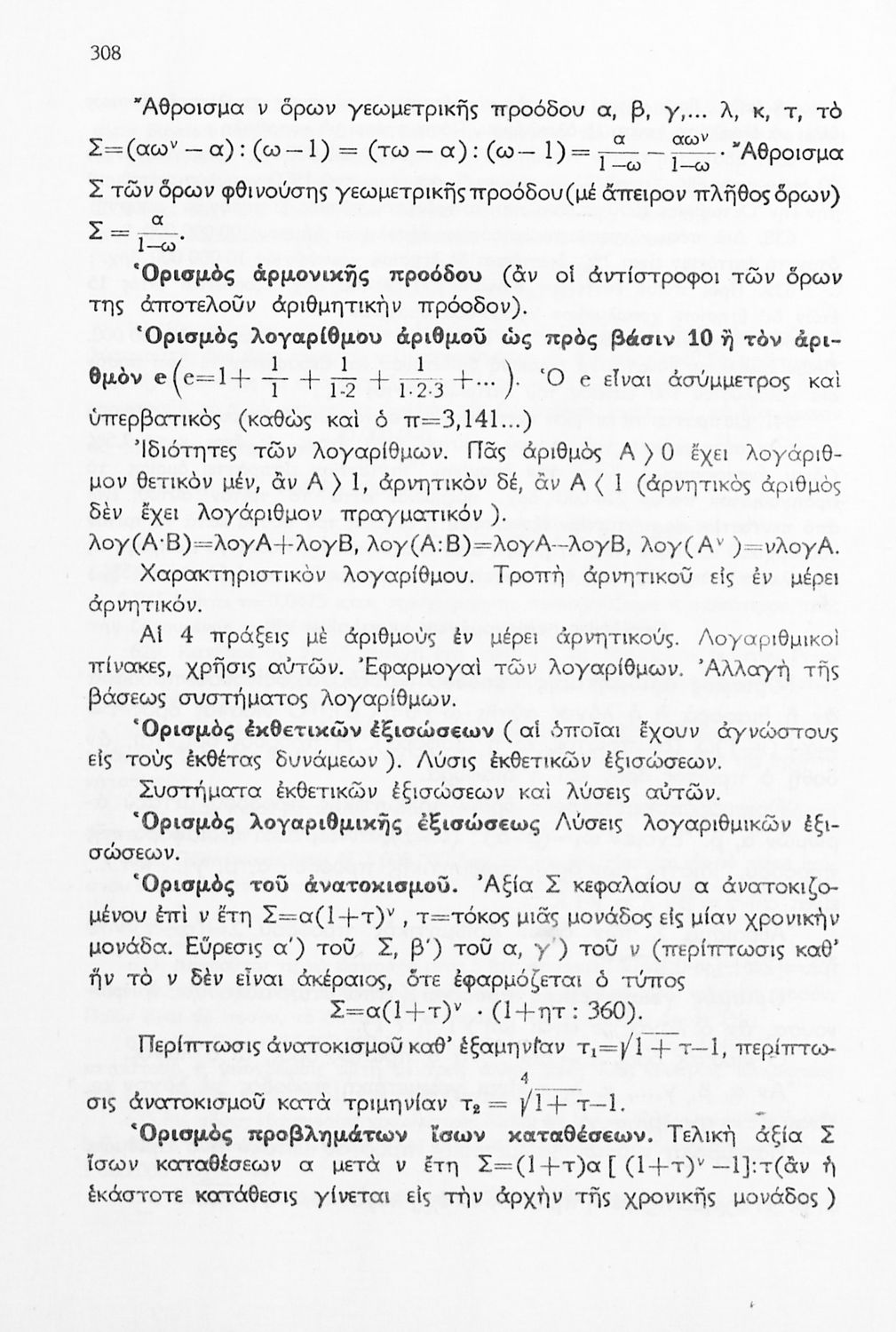 Σχολικό εγχειρίδιο Άλγεβρας Δ΄ Γυμνασίου που εστιάζει στις ιδιότητες των αριθμών, στις εξισώσεις, στους λογάριθμους και στις παραγώγους. Ο συγγραφέας ήταν καθηγητής στο Πανεπιστήμιο. Φέρει το σύμβολο της ...