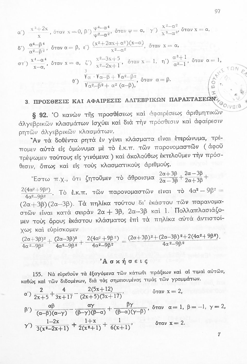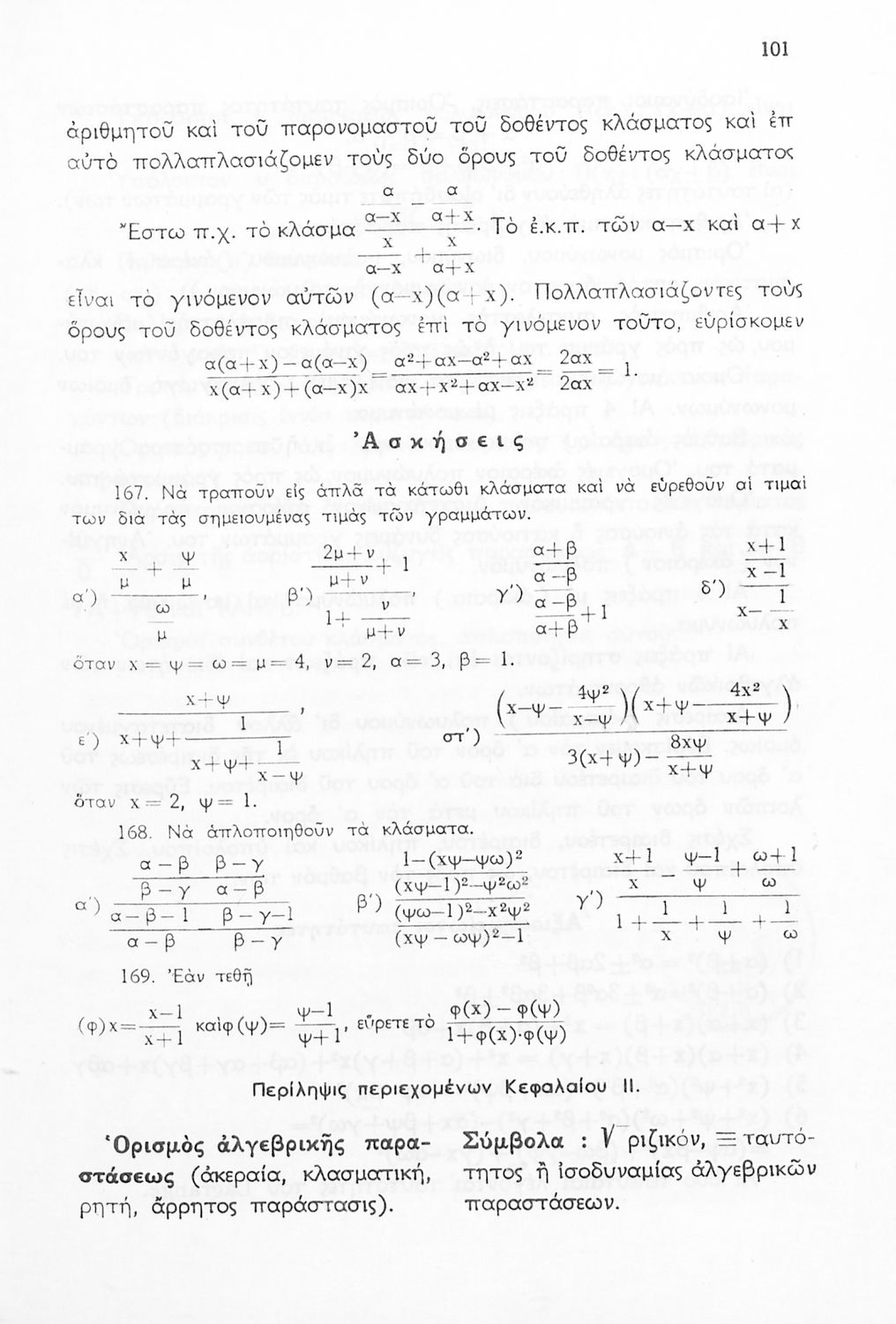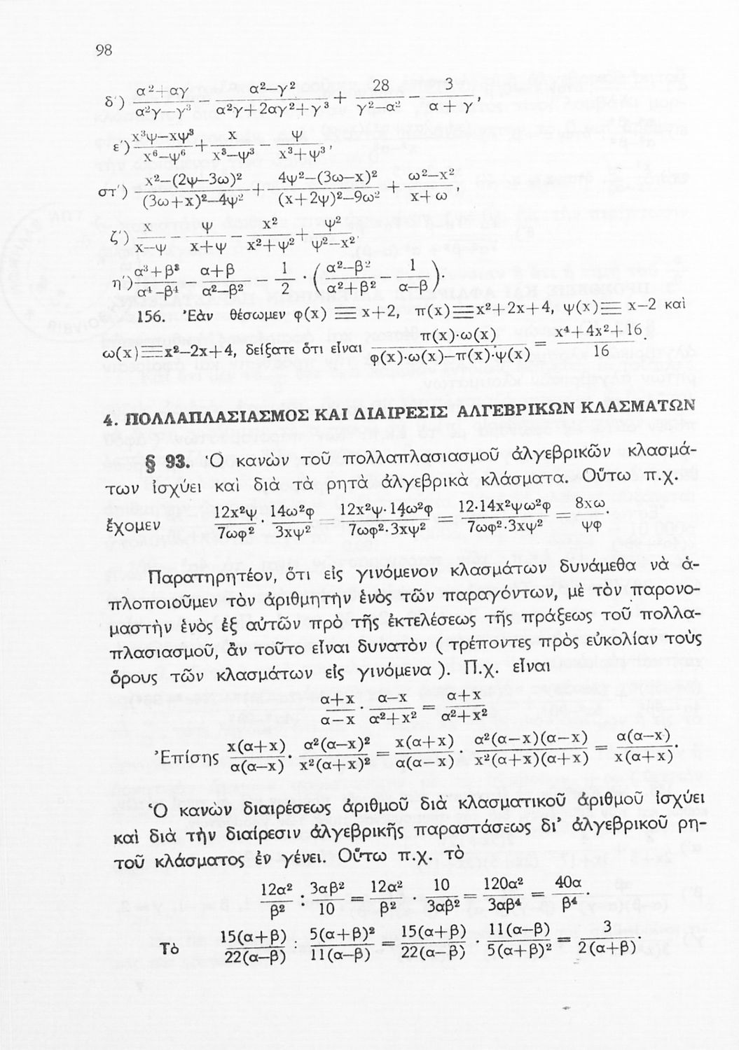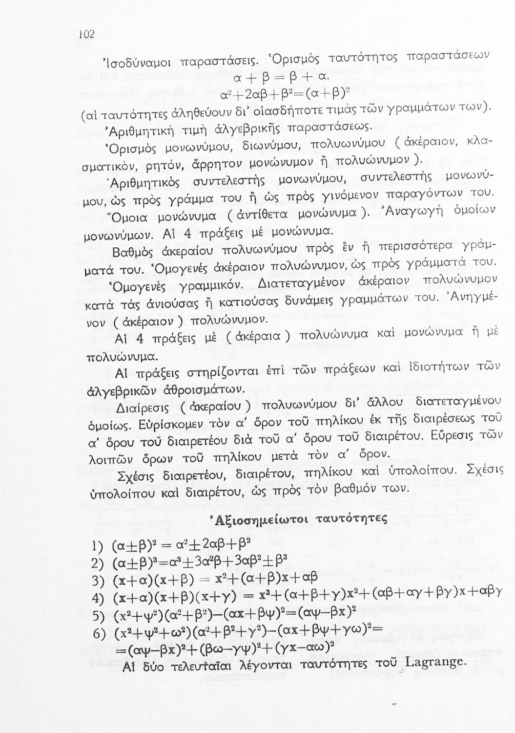Άλγεβρα Δ΄ Γυμνασίου   [1969, 11η Έκδοση]