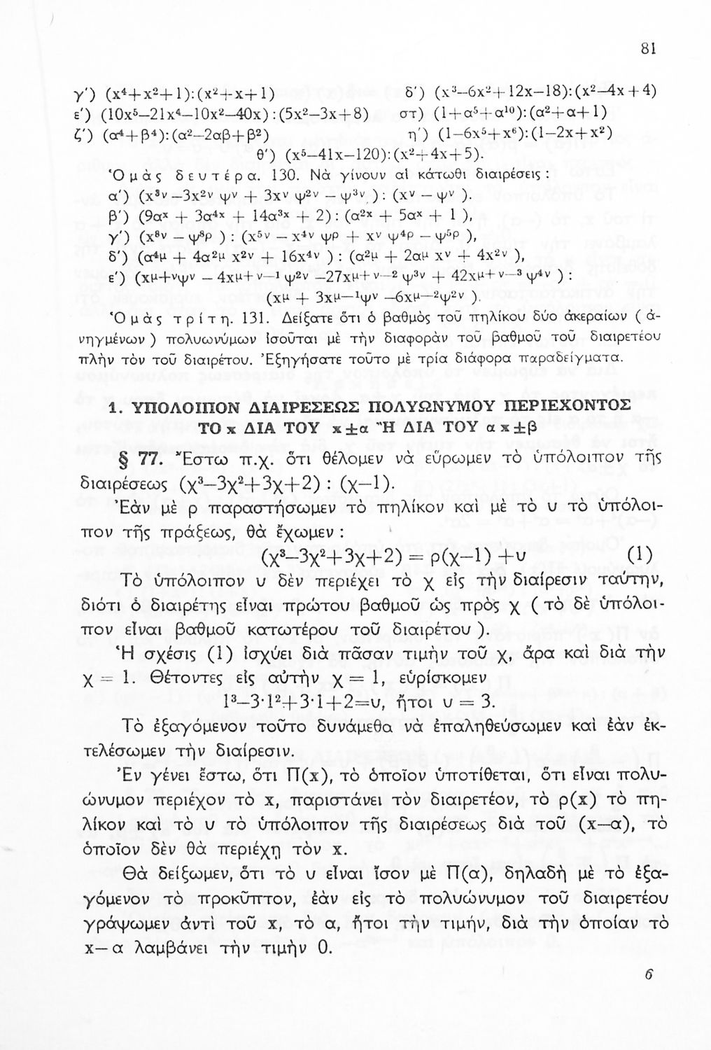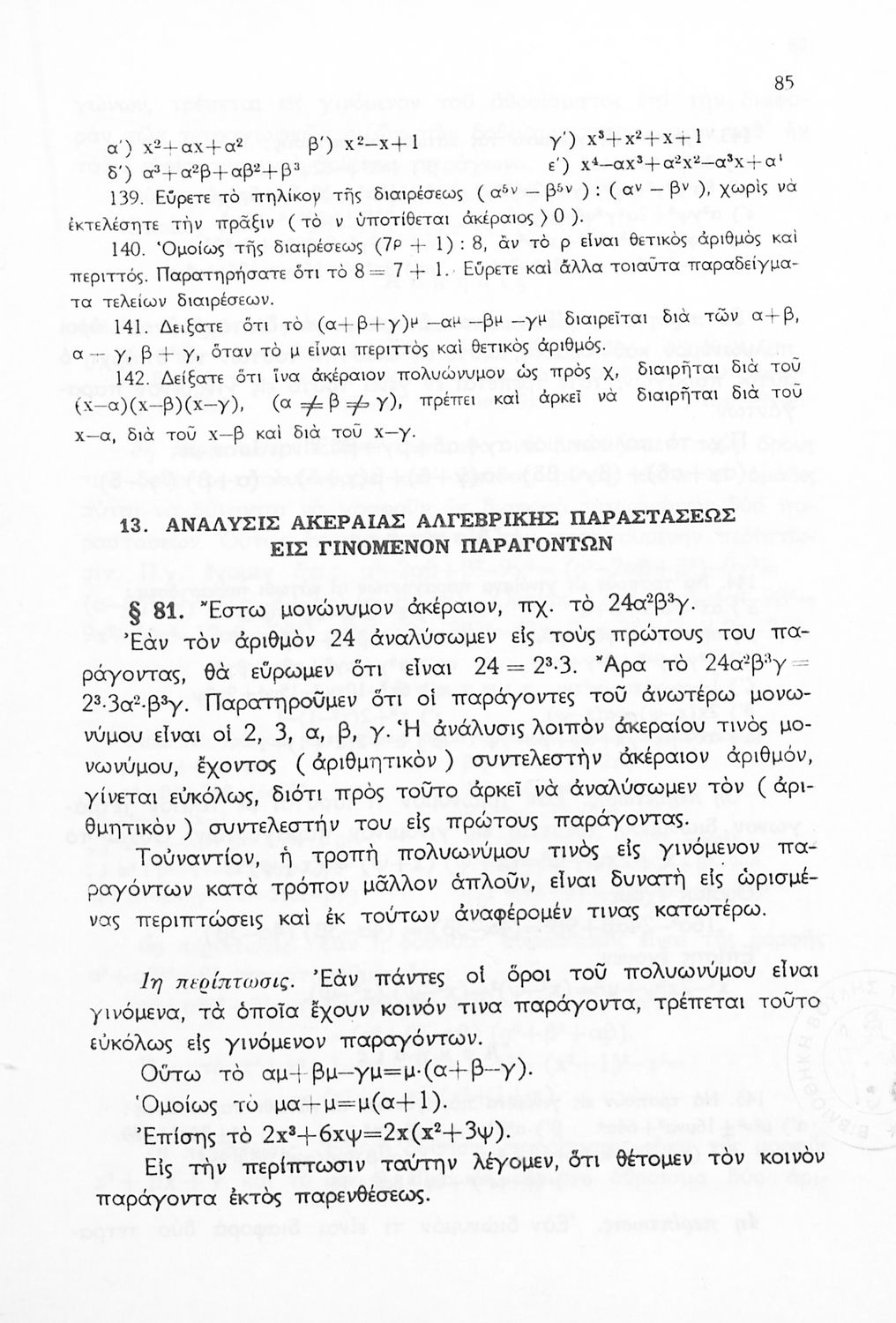 Άλγεβρα Δ΄ Γυμνασίου   [1971, 13η Έκδοση]