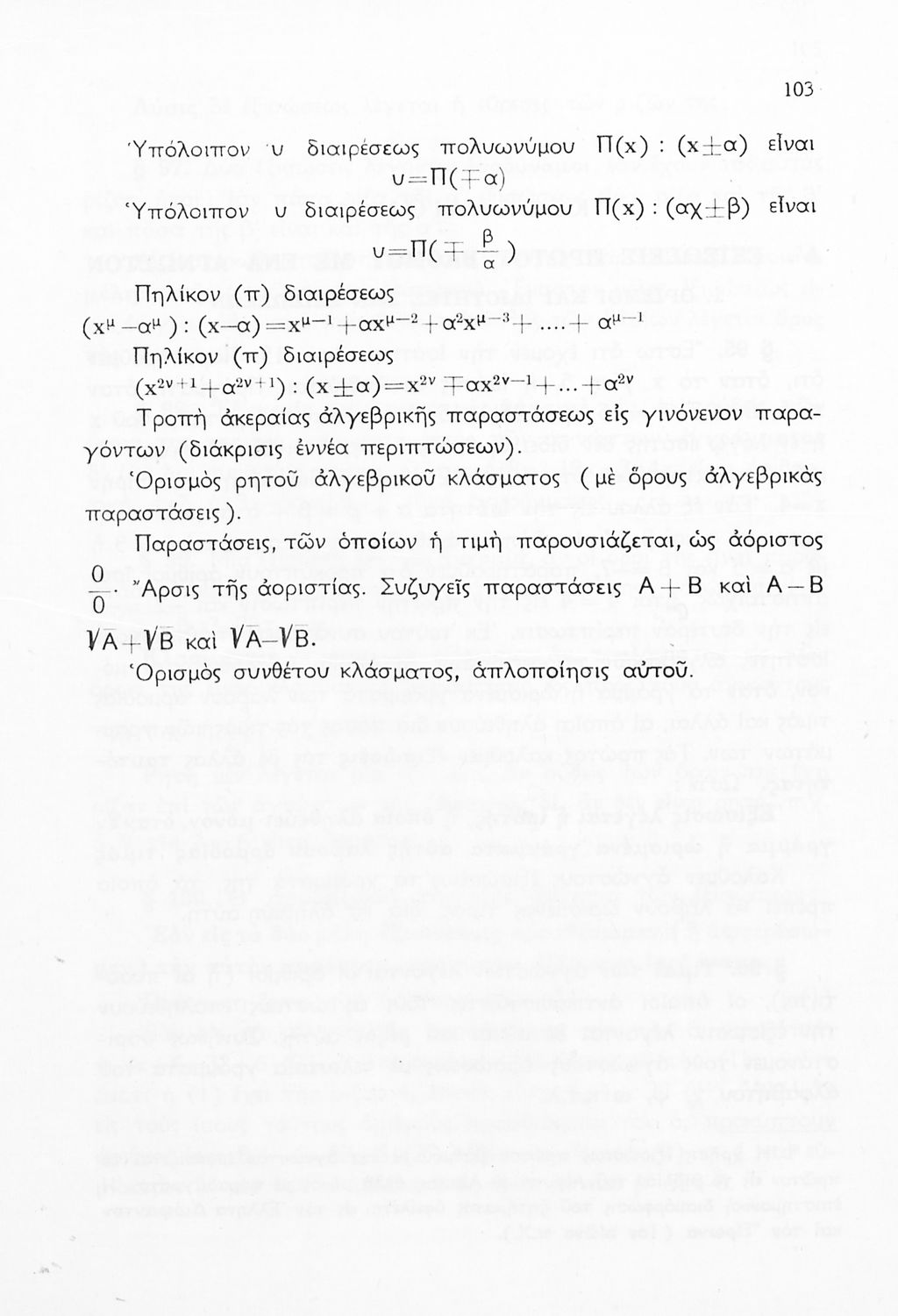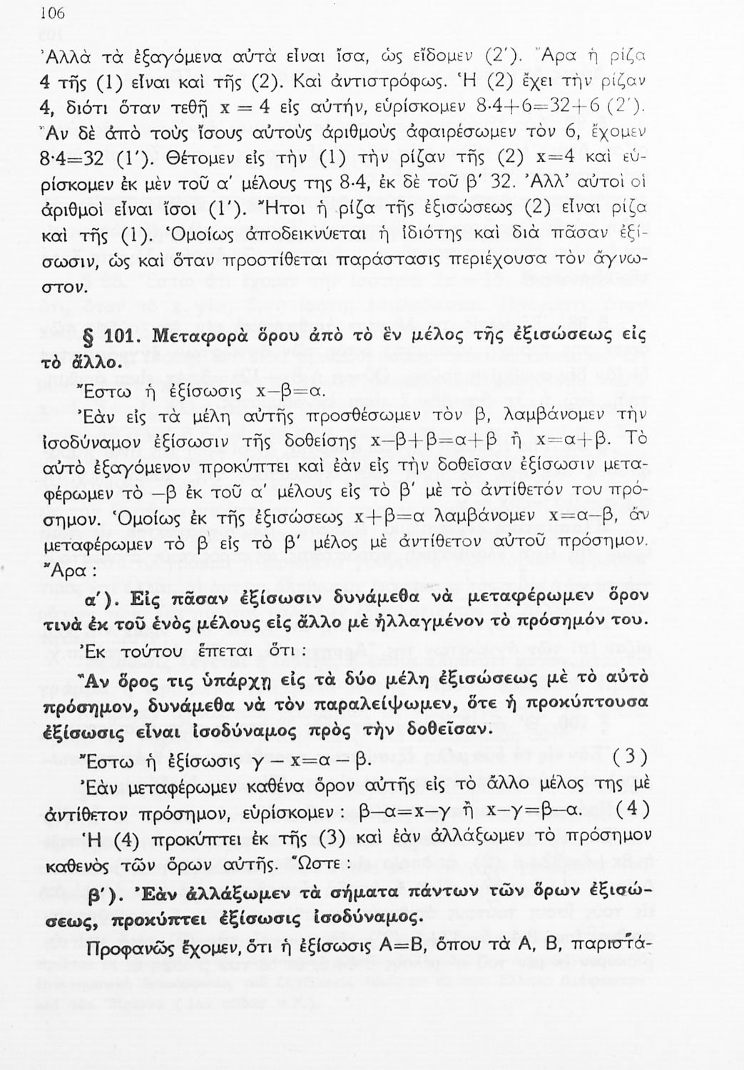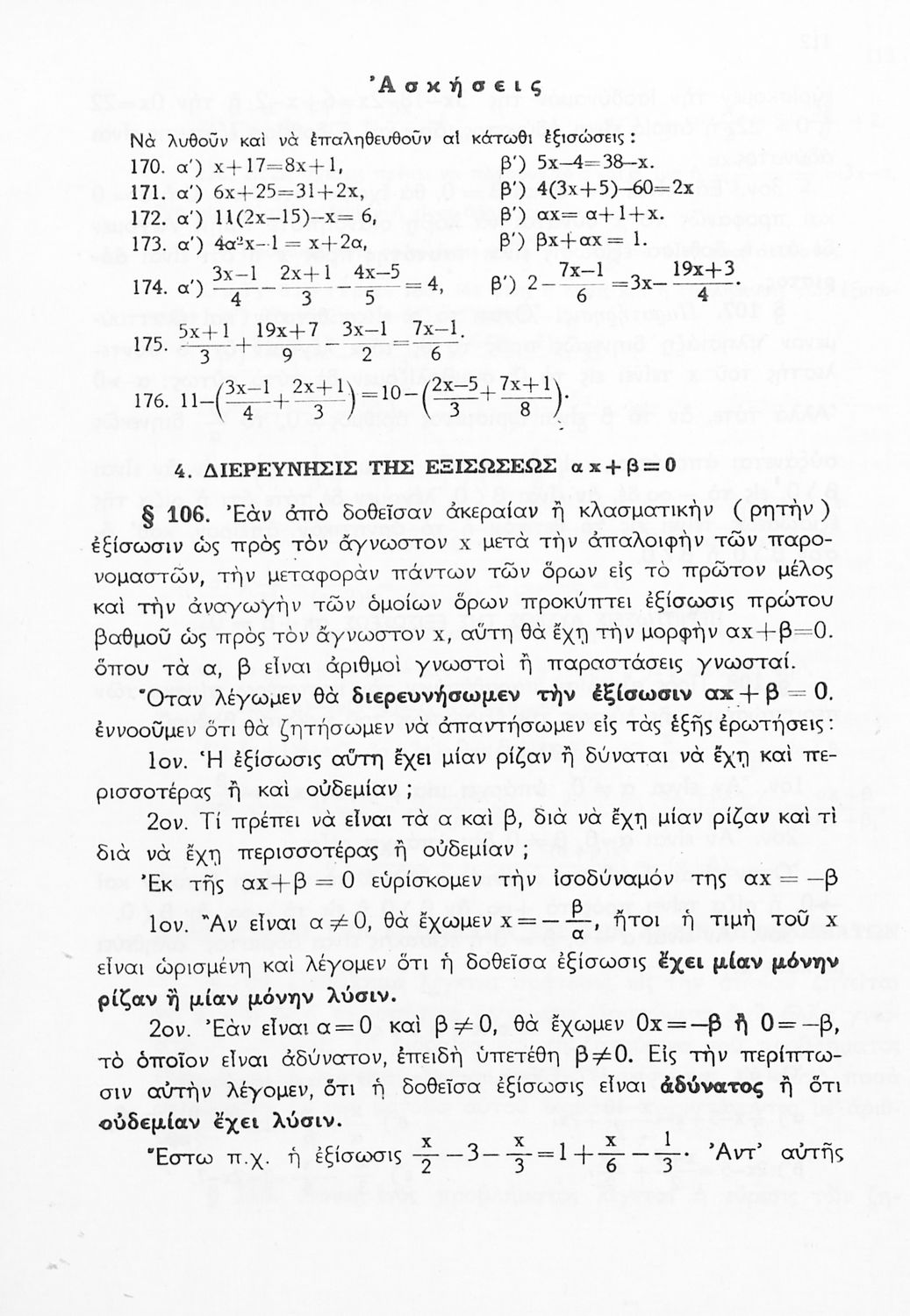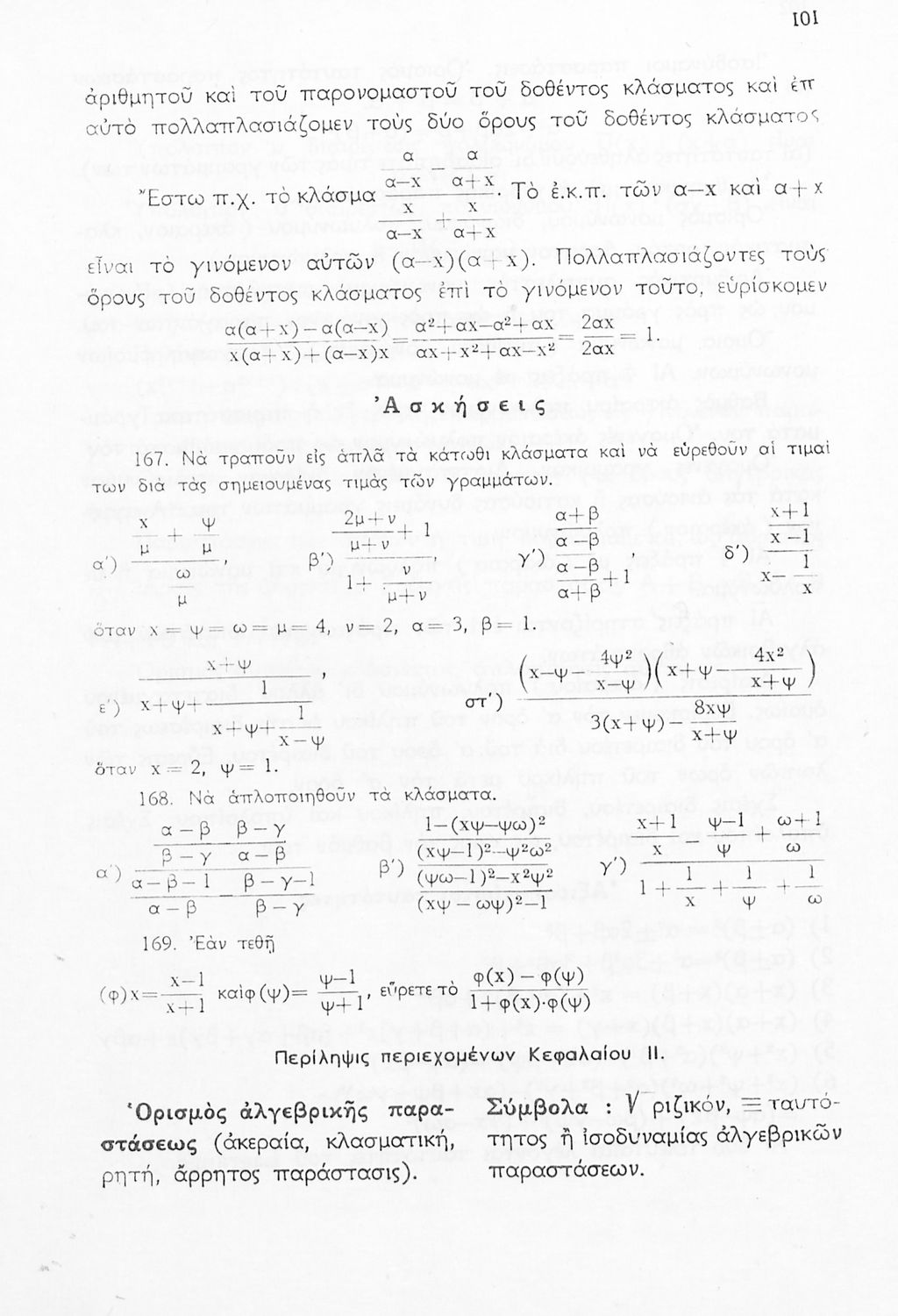 Παρουσίαση περιεχομένου: Σχολικό εγχειρίδιο Μαθηματικών Δ', Ε' και ΣΤ΄ τάξεων του Γυμνασίου που παρουσιάζει τις βασικές έννοιες της Άλγεβρας, εστιάζει τις ιδιότητες των αριθμών και περιέχει ασκήσεις εξισώσεων, λογαρίθμων και παραγώγων.