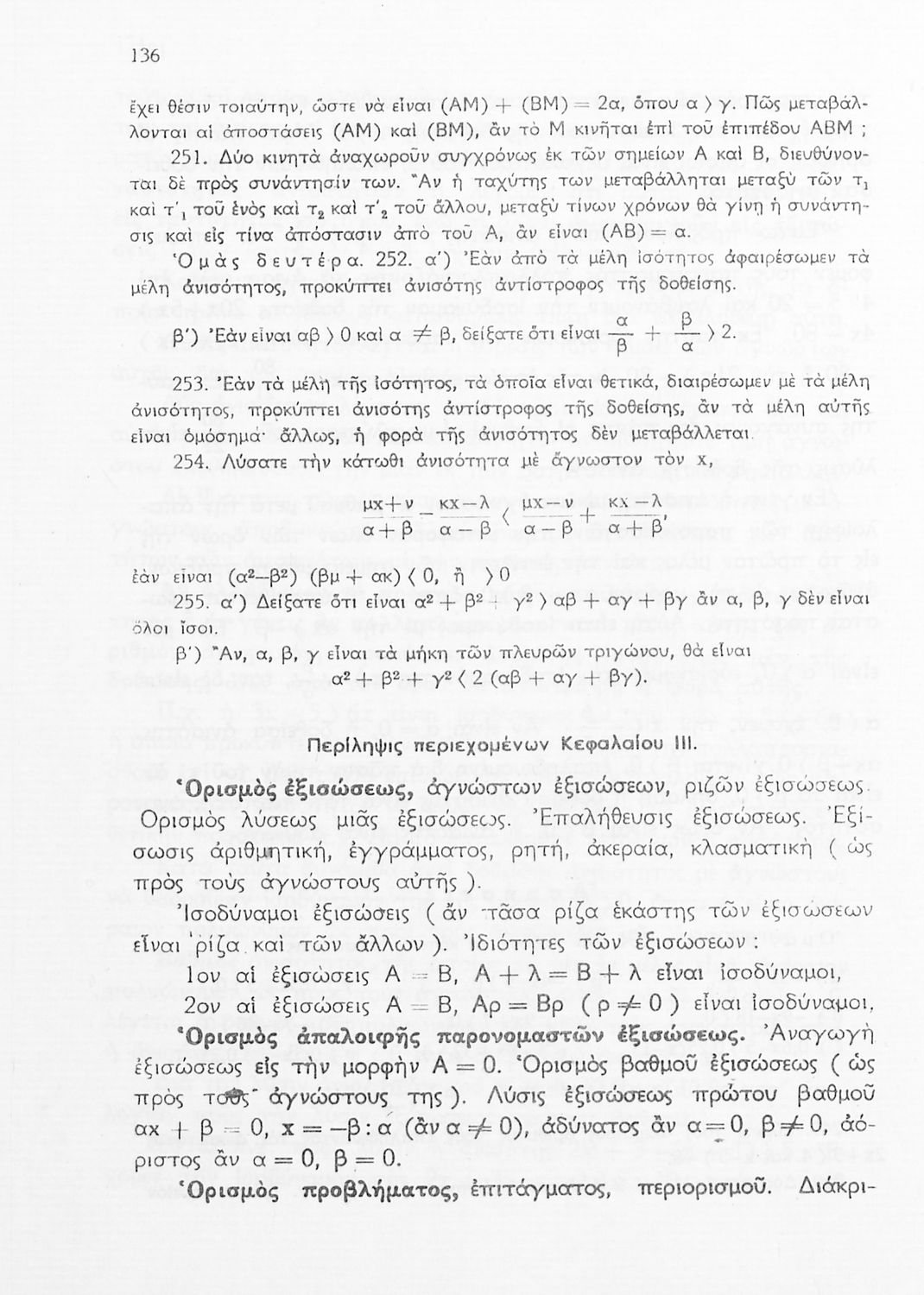 Παρουσίαση περιεχομένου: Σχολικό εγχειρίδιο Μαθηματικών Δ', Ε' και ΣΤ΄ τάξεων του Γυμνασίου που παρουσιάζει τις βασικές έννοιες της Άλγεβρας, εστιάζει τις ιδιότητες των αριθμών και περιέχει ασκήσεις εξισώσεων, λογαρίθμων και παραγώγων.