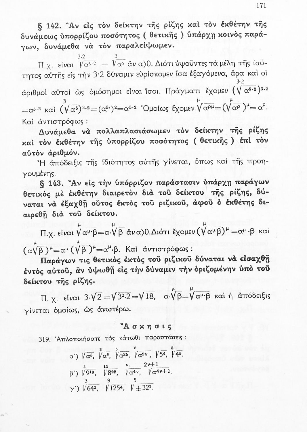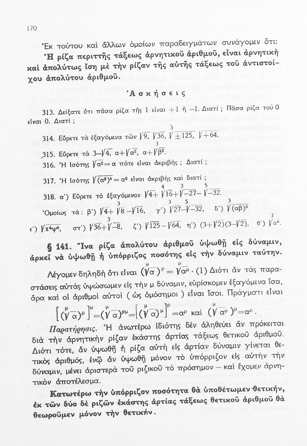 Παρουσίαση περιεχομένου: Σχολικό εγχειρίδιο Μαθηματικών Δ', Ε' και ΣΤ΄ τάξεων του Γυμνασίου που παρουσιάζει τις βασικές έννοιες της Άλγεβρας, εστιάζει τις ιδιότητες των αριθμών και περιέχει ασκήσεις εξισώσεων, λογαρίθμων και παραγώγων.
