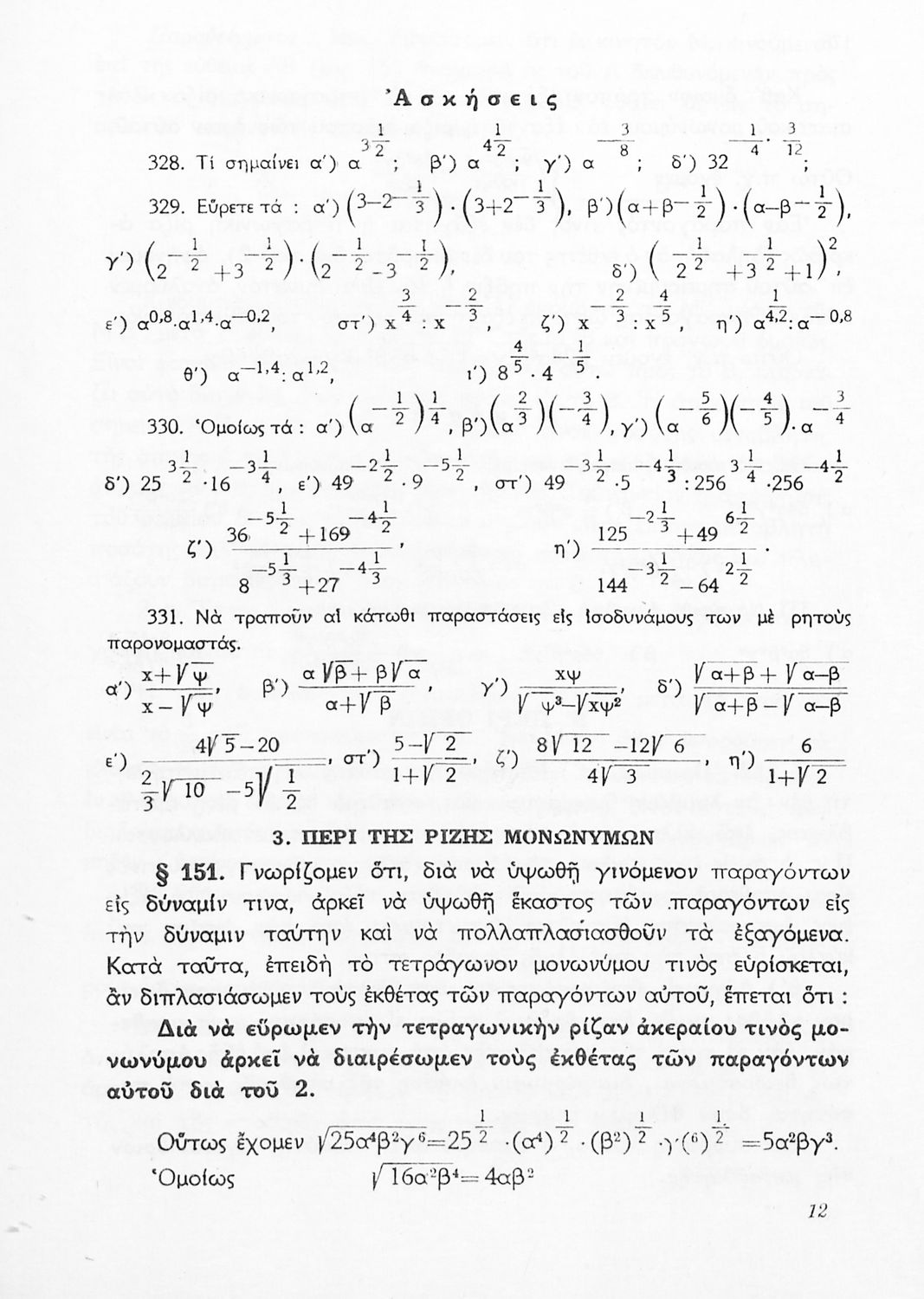 Άλγεβρα Δ', Ε' και ΣΤ΄ Γυμνασίου