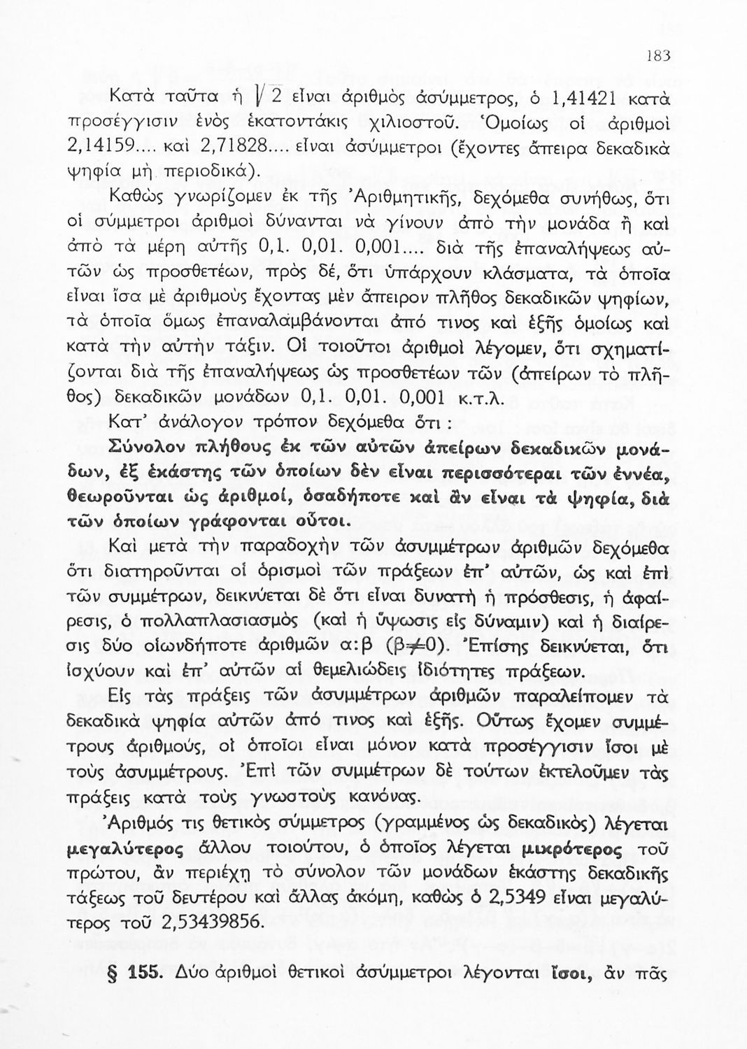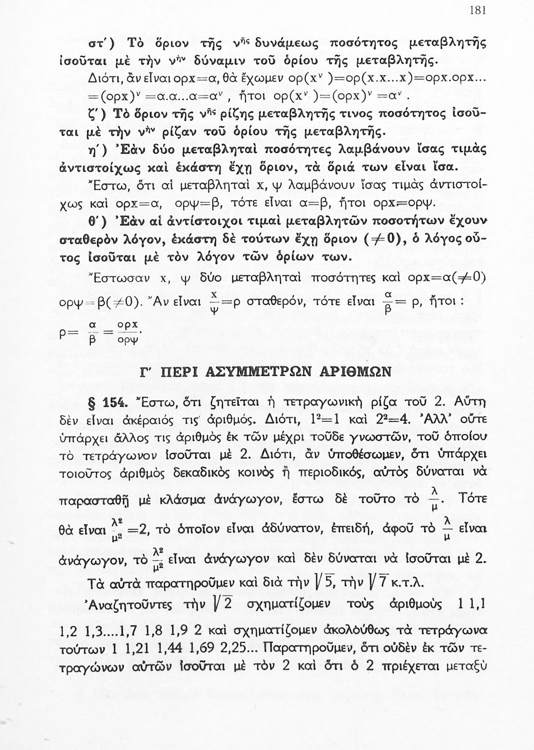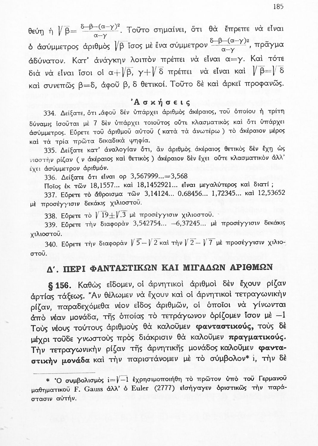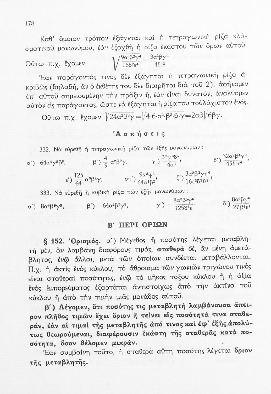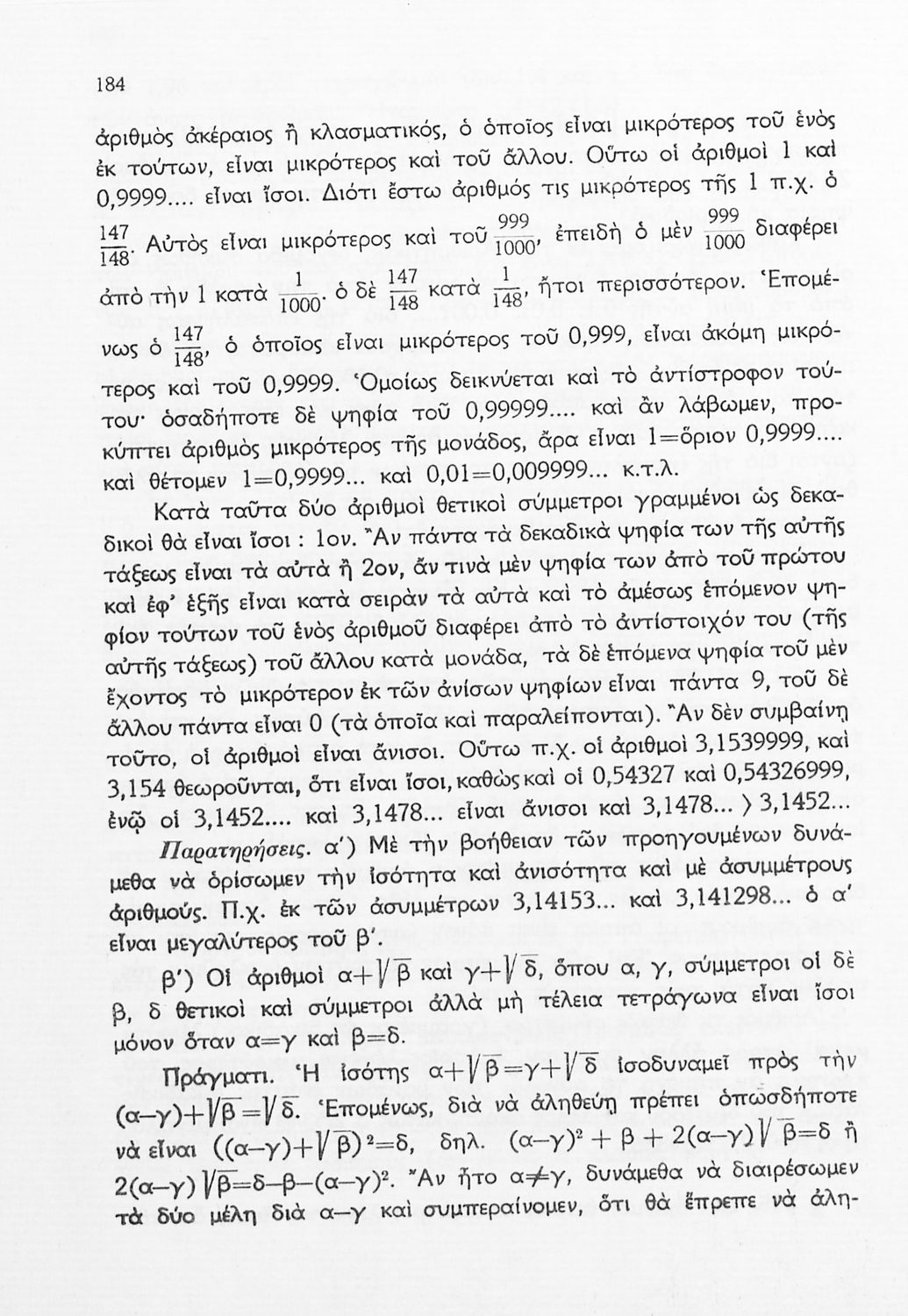 Σχολικό εγχειρίδιο Μαθηματικών Δ', Ε' και ΣΤ΄ τάξεων του Γυμνασίου που παρουσιάζει τις βασικές έννοιες της Άλγεβρας, εστιάζει τις ιδιότητες των αριθμών και περιέχει ασκήσεις εξισώσεων, λογαρίθμων και παραγώγων.