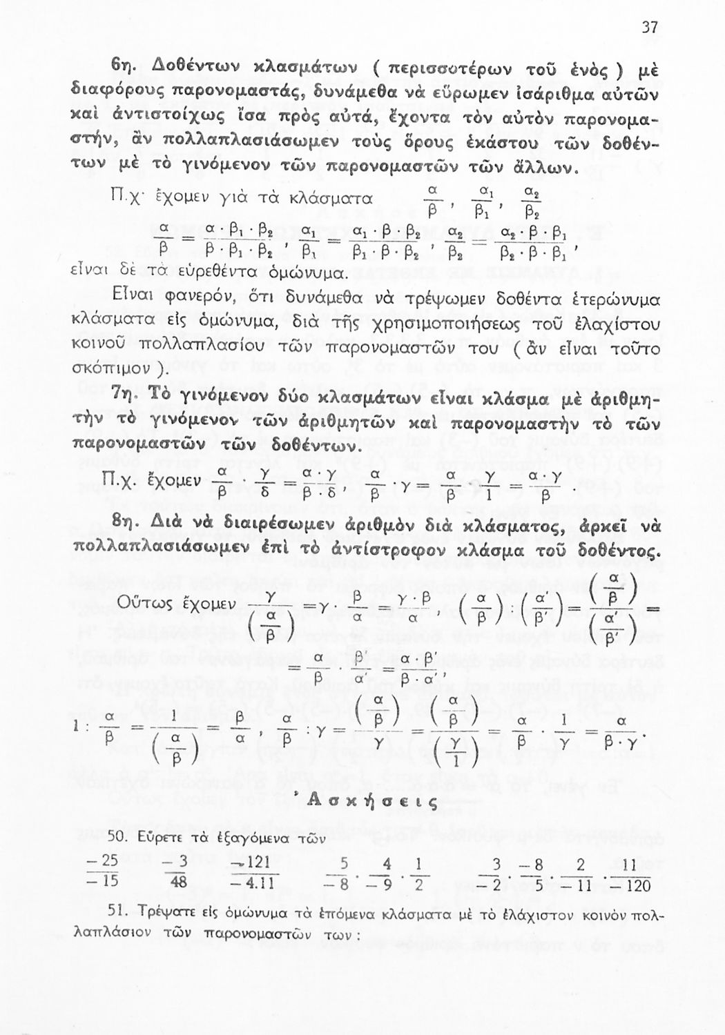 Άλγεβρα Δ', Ε' και ΣΤ΄ Γυμνασίου