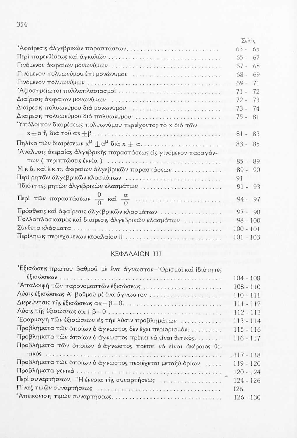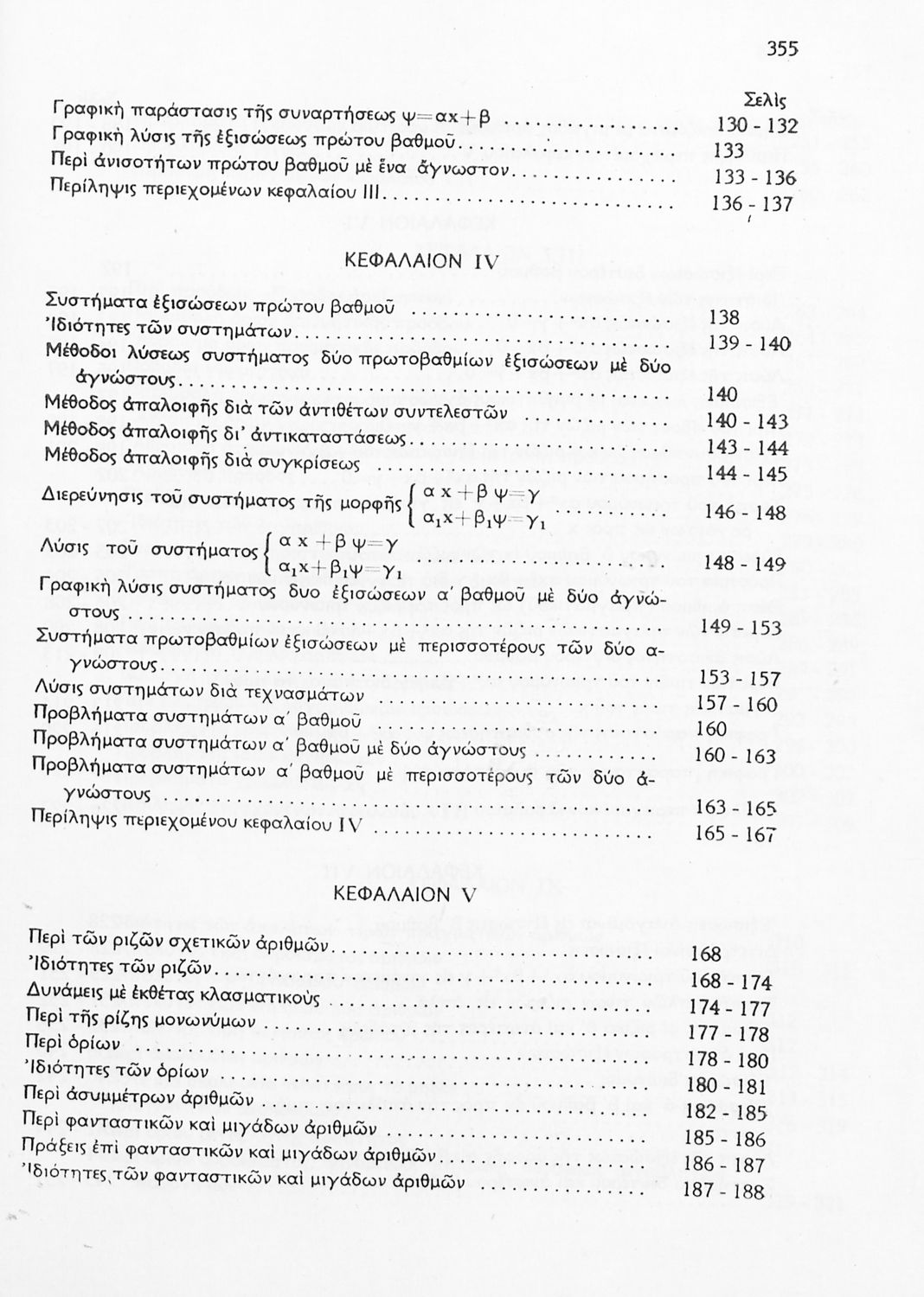 Παρουσίαση περιεχομένου: Σχολικό εγχειρίδιο Μαθηματικών Δ', Ε' και ΣΤ΄ τάξεων του Γυμνασίου που παρουσιάζει τις βασικές έννοιες της Άλγεβρας, εστιάζει τις ιδιότητες των αριθμών και περιέχει ασκήσεις εξισώσεων, λογαρίθμων και παραγώγων.