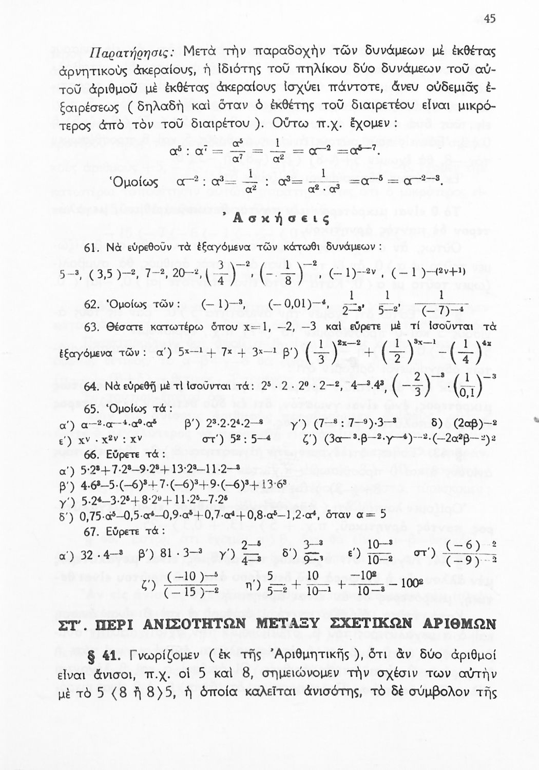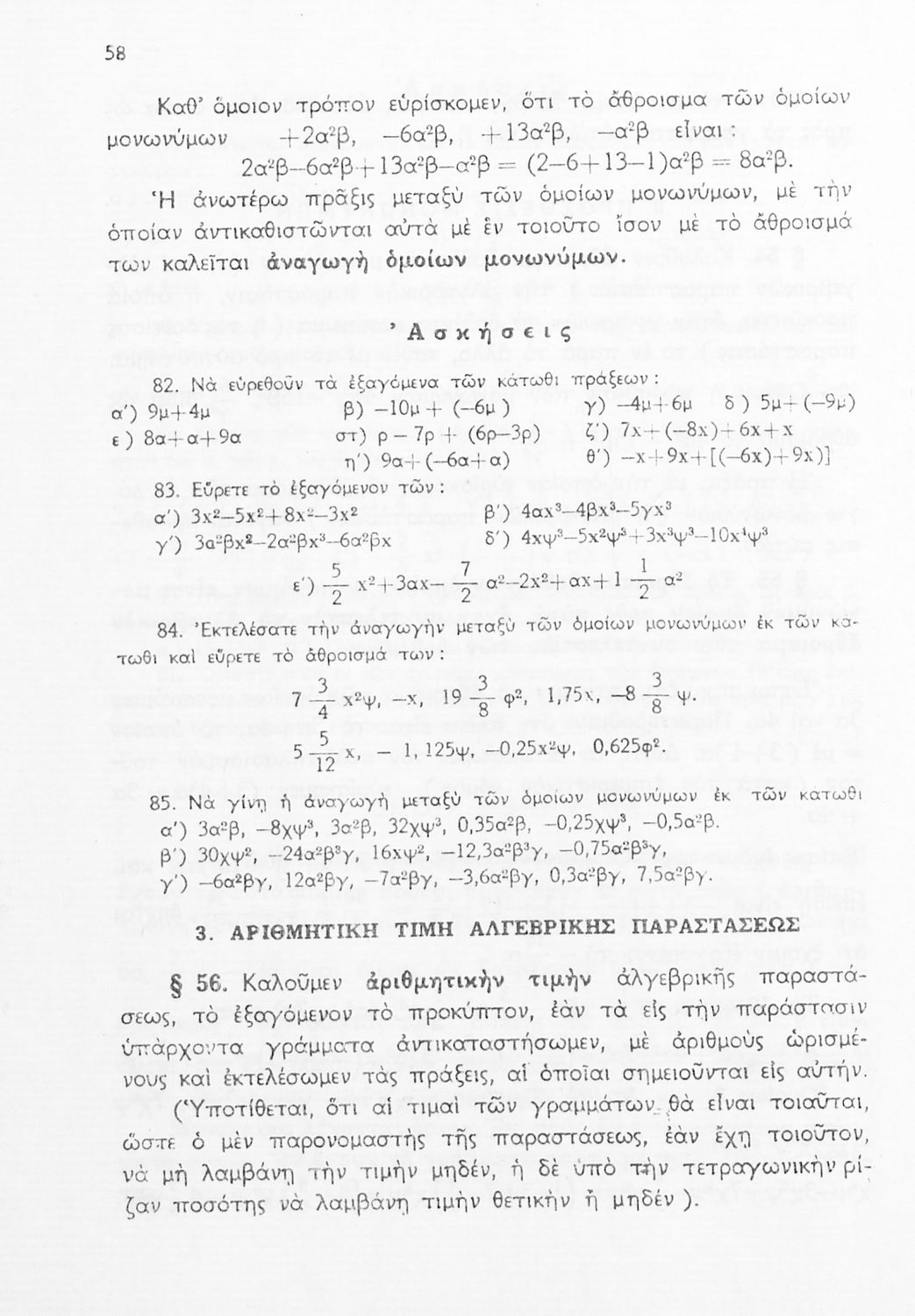 Άλγεβρα Δ', Ε' και ΣΤ΄ Γυμνασίου