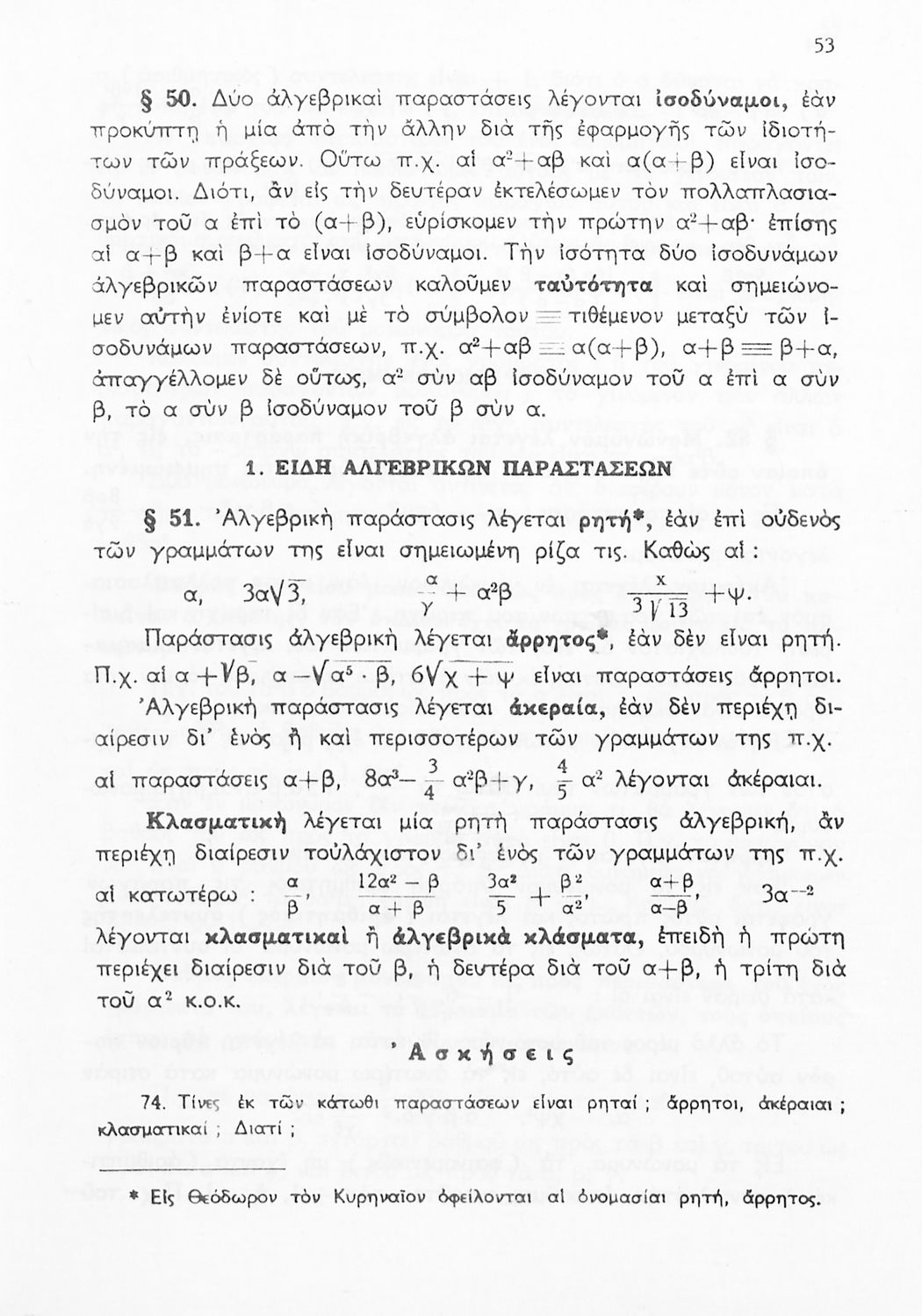 Σχολικό εγχειρίδιο Μαθηματικών Δ', Ε' και ΣΤ΄ τάξεων του Γυμνασίου που παρουσιάζει τις βασικές έννοιες της Άλγεβρας, εστιάζει τις ιδιότητες των αριθμών και περιέχει ασκήσεις εξισώσεων, λογαρίθμων και παραγώγων.