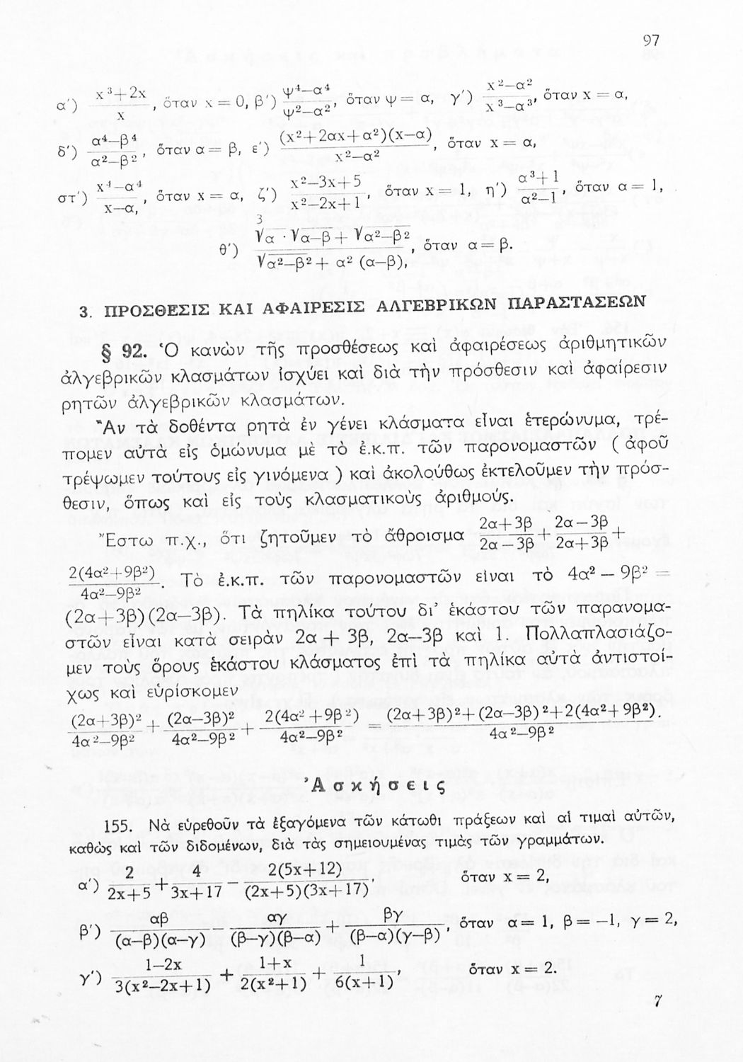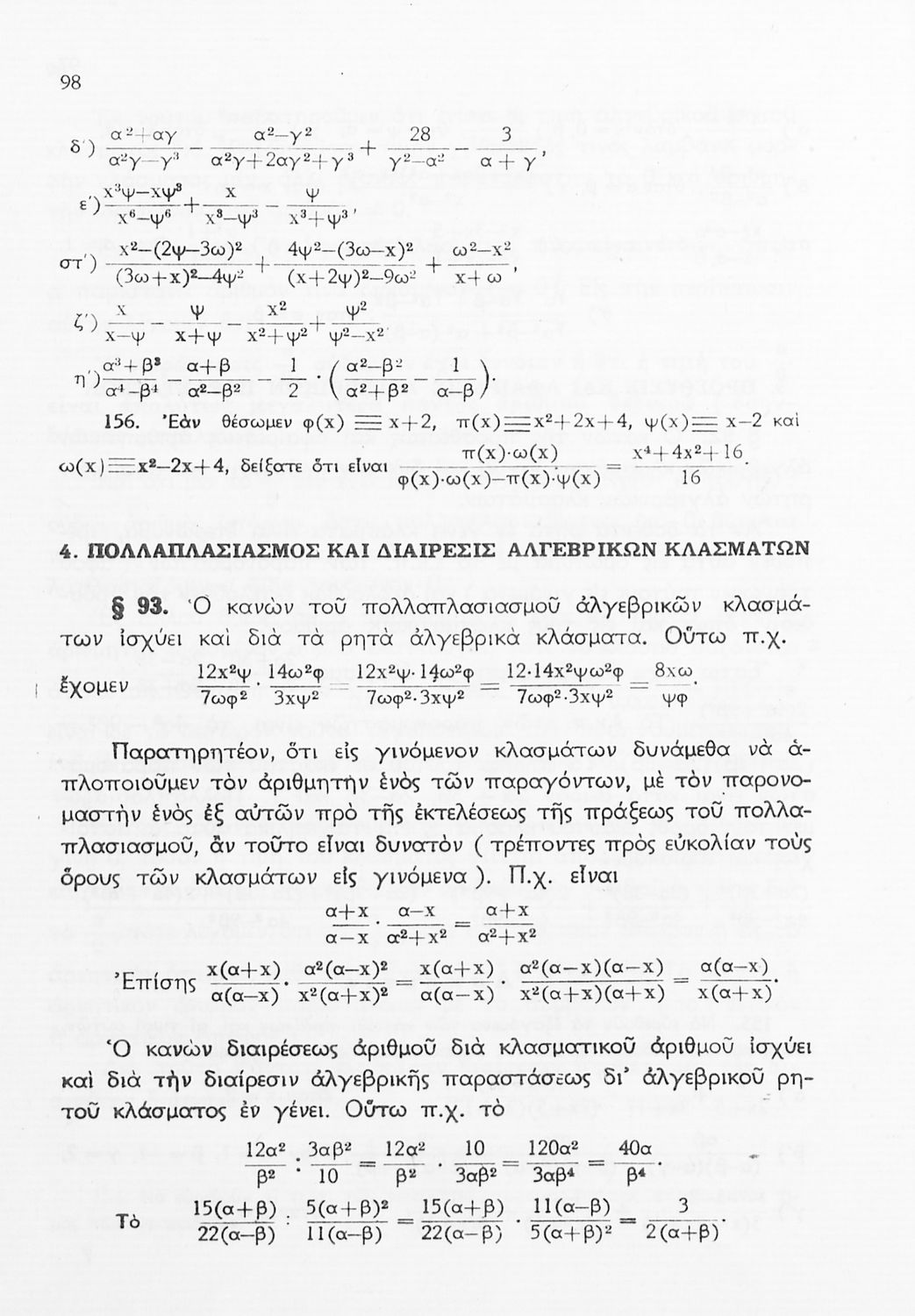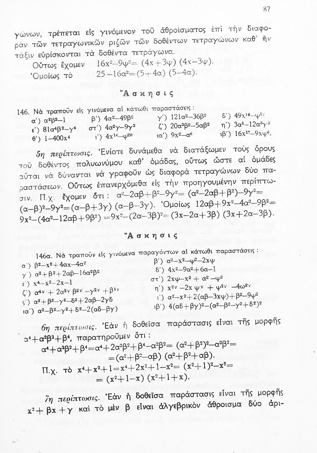 Άλγεβρα Δ', Ε' και ΣΤ΄ Γυμνασίου
