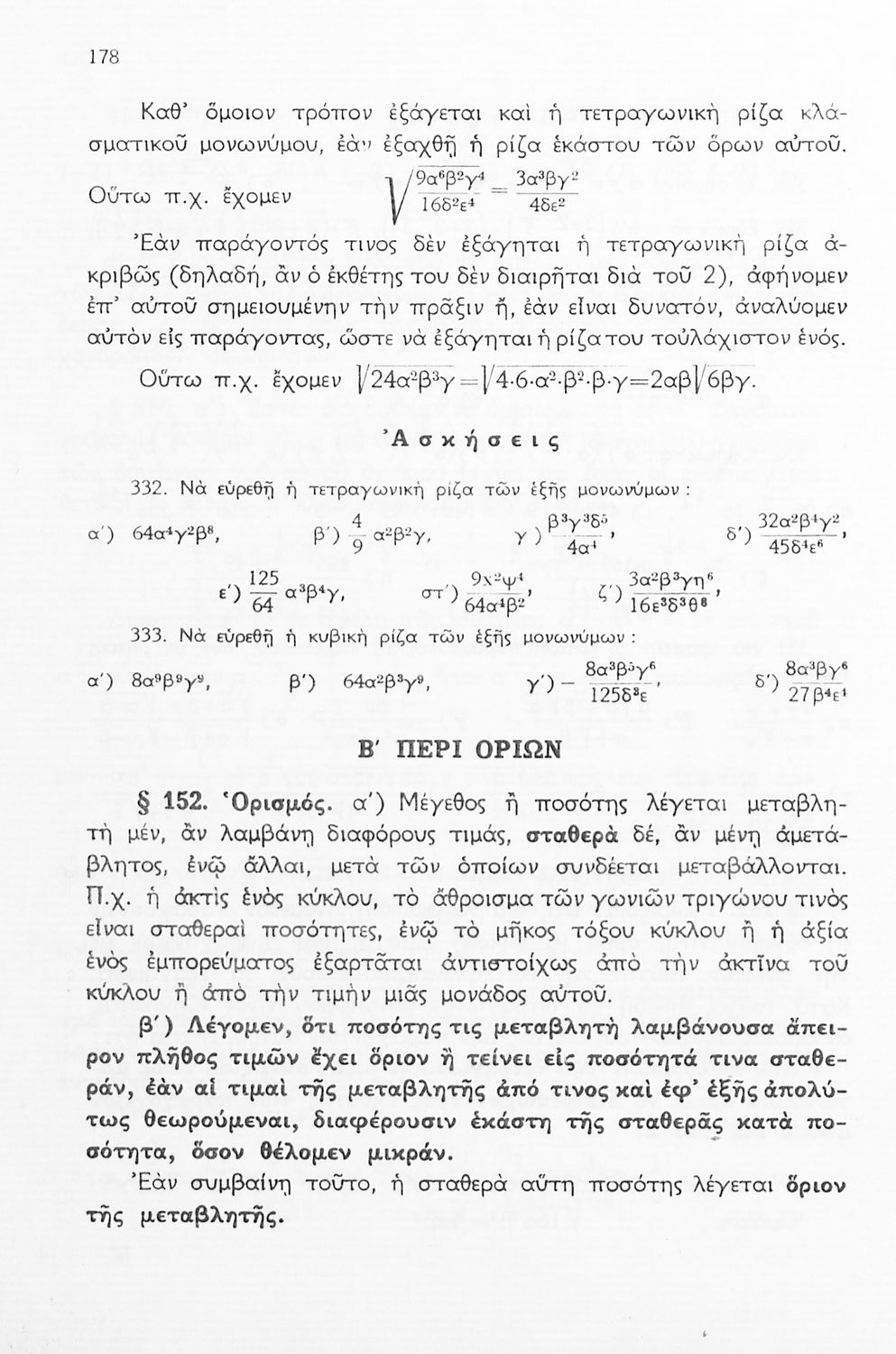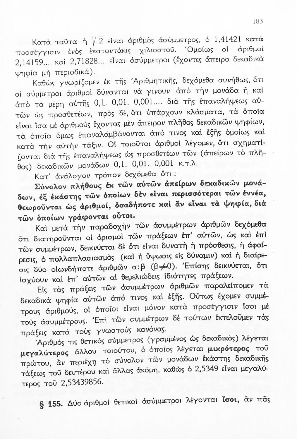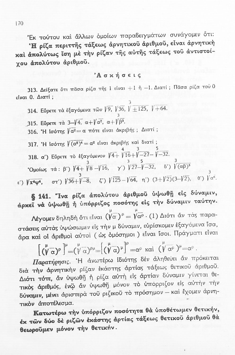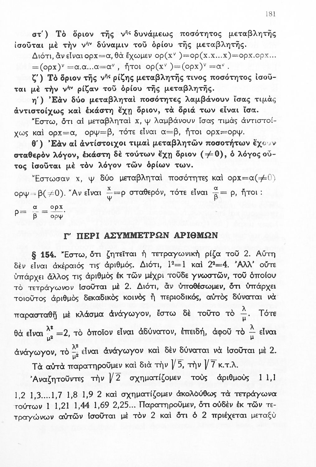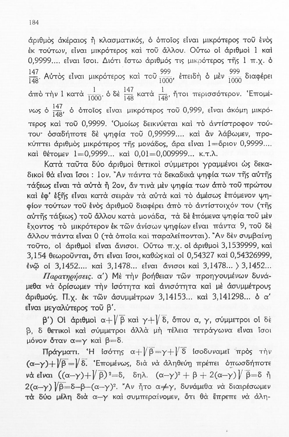 Σχολικό εγχειρίδιο Μαθηματικών Δ', Ε' και ΣΤ΄ τάξεων του Γυμνασίου που παρουσιάζει τις βασικές έννοιες της Άλγεβρας, εστιάζει τις ιδιότητες των αριθμών και περιέχει ασκήσεις εξισώσεων, λογαρίθμων και παραγώγων.