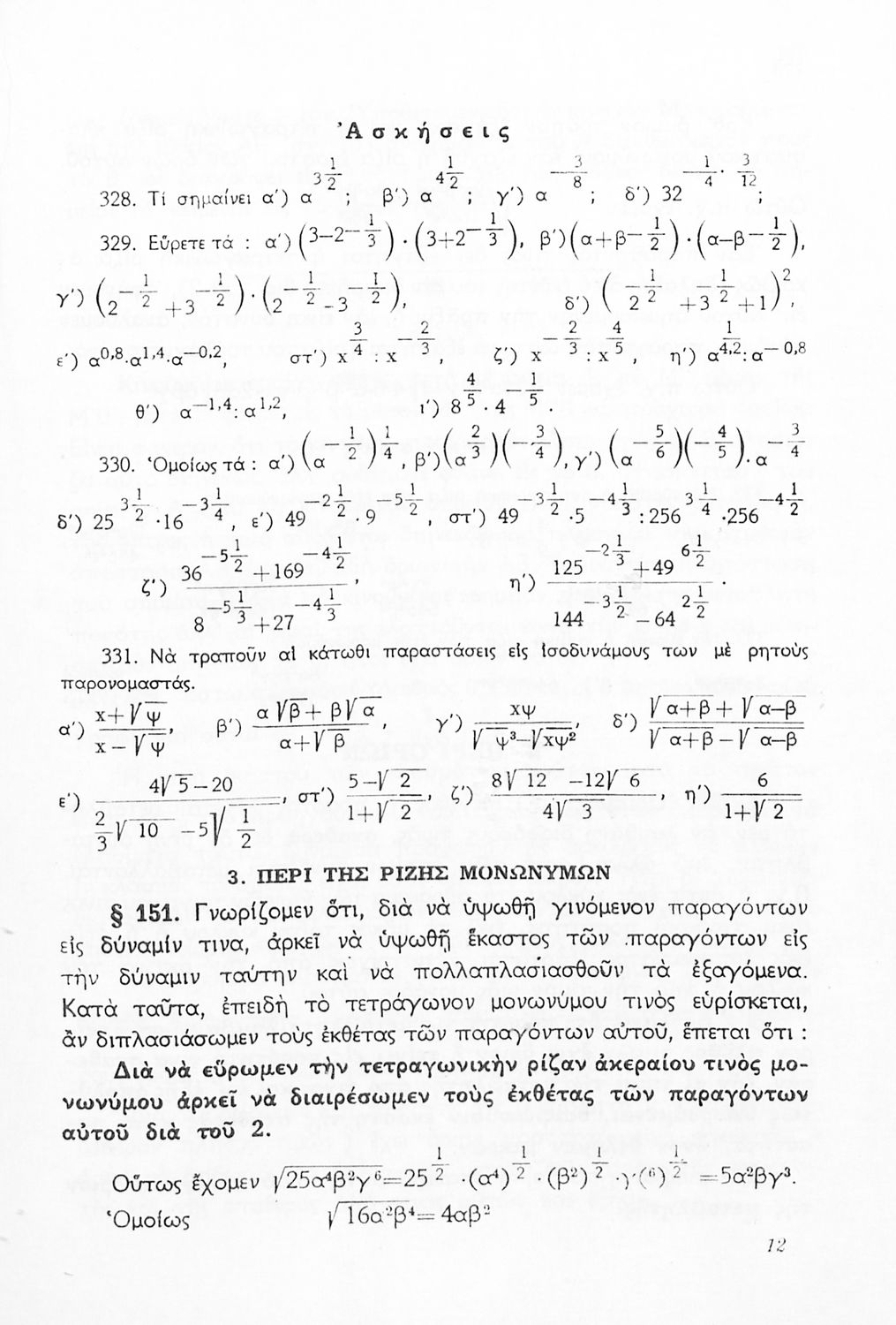 Άλγεβρα Δ', Ε' και ΣΤ΄ Γυμνασίου