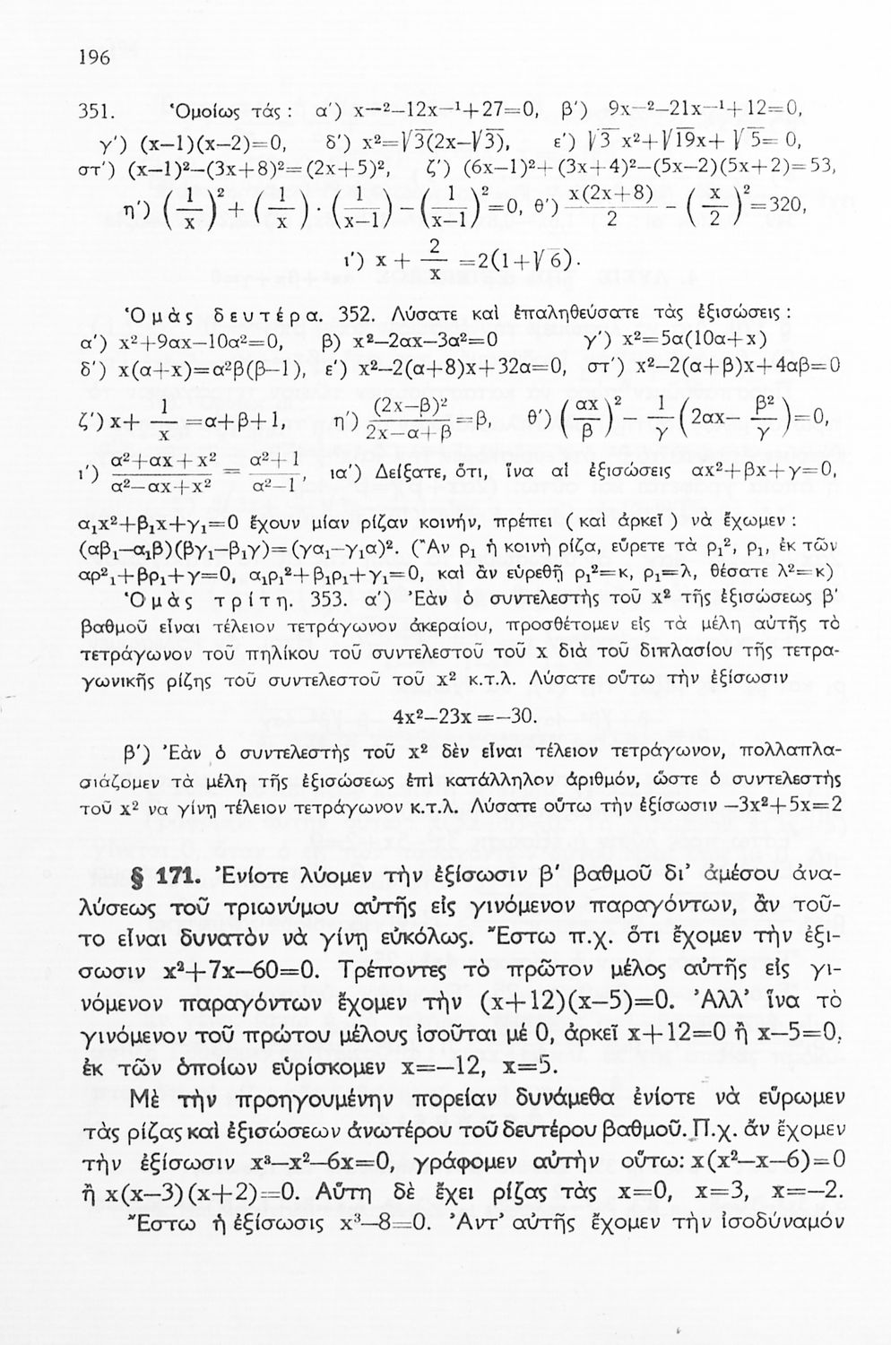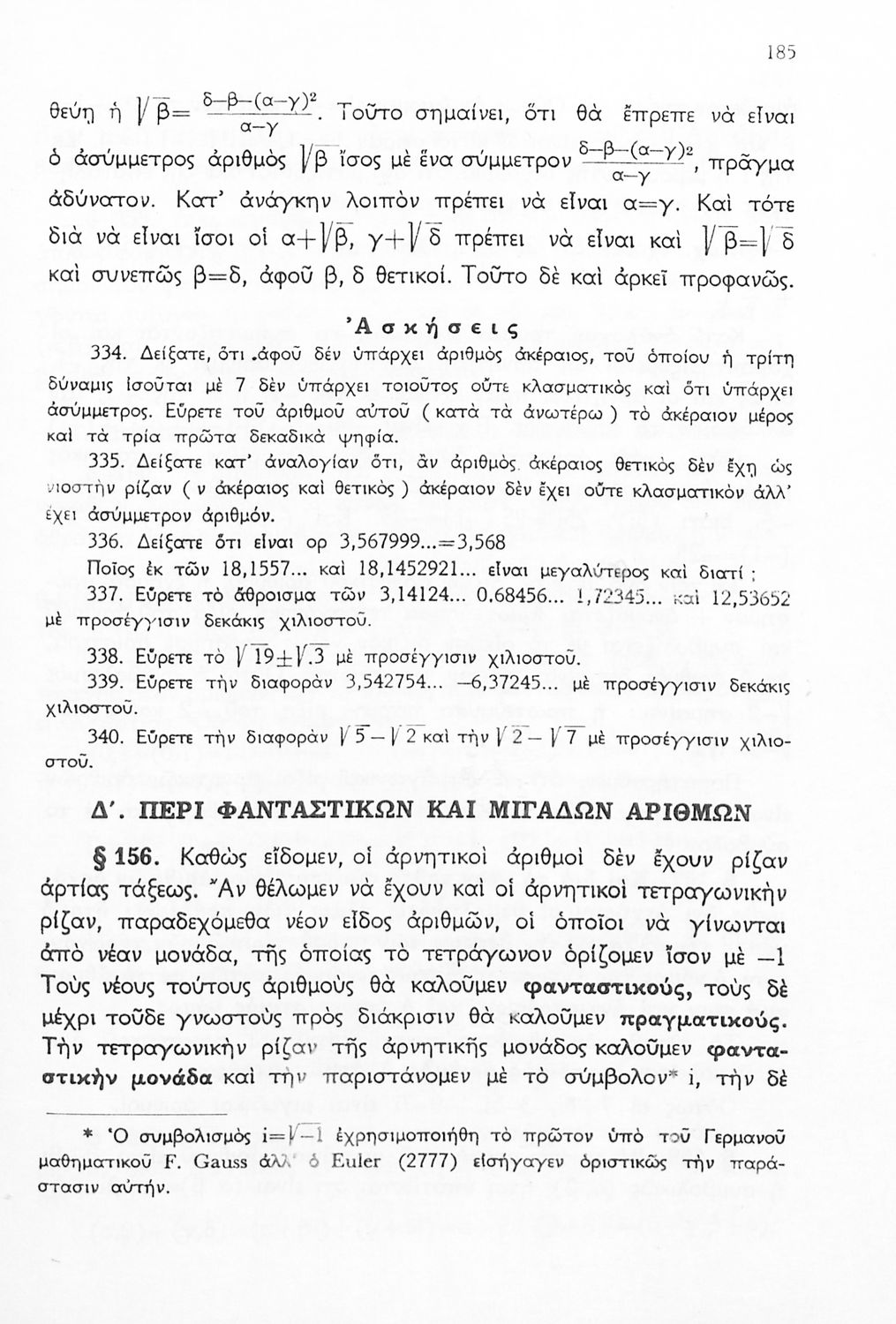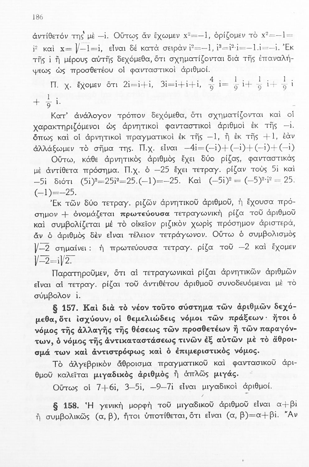 Παρουσίαση περιεχομένου: Σχολικό εγχειρίδιο Μαθηματικών Δ', Ε' και ΣΤ΄ τάξεων του Γυμνασίου που παρουσιάζει τις βασικές έννοιες της Άλγεβρας, εστιάζει τις ιδιότητες των αριθμών και περιέχει ασκήσεις εξισώσεων, λογαρίθμων και παραγώγων.
